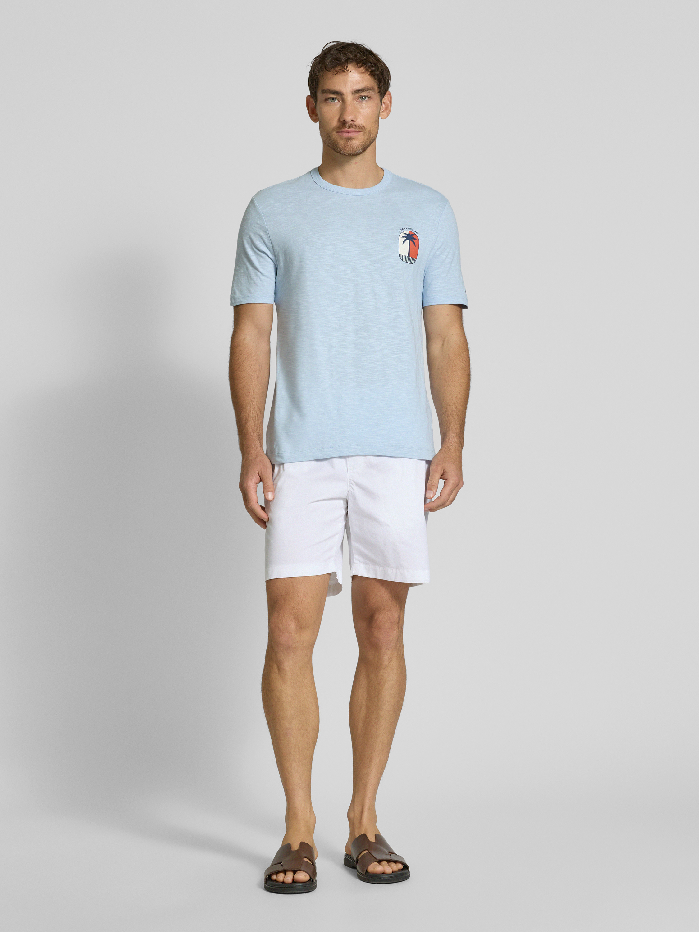 Die Regular Fit Shorts von Tommy Hilfiger vereinen Komfort und Stil durch ihren Baumwoll-Elasthan-Mix, der eine angenehme Bewegungsfreiheit ermöglicht. Mit einem elastischen Bund und praktischen Taschen eignen sie sich ideal für entspannte Freizeitaktivitäten. Die unifarbene Optik und das dezente Logo-Stitching runden das zeitlose Design ab.