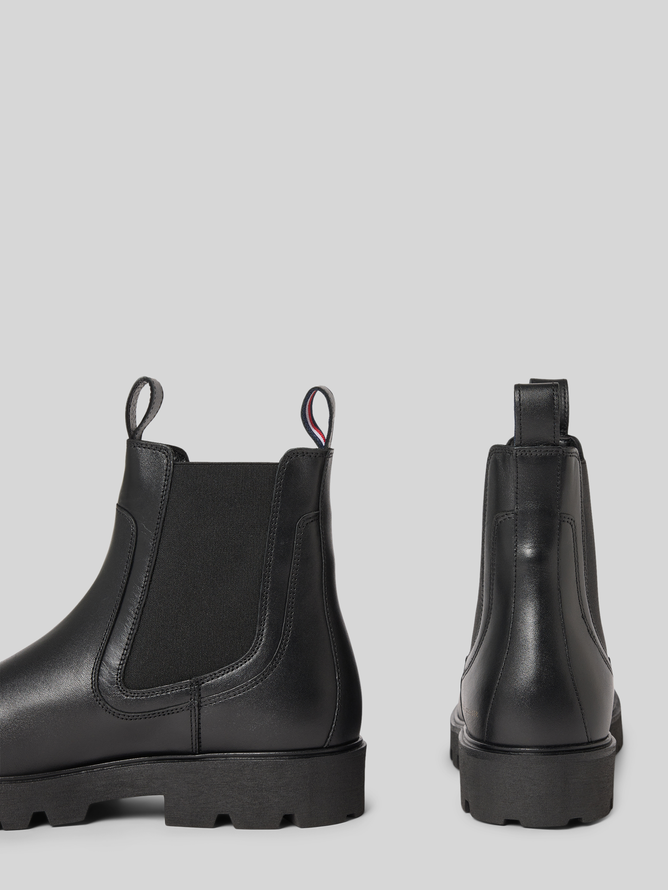 Die Damen Chelsea-Boots von Tommy Hilfiger bringen mit ihrer schlichten, unifarbenen Optik und dem abgerundeten Design eine dezente Eleganz in den Alltag. Dank echtem Leder und sorgfältig verarbeiteter Glattleder-Oberfläche entsteht ein angenehmes Tragegefühl, das sich auch bei längeren Wegen bewährt. Durch den stabilen Blockabsatz und die profilierte Sohle gelingt es, sich komfortabel und sicher zu bewegen, während das dezente Label-Print einen unaufdringlichen Akzent setzt.