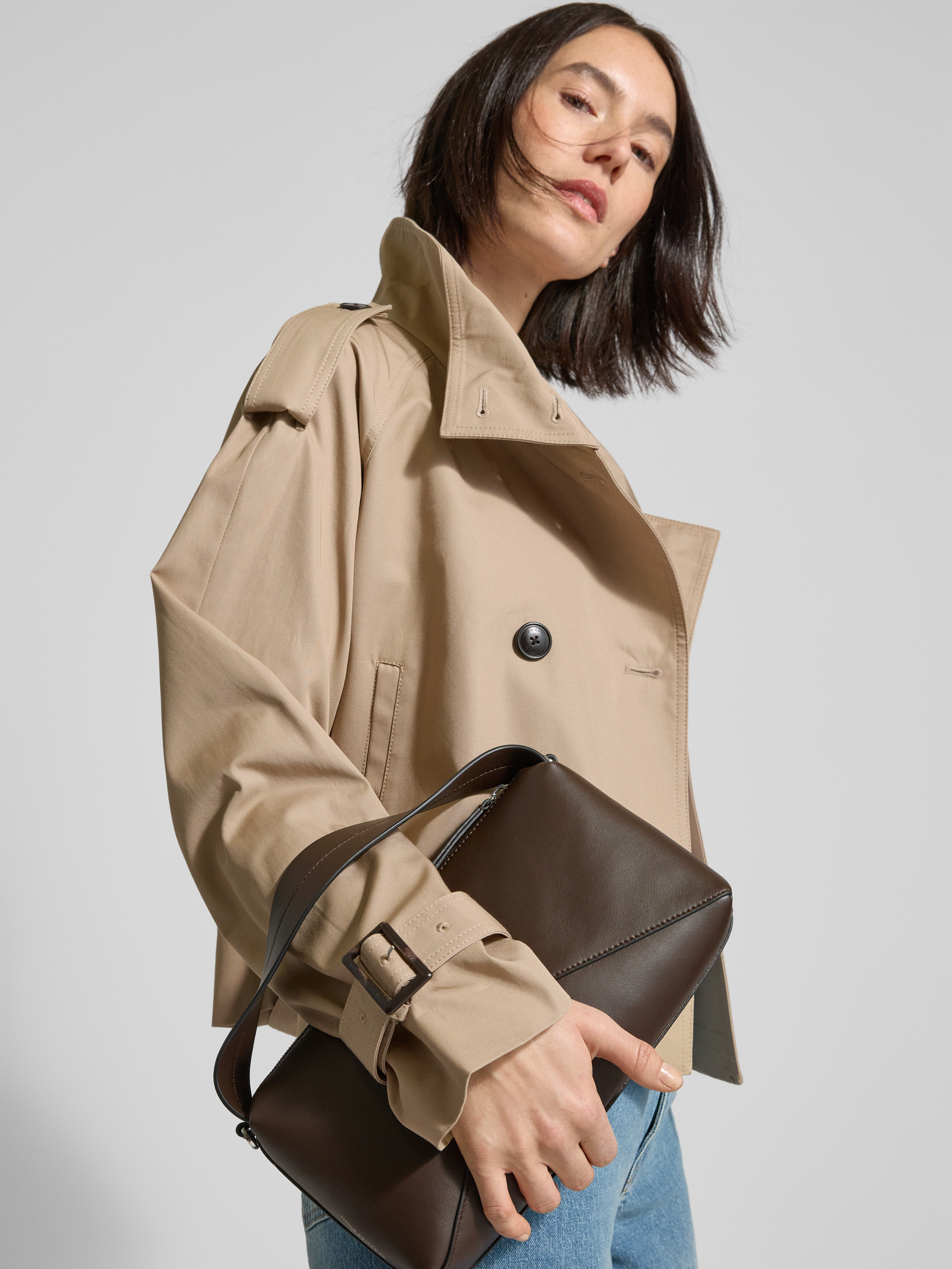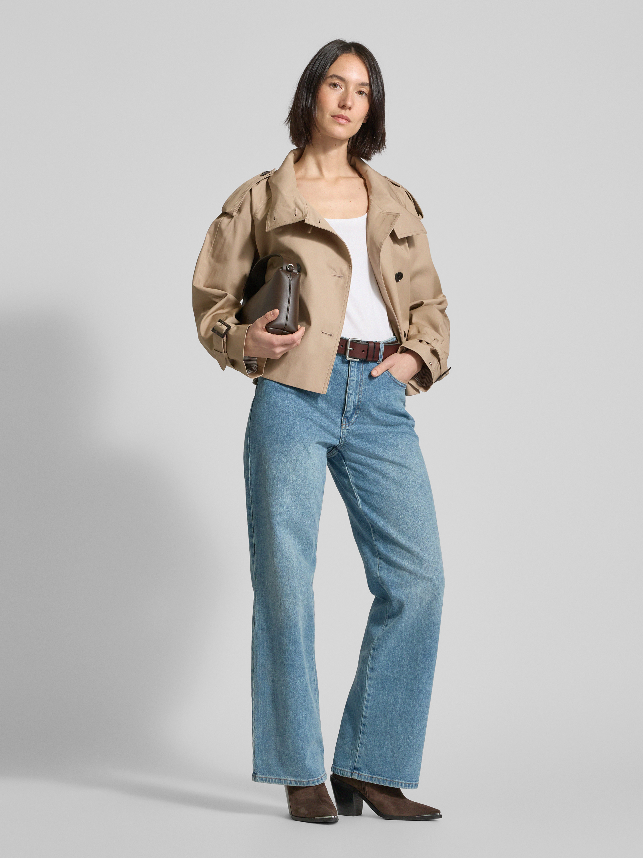 Der Cropped Trenchcoat von Tommy Hilfiger, gefertigt aus reiner Baumwolle, zeichnet sich durch seinen lockeren Schnitt und den modischen Stehkragen aus. Der zweireihige Mantel mit Taillengürtel und Leistentaschen eignet sich hervorragend für stilvolle Auftritte. Man genießt Komfort und Eleganz gleichermaßen.