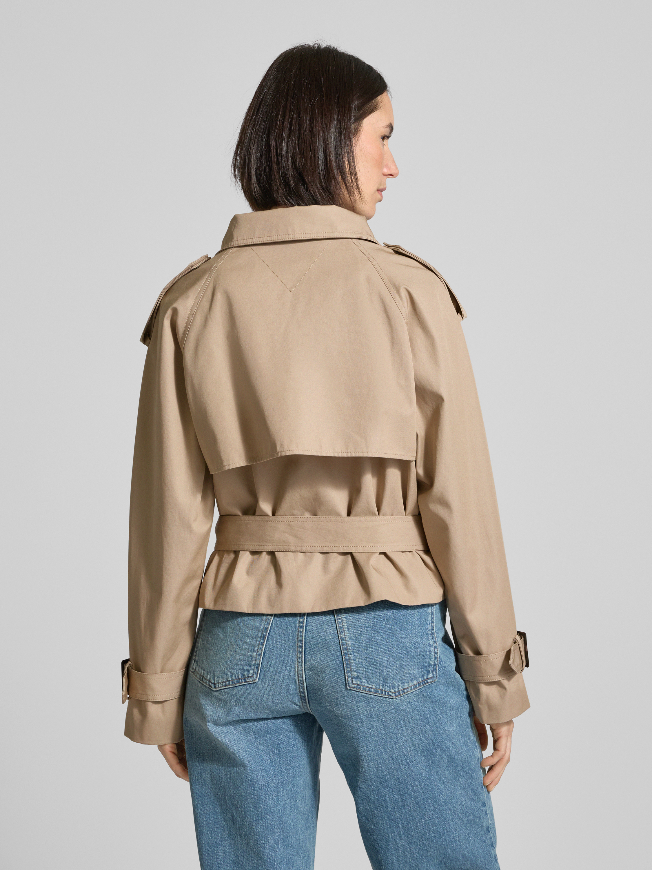 Tommy HilfigerCropped Trenchcoat mit Stehkragen in sand
