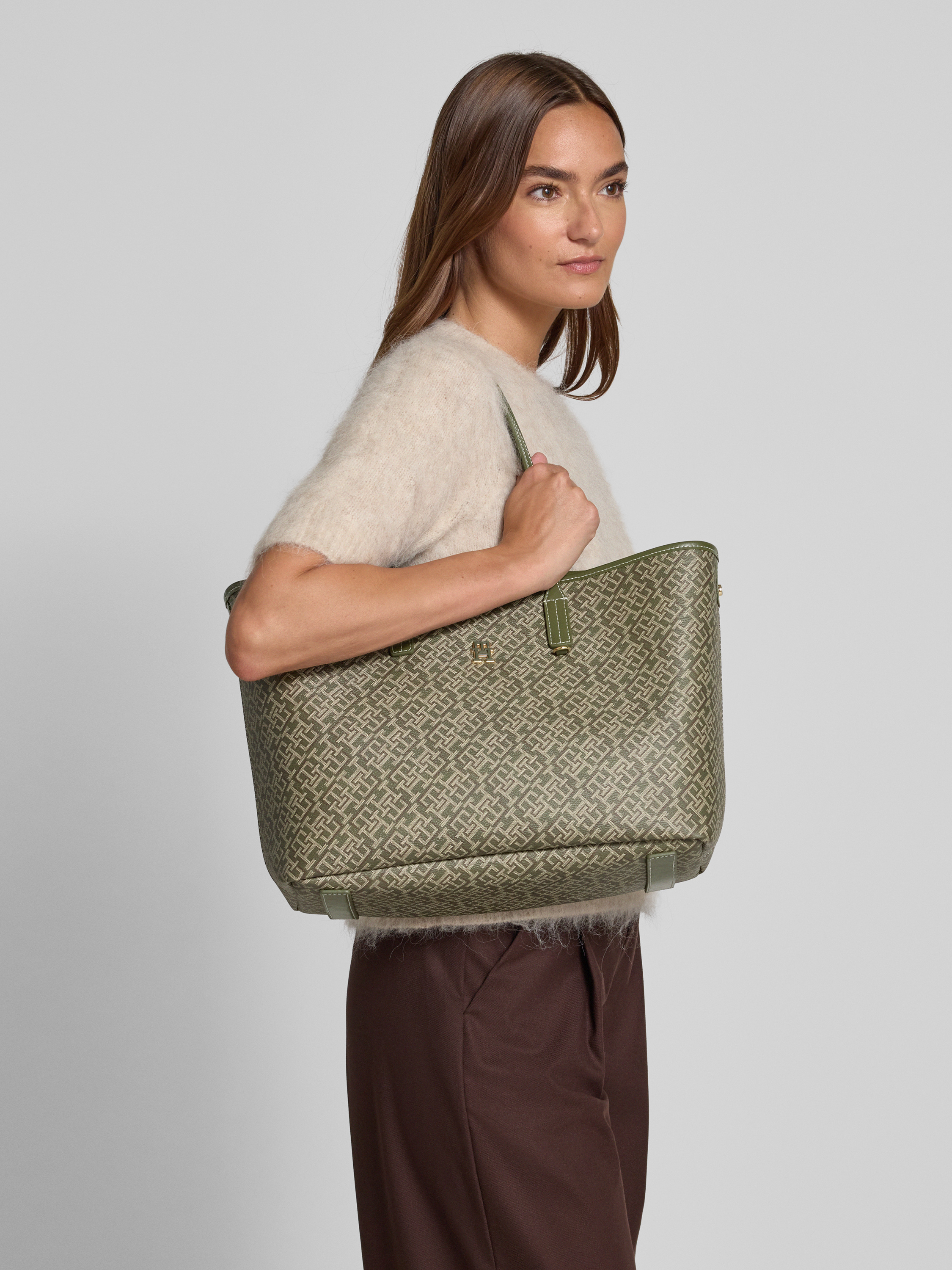 Die Henkeltasche in Lederoptik von Tommy Hilfiger, Modell Monoplay, fällt durch das markante Allover-Muster ins Auge. Im geräumigen Hauptfach bleibt der Alltag übersichtlich, ein herausnehmbares Reißverschlussfach sorgt zusätzlich für Ordnung. Dank der Tragehenkel liegt die Tasche angenehm in der Hand und begleitet mühelos durch verschiedene Situationen.