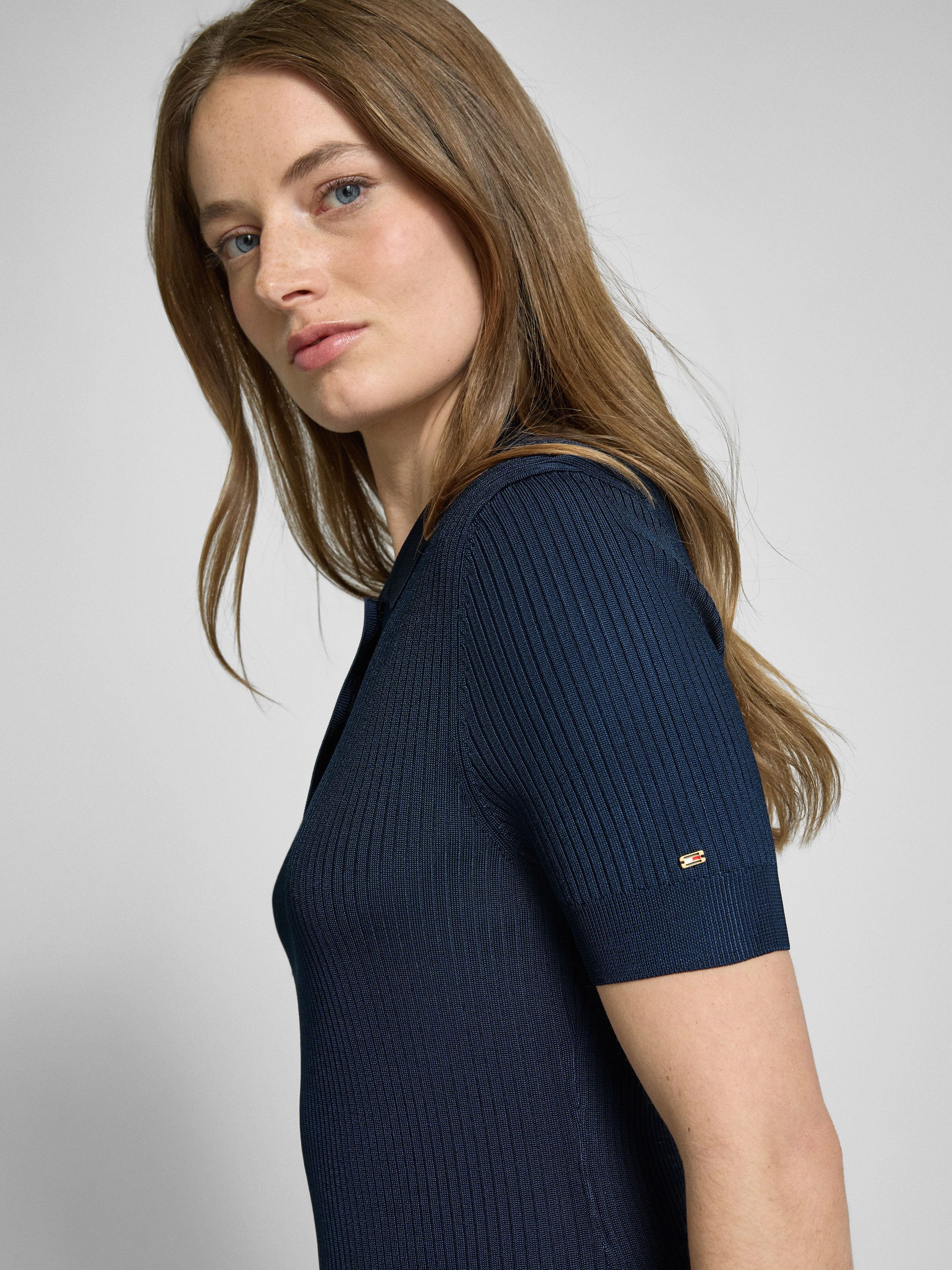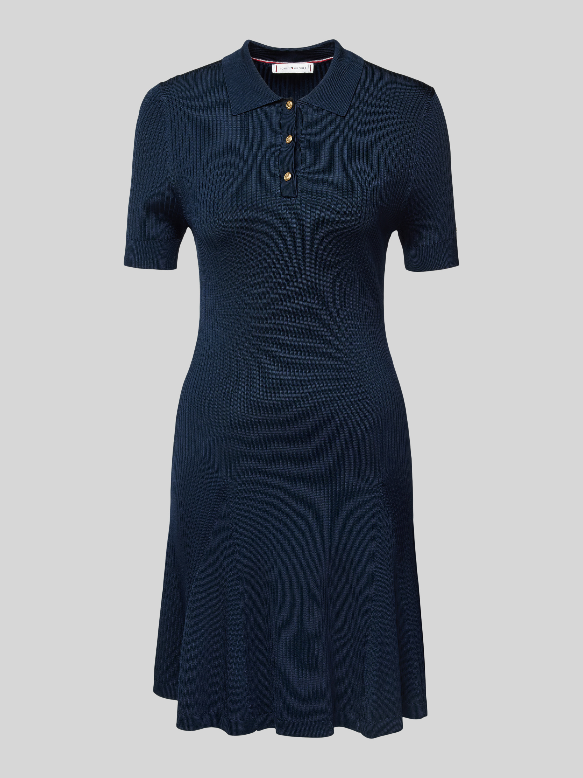 Tommy HilfigerKnielanges Polokleid in Ripp-Optik in marine