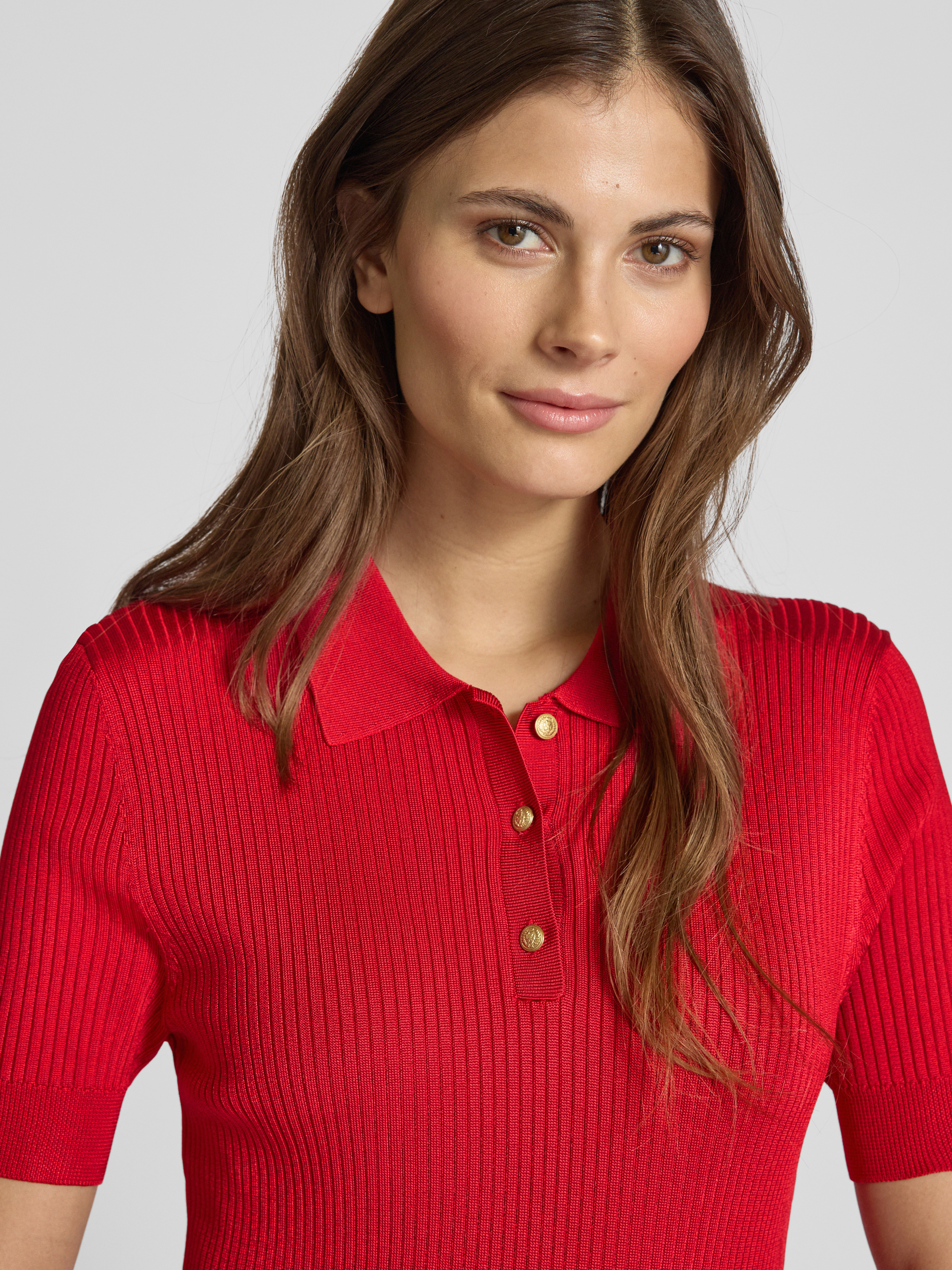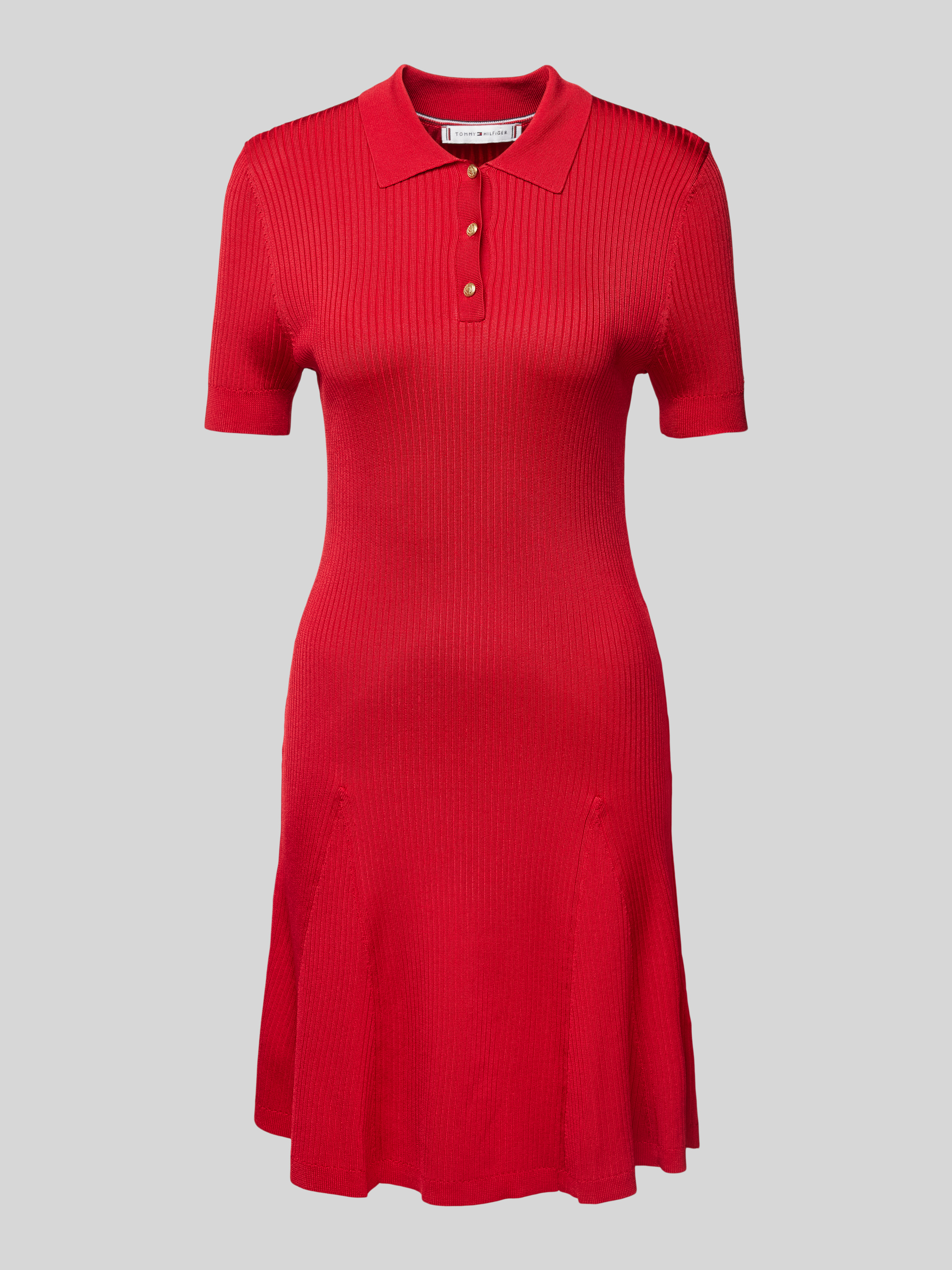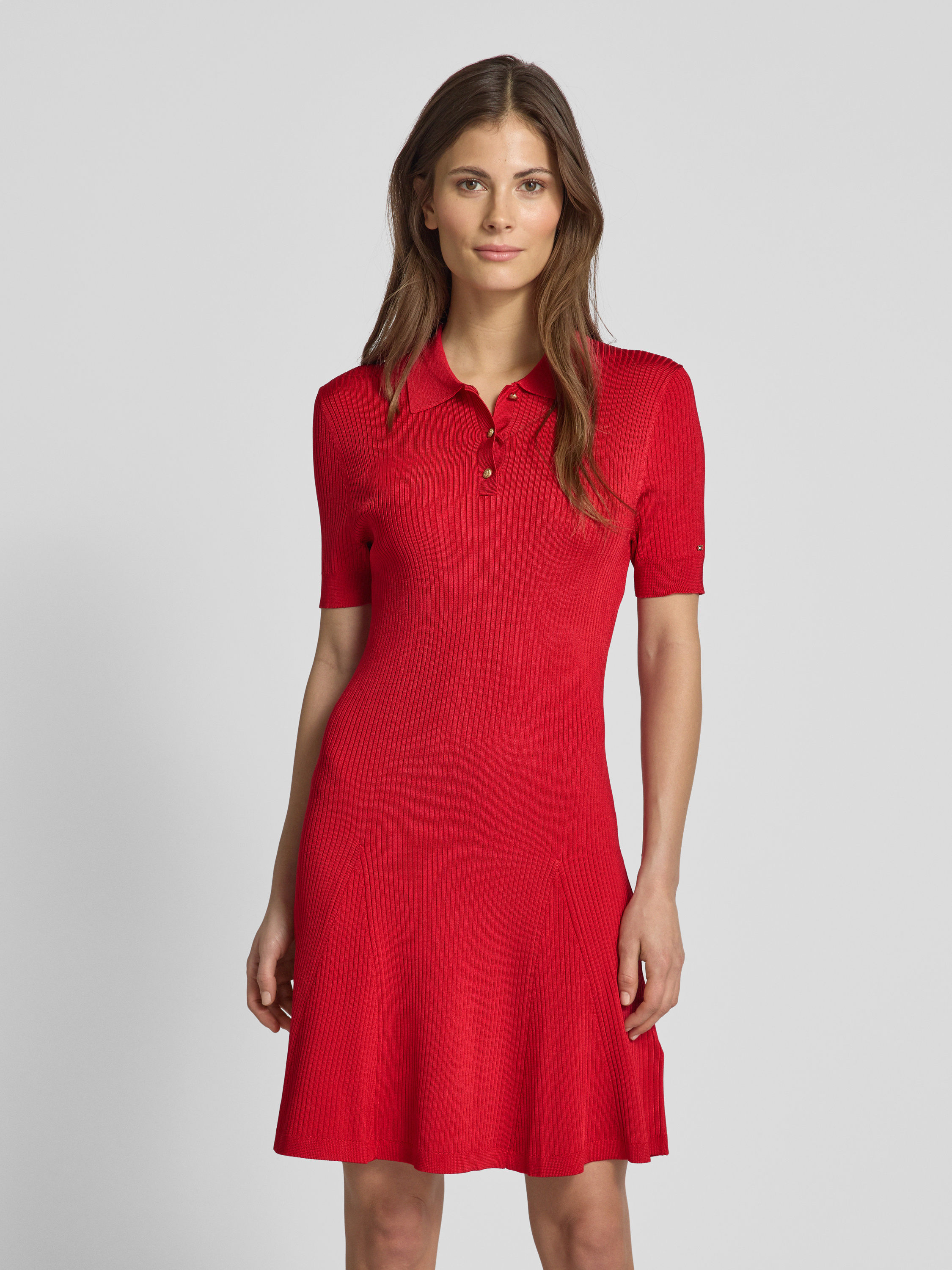 Tommy HilfigerKnielanges Polokleid in Ripp-Optik in rot