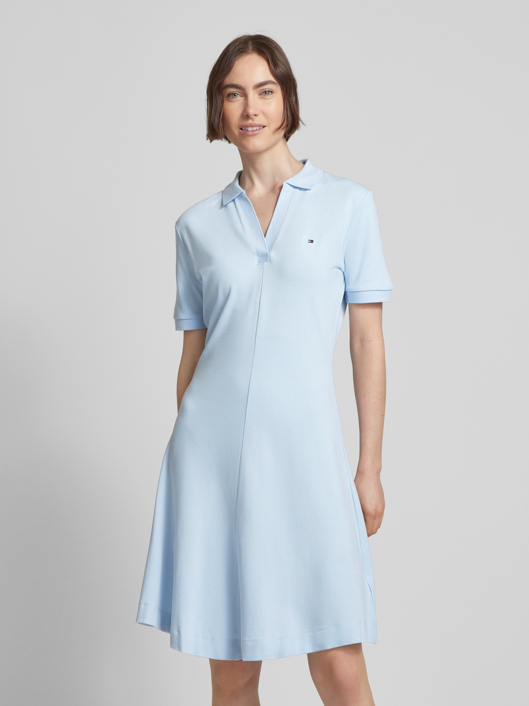 Tommy HilfigerKnielanges Polokleid mit Streifenmuster in hellblau
