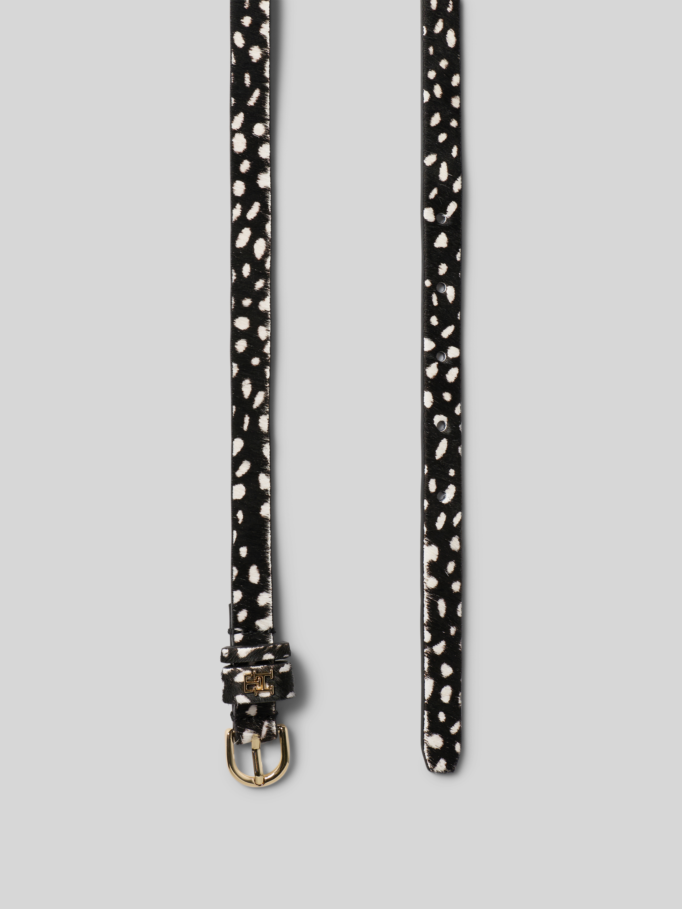 Der Ledergürtel von Tommy Hilfiger setzt durch den Animal-Print und das Allover-Muster einen markanten Akzent im Outfit. Gefertigt aus echtem Rindsleder, liegt er angenehm in der Hand und sorgt für zuverlässigen Halt. Die Logo-Applikation rundet das Design dezent ab und verleiht einen modernen Touch.