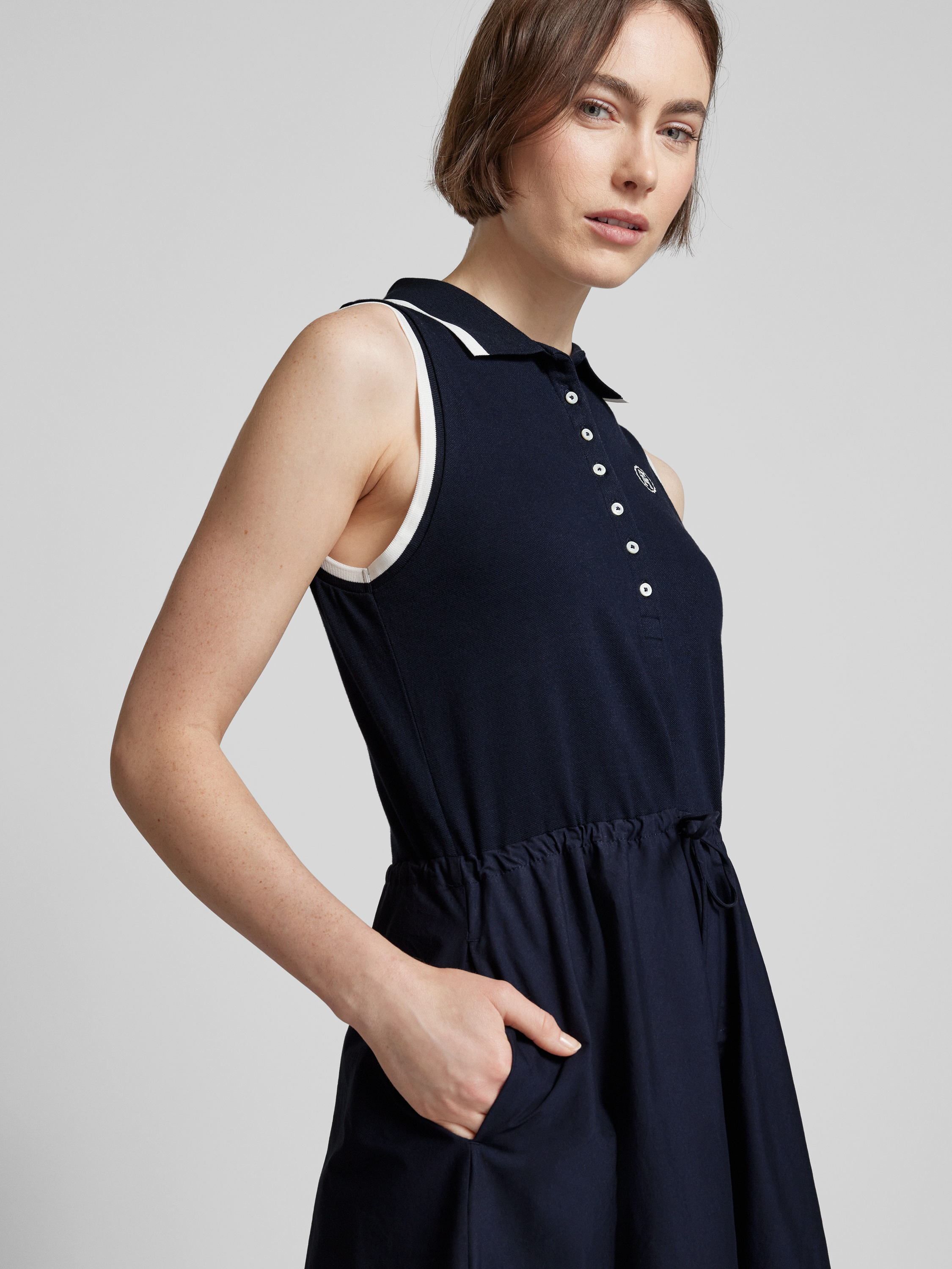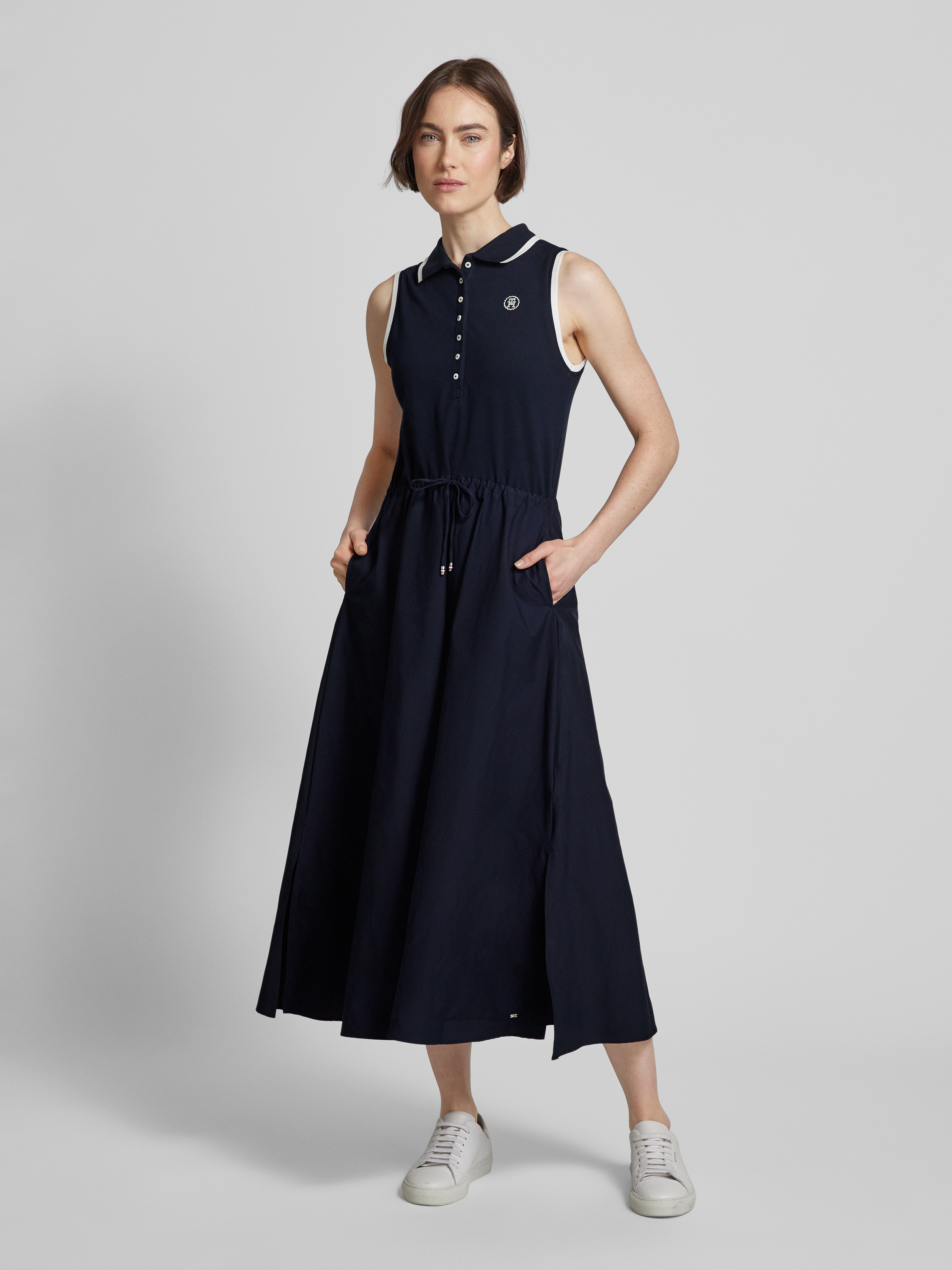 Polokleid mit Label-Stitching in dunkelblau