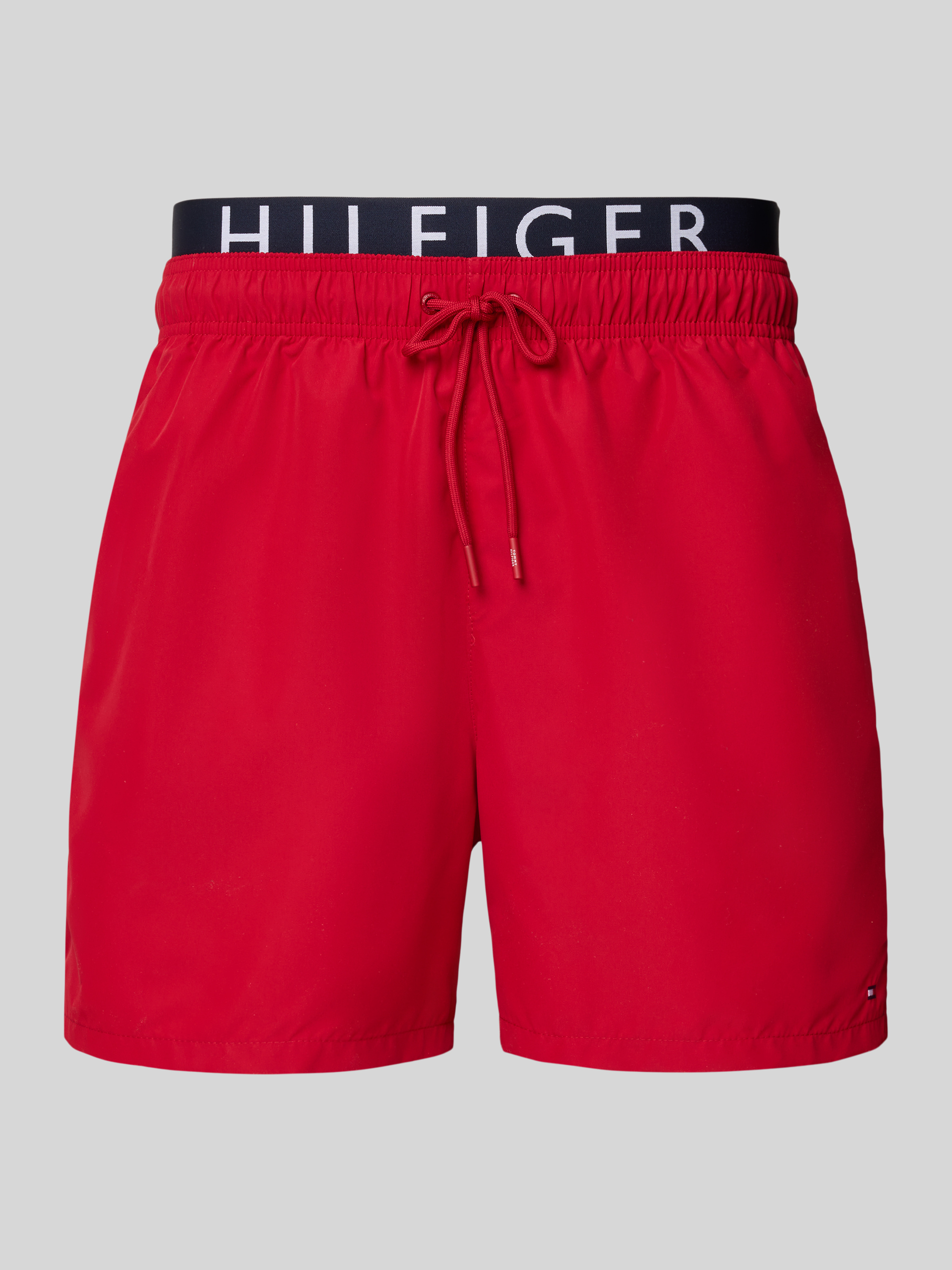Tommy HilfigerRegular Fit Badeshorts mit Label-Bund in rot