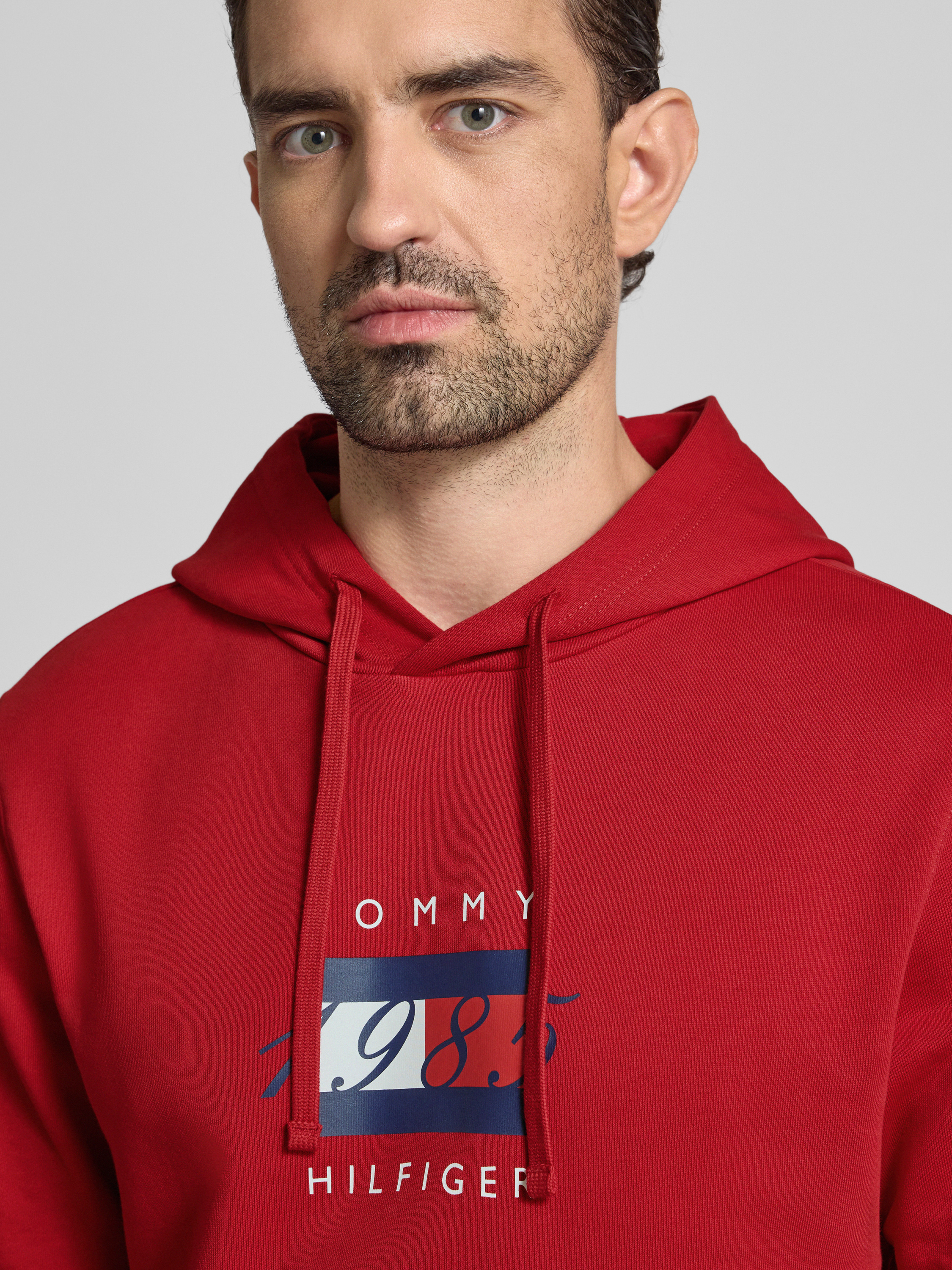 Der Herren Regular Fit Hoodie von Tommy Hilfiger präsentiert sich in unifarbener Optik und eignet sich durch den bequemen Schnitt für entspannte Aktivitäten. Gefertigt aus reiner Baumwolle, fühlt sich das Material angenehm weich an und unterstützt ein angenehmes Tragegefühl. Die Kapuze mit Tunnelzug und ein dezenter Label Print runden das Design ab.