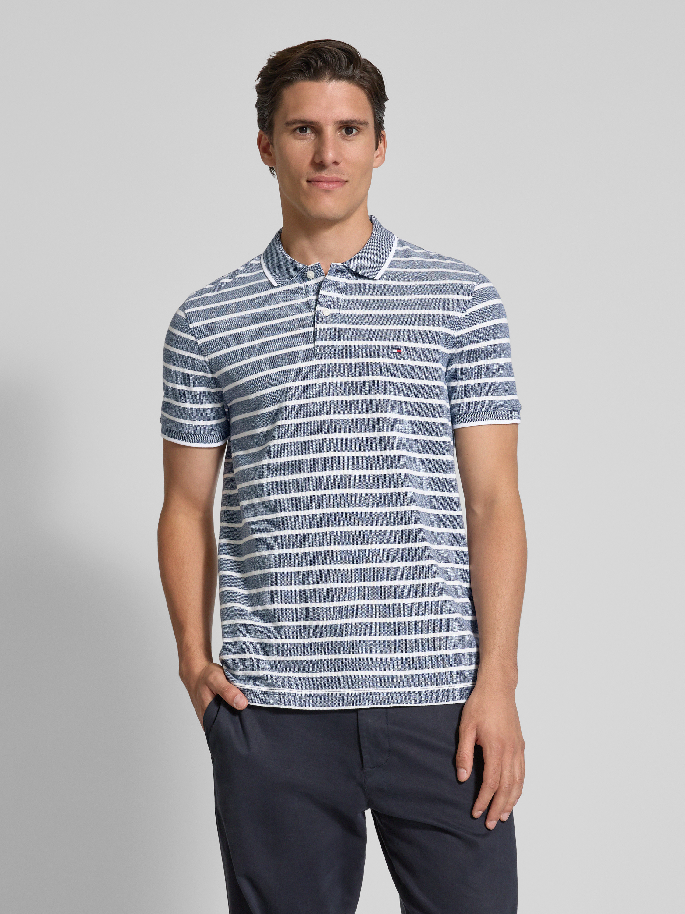 Tommy HilfigerRegular Fit Poloshirt aus Baumwoll-Leinen-Mix in marine