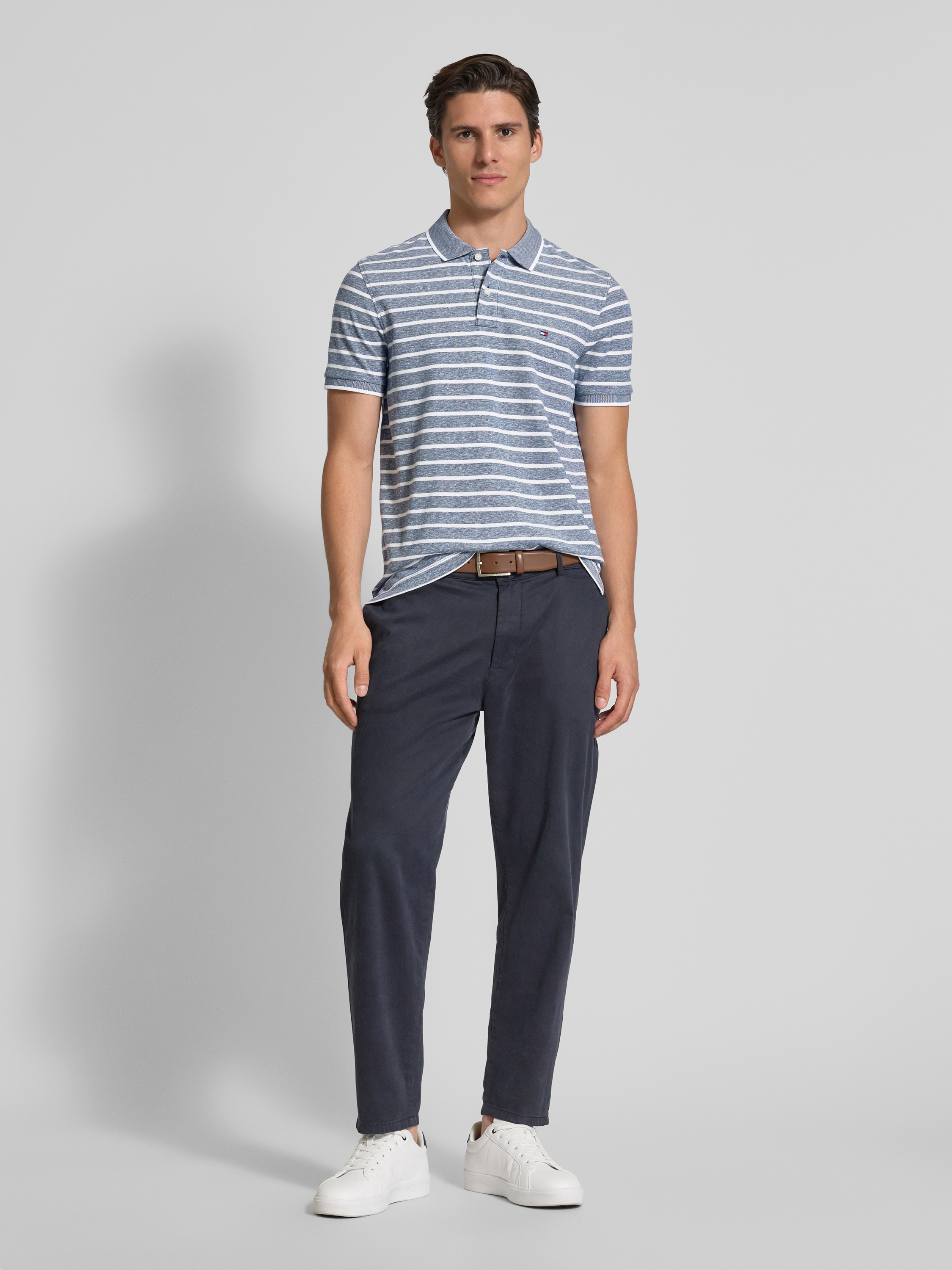 Das Herren Poloshirt von Tommy Hilfiger in Regular Fit kombiniert einen Baumwoll-Leinen-Mix mit einem klassischen Polokragen. Die leichte Piqué-Struktur sorgt für angenehmen Tragekomfort, während die Kontraststreifen und das dezente Logo-Stitching dem Design eine moderne Note verleihen. Ideal für entspannte Alltagslooks.