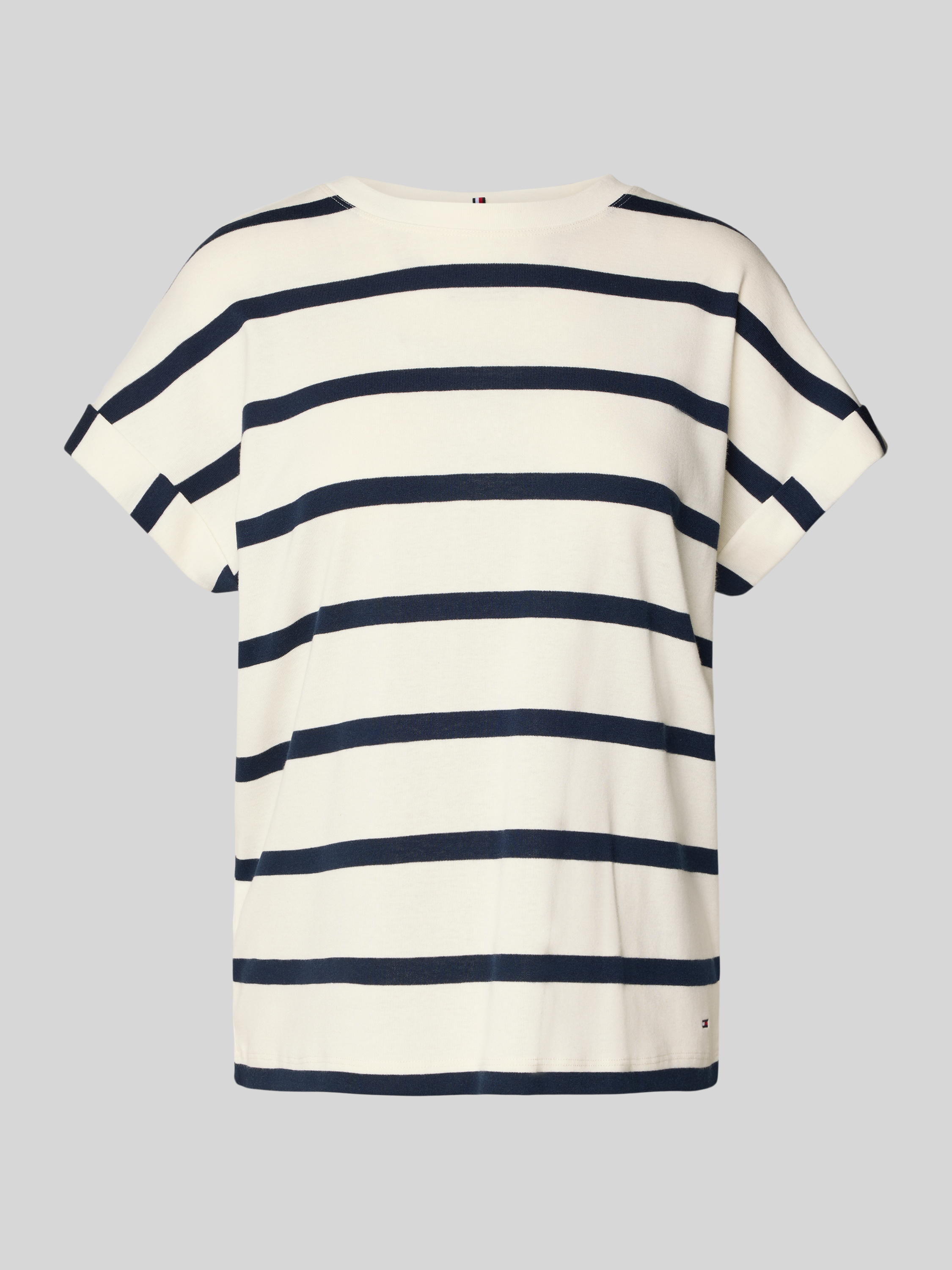 Das Damen T-Shirt von Tommy Hilfiger verbindet zeitloses Design mit hohem Tragekomfort. Die Regular Fit Passform und der Rundhalsausschnitt sorgen für ein angenehmes Gefühl, während das Allover-Muster in gestreifter oder unifarbener Optik vielseitige Kombinationsmöglichkeiten bietet. Reine Baumwolle macht das Shirt besonders hautfreundlich.