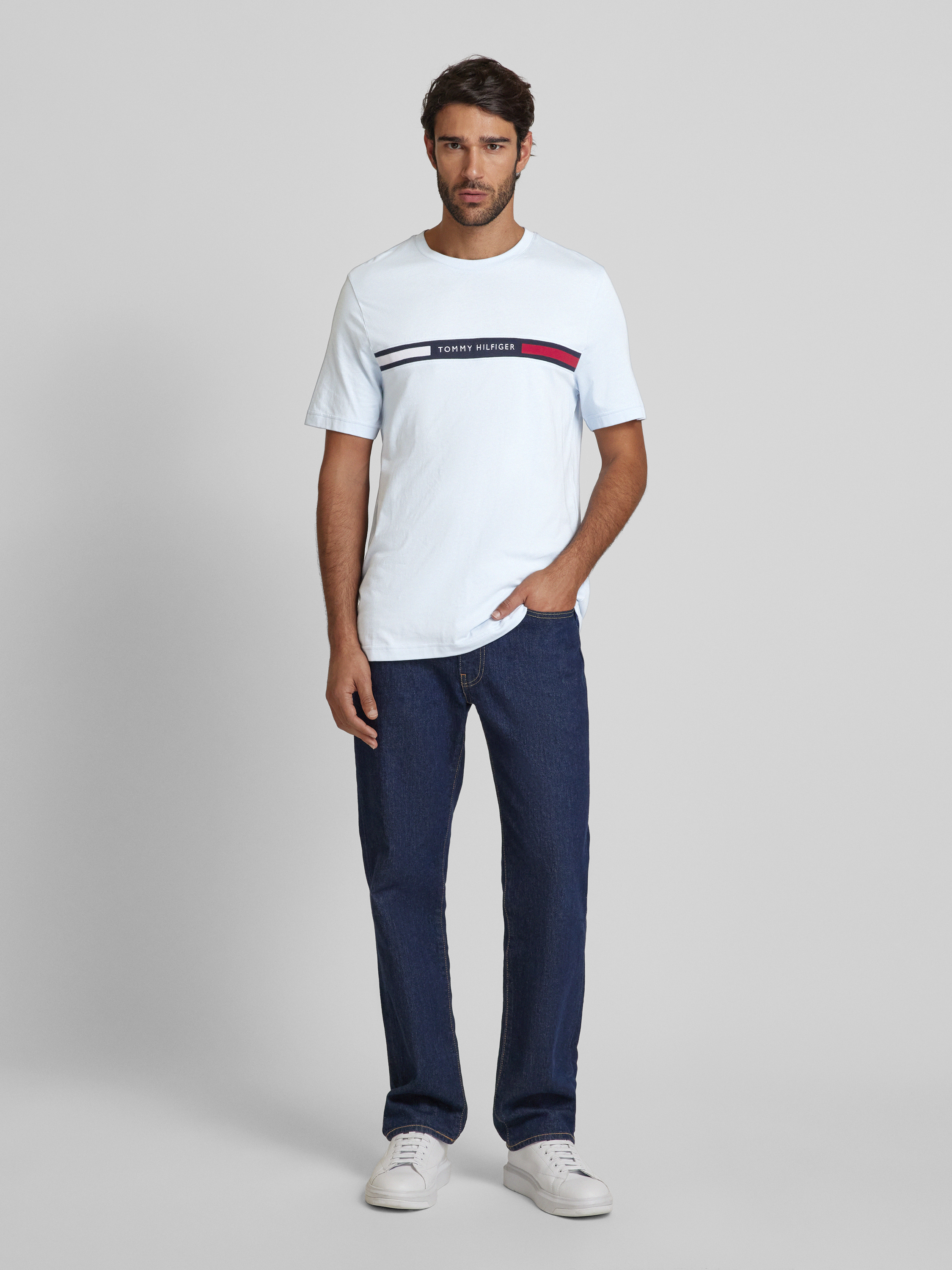 Tommy HilfigerRegular Fit T-Shirt mit Label-Stitching in hellblau