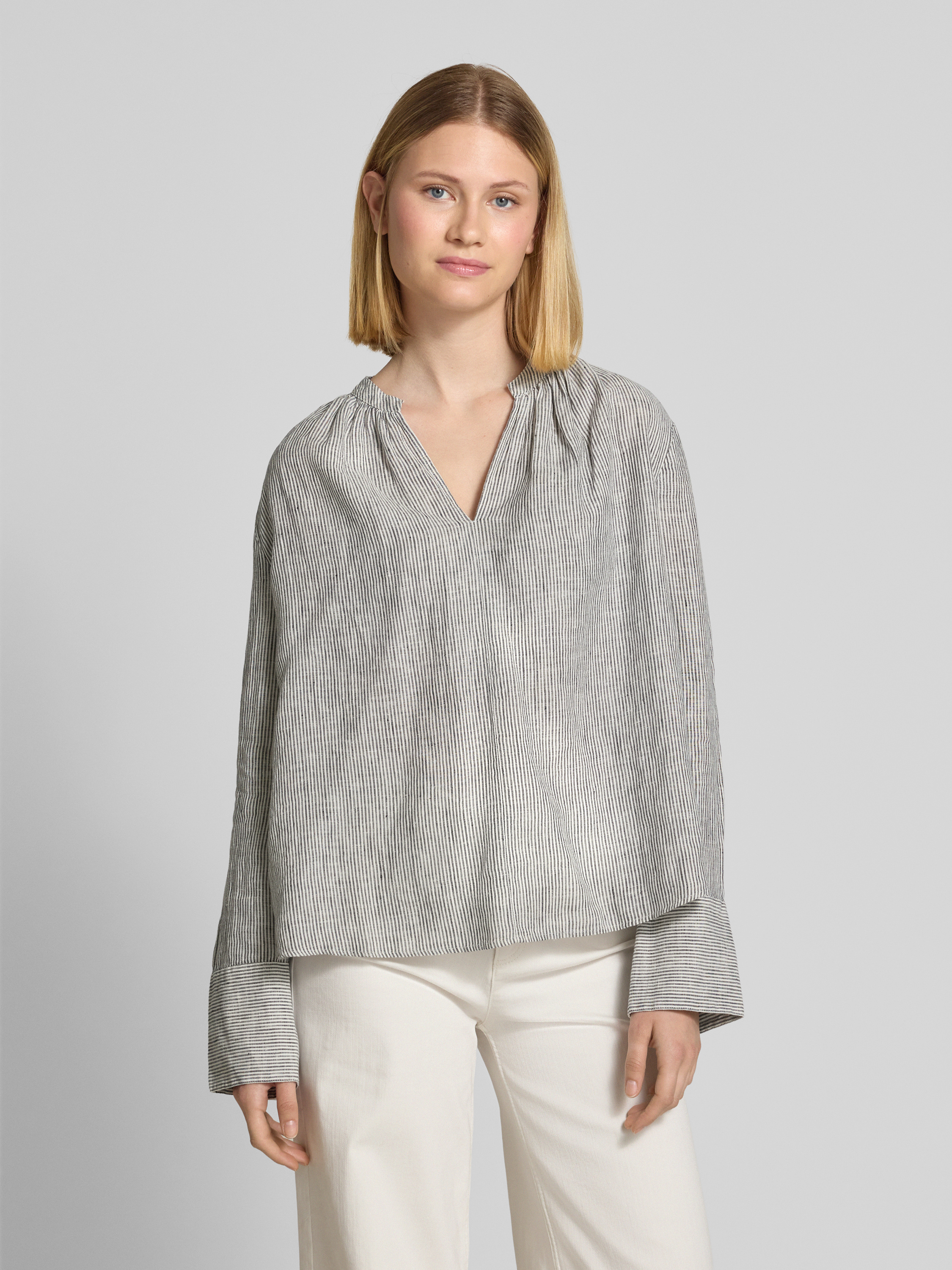 Die Relaxed Fit Bluse aus reinem Leinen von Tommy Hilfiger kombiniert lässigen Komfort mit einem Hauch von Eleganz. Das atmungsaktive Material sorgt für ein angenehmes Tragegefühl, während das entspannte Design und der Tunika-Kragen vielseitige Styling-Optionen ermöglichen. Der V-Ausschnitt verleiht dem Look eine dezente Raffinesse.