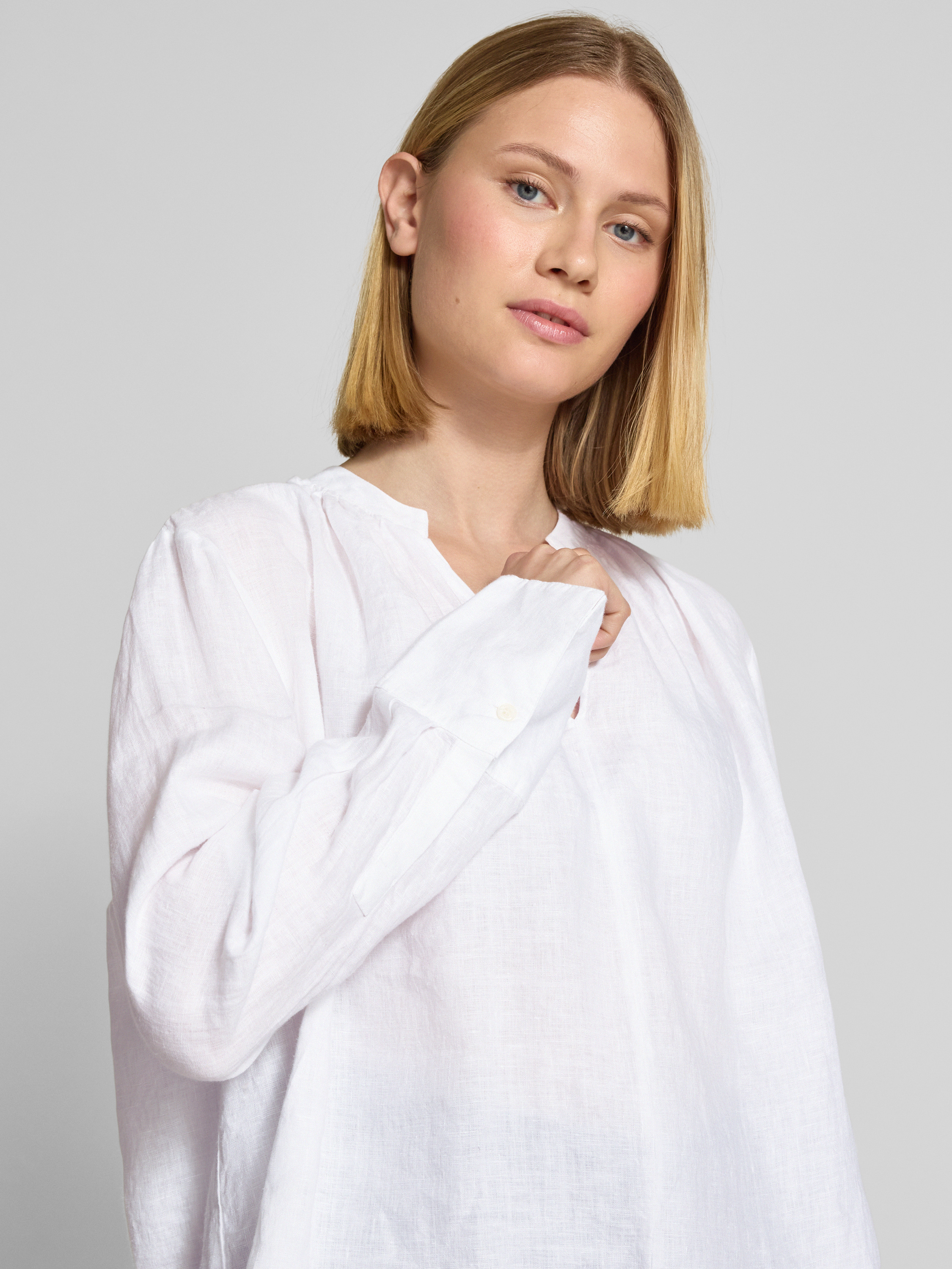 Die Relaxed Fit Bluse aus reinem Leinen von Tommy Hilfiger kombiniert lässigen Komfort mit einem Hauch von Eleganz. Das atmungsaktive Material sorgt für ein angenehmes Tragegefühl, während das entspannte Design und der Tunika-Kragen vielseitige Styling-Optionen ermöglichen. Der V-Ausschnitt verleiht dem Look eine dezente Raffinesse.