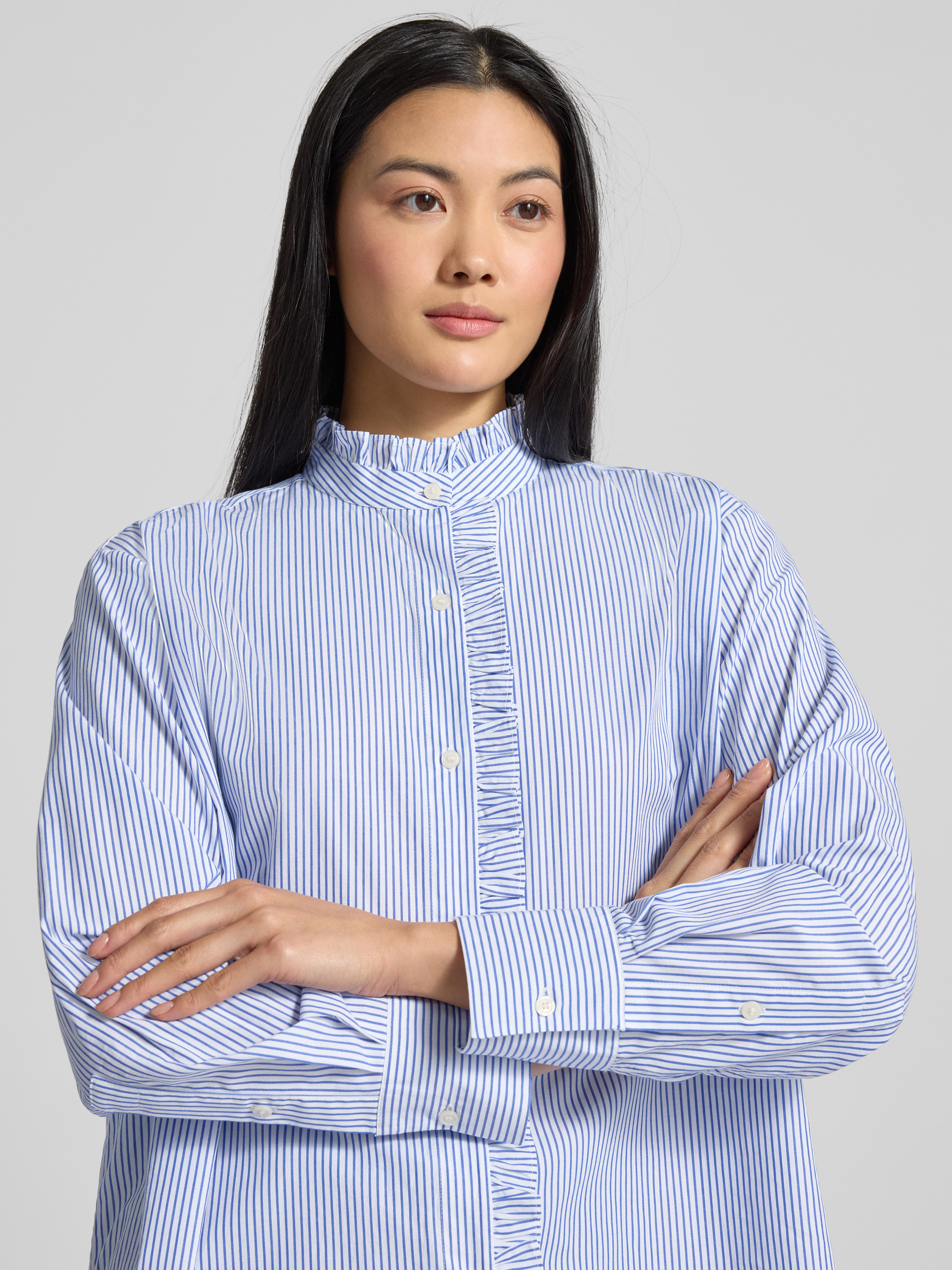 Die Damen Hemdbluse von Tommy Hilfiger im Relaxed-Fit verbindet eine angenehm legere Passform mit feiner, reiner Baumwolle. Durch den Rüschenkragen und leicht überschnittene Schultern erhält das Modell eine sanft verspielte Note, die Alltag und Büro gleichermaßen begleitet. Das unifarbene oder gestreifte Design sorgt für vielfältige Kombinationsmöglichkeiten im Kleiderschrank.