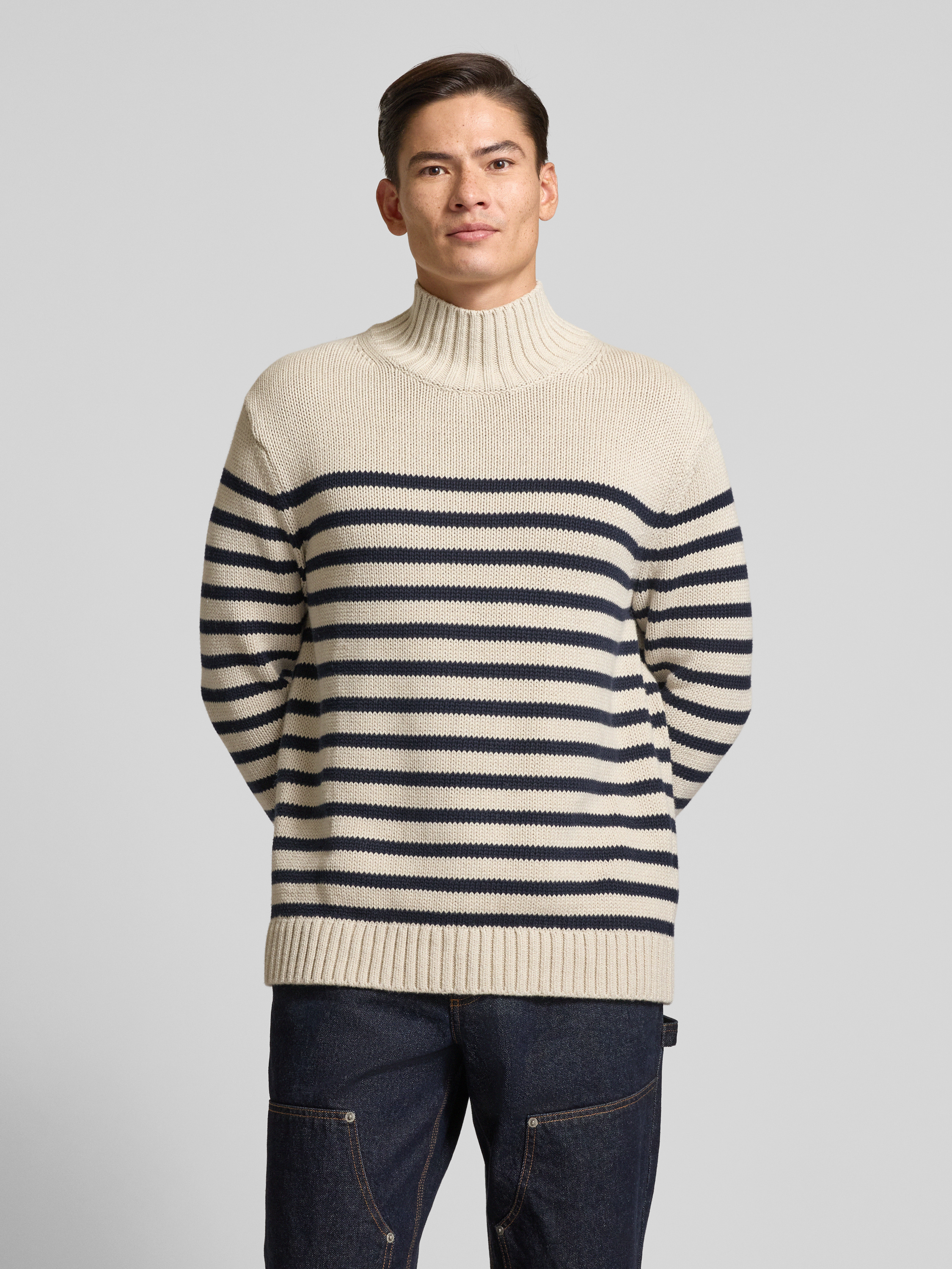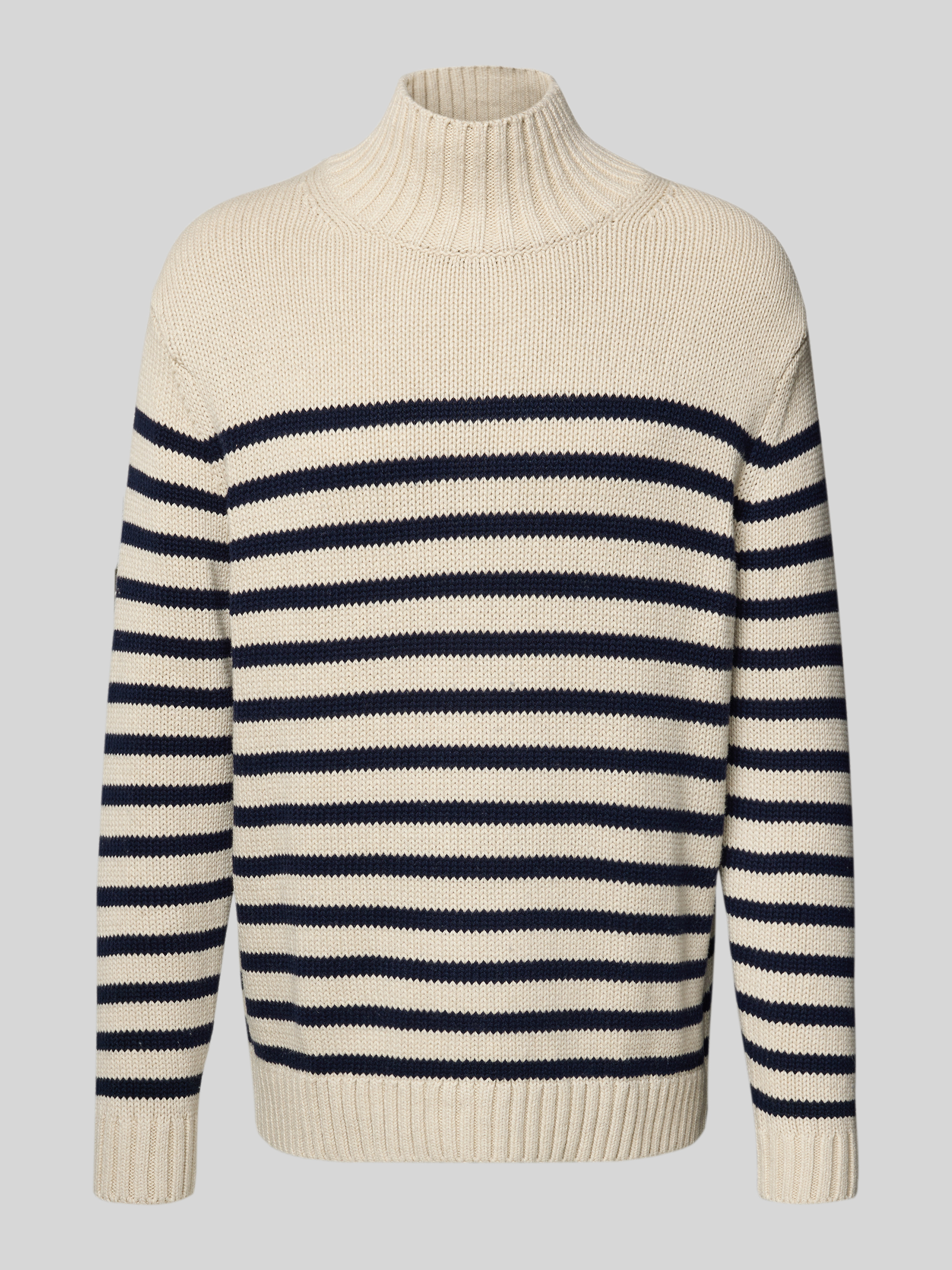 Der Herren Strickpullover von Tommy Hilfiger, Modell 'Breton', fällt durch sein gestreiftes Allover-Muster direkt ins Auge. Die Passform im Relaxed-Fit und der Mock Neck sorgen für einen lässigen Sitz, während reine Baumwolle ein angenehmes Tragegefühl vermittelt. Durch das dezente Logo Stitching wird der klassische Stil dezent abgerundet.