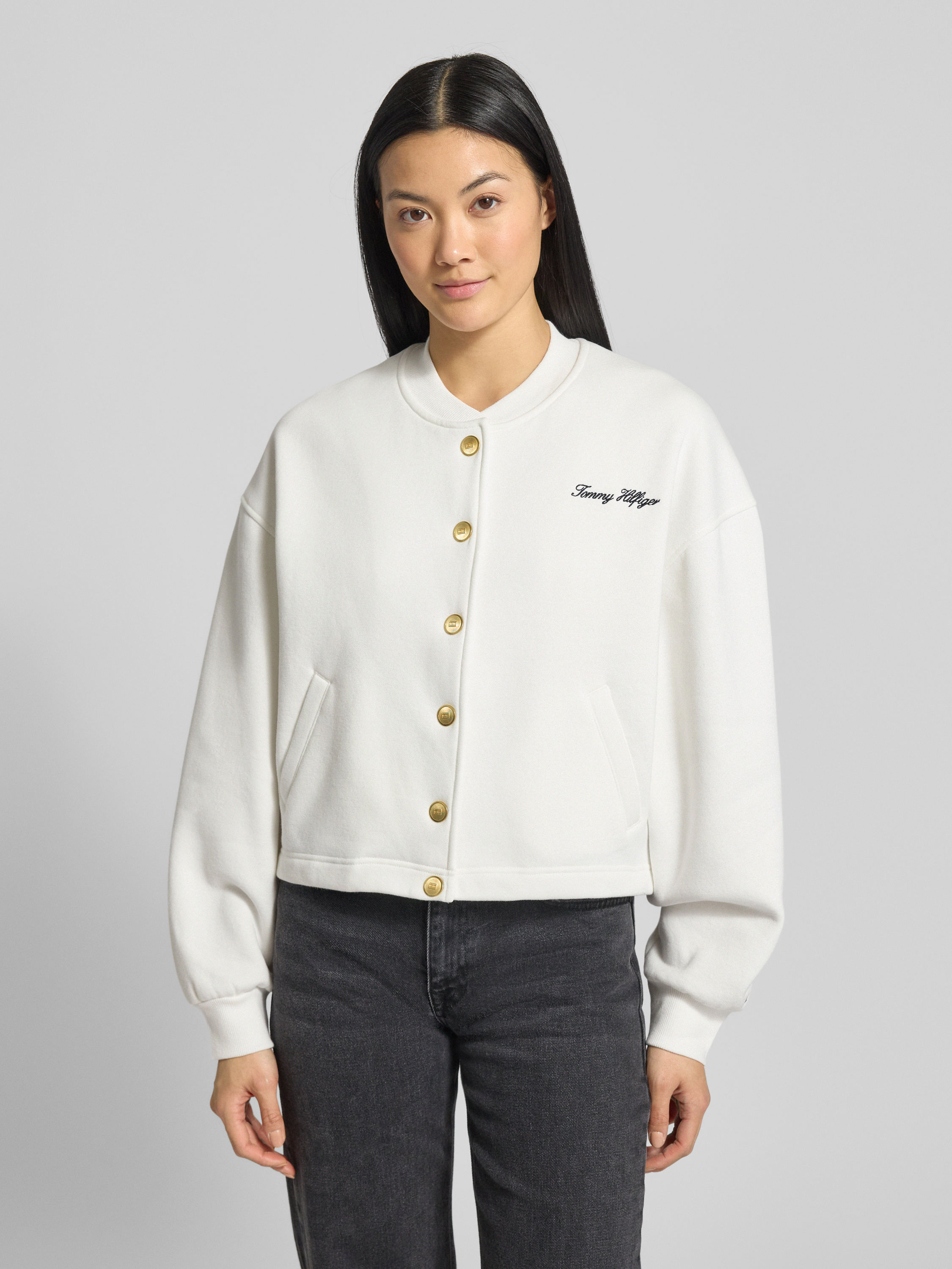 Die Damen Sweatjacke von Tommy Hilfiger präsentiert sich in Relaxed-Fit und sorgt durch ihre lässige Silhouette für angenehme Bewegungsfreiheit im Alltag. Dank des weichen Baumwoll-Mix fühlt sich das Material besonders komfortabel an und eignet sich gut für entspannte Stunden. Dezente Details wie das Label Stitching unterstreichen die schlichte Optik.