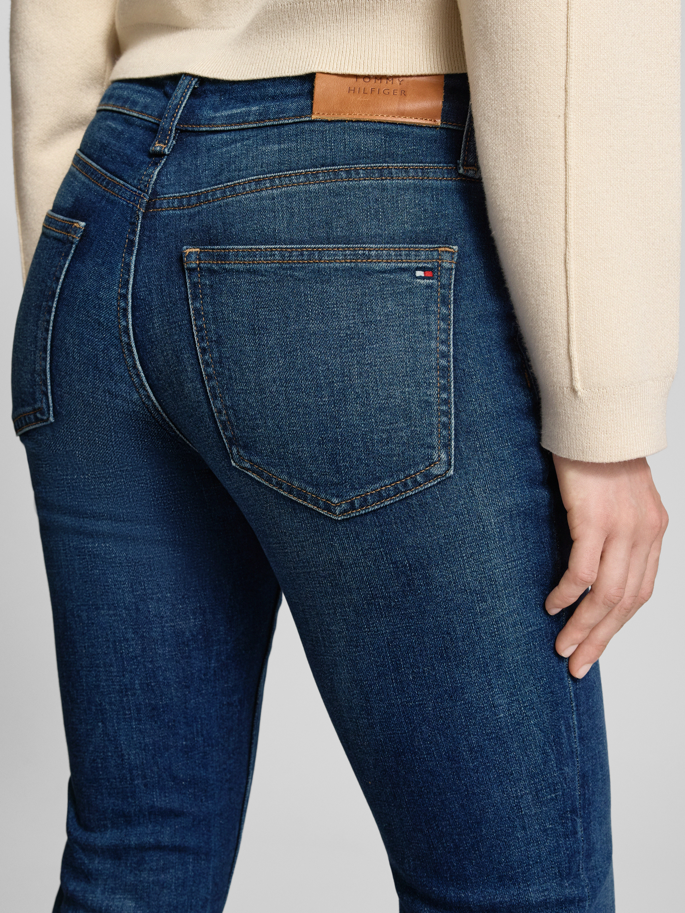 Die Damen Slim Fit Jeans von Tommy Hilfiger zeichnet sich durch ihre schmale Passform und mittlere Bundhöhe aus, die eine moderne Silhouette formt, ohne einzuengen. Dank des Baumwoll-Mix-Materials fühlt sich das Modell angenehm auf der Haut an und bleibt auch im Alltag komfortabel. Dezente Logo-Details und ein unifarbenes Design runden den zeitlosen Denim-Stil ab, sodass man vielseitig kombinieren kann.