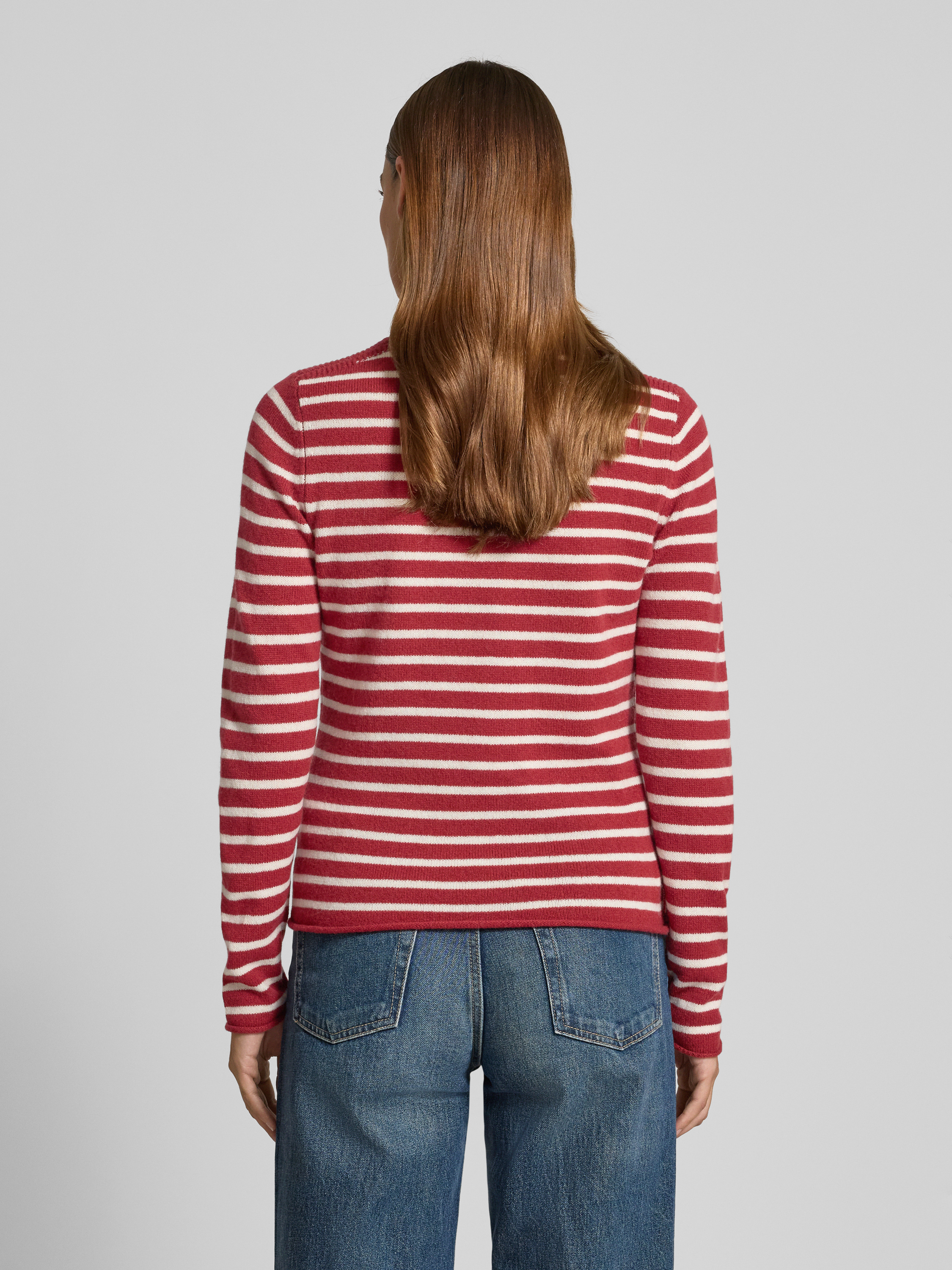 Der Damen Strickpullover von Tommy Hilfiger kombiniert ein gestreiftes Allover-Muster mit einer körpernahen Slim-Fit-Passform, wodurch er sich vielseitig einsetzen lässt. Reine Wolle sorgt dabei für ein angenehmes Tragegefühl und spendet wohlige Wärme. Dezente Logo-Stitching-Details und Rollsäume runden das Design ab.