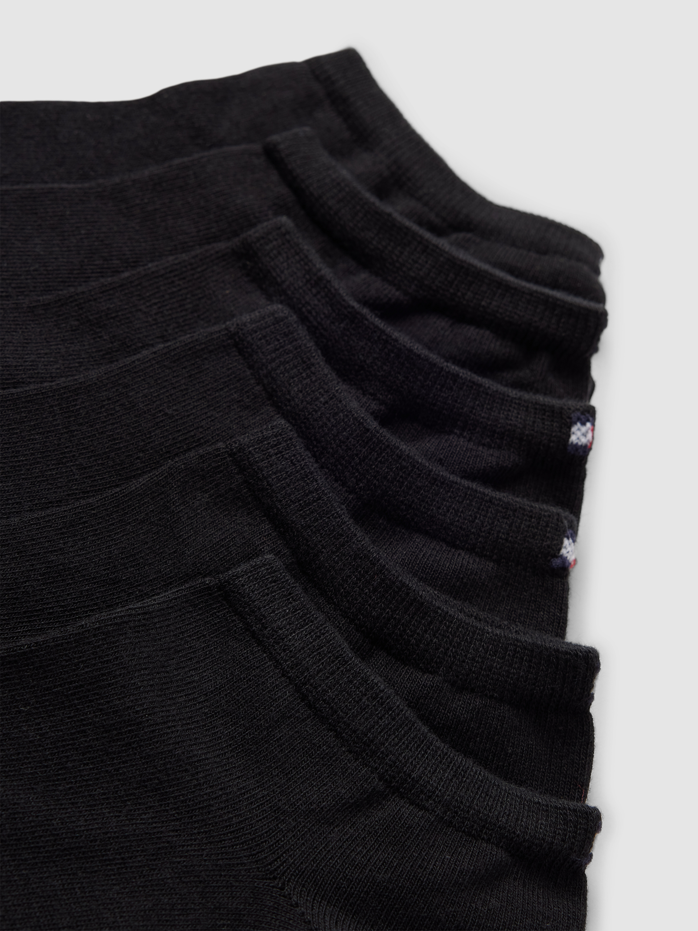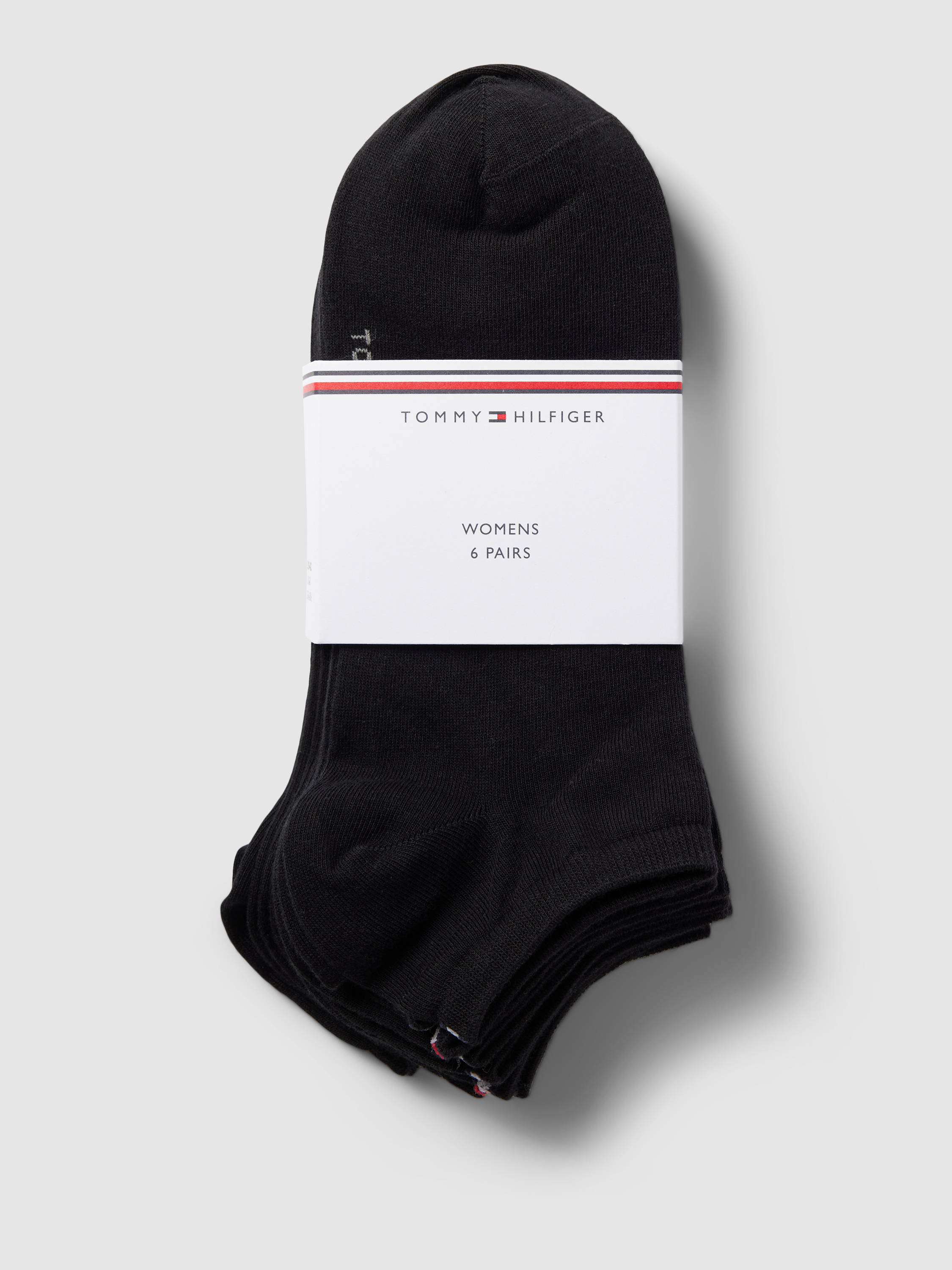 Die Damen Sneakersocken von Tommy Hilfiger, im praktischen 6er-Pack, bestehen aus einem Baumwoll-Mix mit Stretch-Anteil, der für angenehmen Tragekomfort sorgt. Das unifarbene Design mit dezenten Label-Details verleiht den Socken eine elegante Note. Dank der Rippenbündchen sitzen sie sicher und bequem.