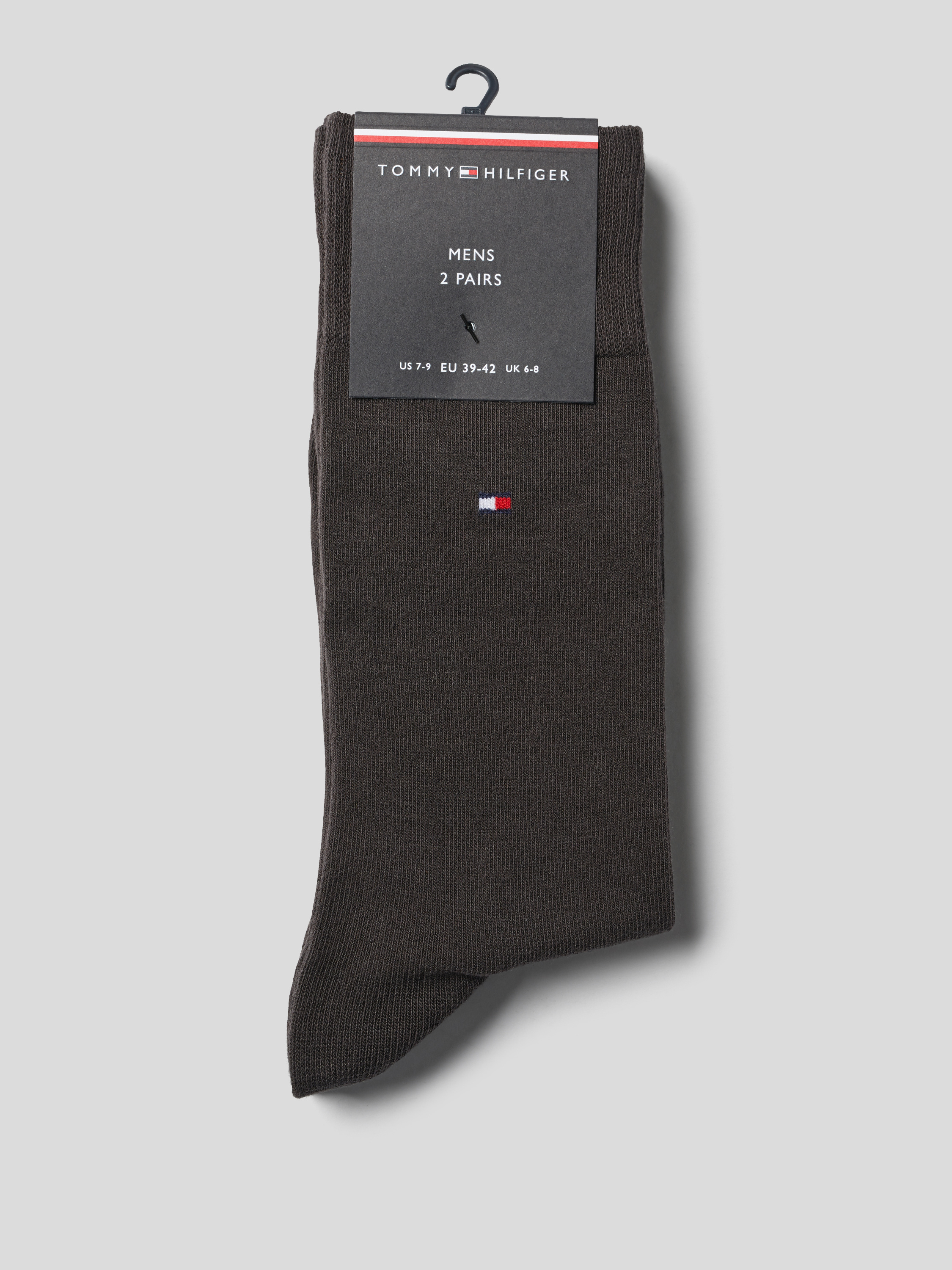 Der Socken im 2er-Pack von Tommy Hilfiger verbindet einen angenehmen Baumwoll-Mix mit einem elastischen Bund, der für hohen Tragekomfort sorgt. Der hohe Sitz bietet festen Halt, während die dezente Logo-Stickerei dem Design einen stilvollen Akzent verleiht. Ideal für den Alltag.