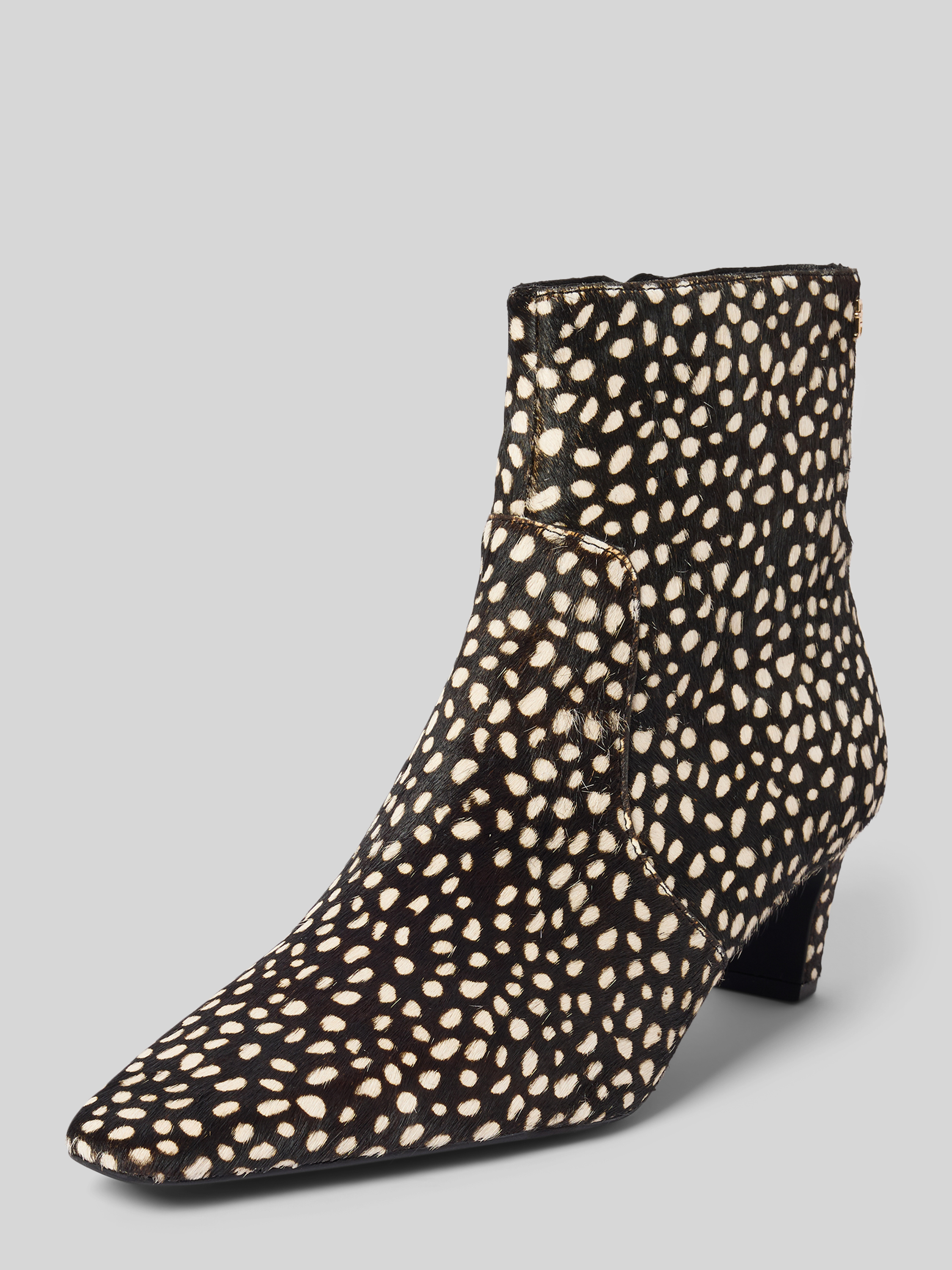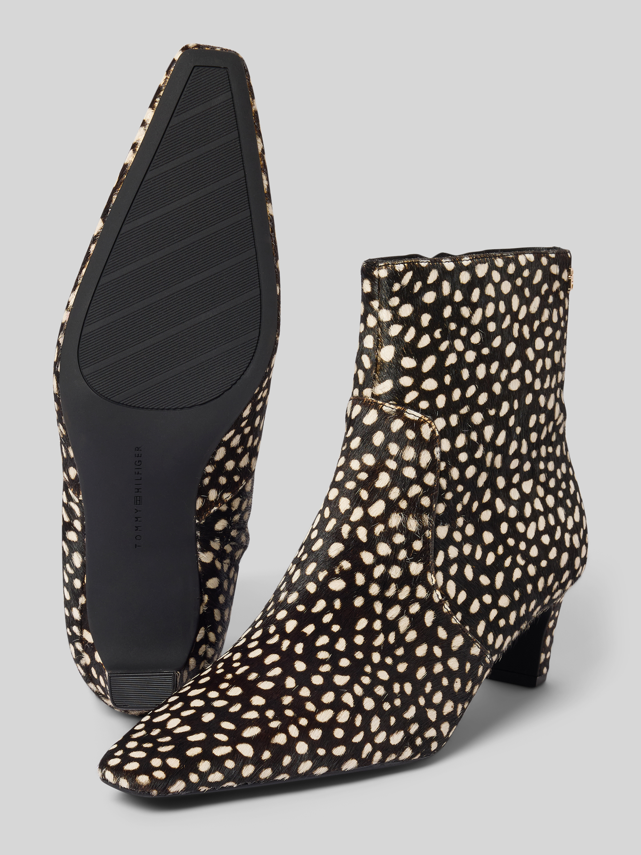 Die Stiefeletten von Tommy Hilfiger, Modell 'Snow Leopard', setzen mit ihrem Animal-Print und dem Square-Toe-Design einen markanten Akzent. Gefertigt aus echtem Rindsleder, entsteht eine angenehme Haptik, die zugleich für Strapazierfähigkeit sorgt. Durch die Kitten-Heel-Absatzform erhält man einen femininen Look mit stabilem Stand.