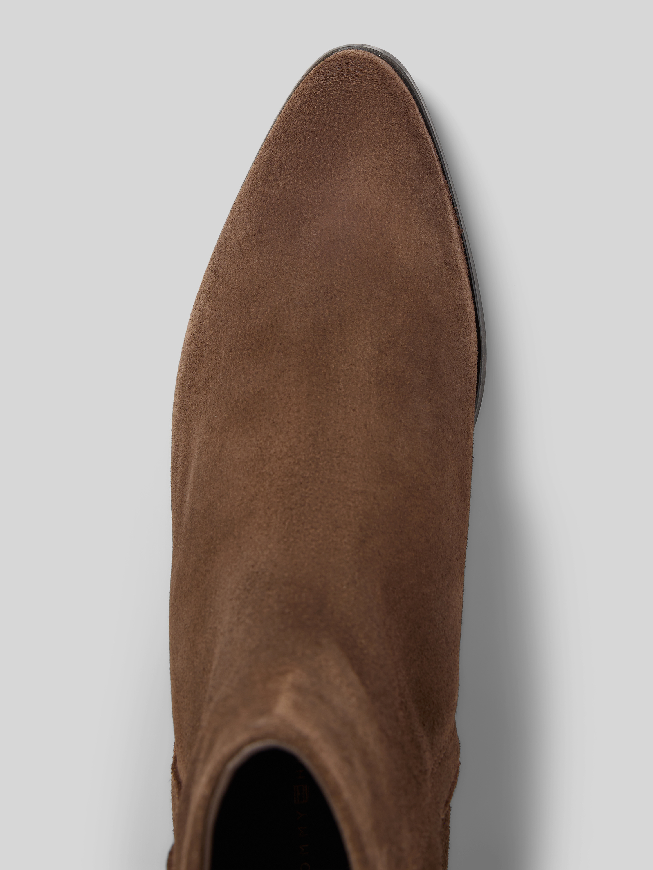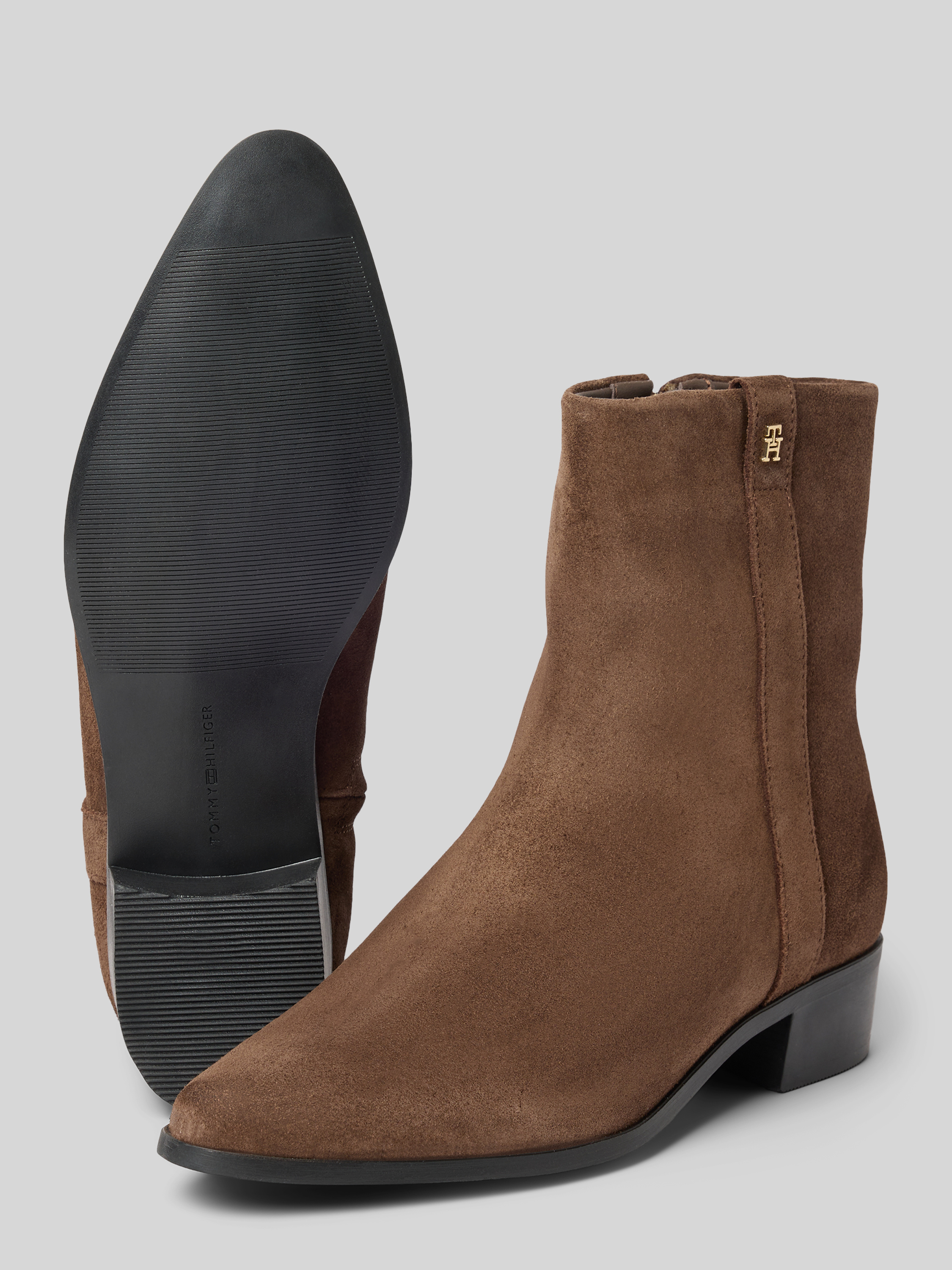 Die Stiefeletten aus Veloursleder von Tommy Hilfiger präsentieren sich in einer ansprechenden Melange-Optik und fallen durch ihre spitz zulaufende Form sowie den stabilen Blockabsatz auf. Das hochwertige Veloursleder verleiht ein angenehmes Tragegefühl. Mit der dezenten Logo-Applikation entsteht ein zurückhaltend eleganter Akzent.