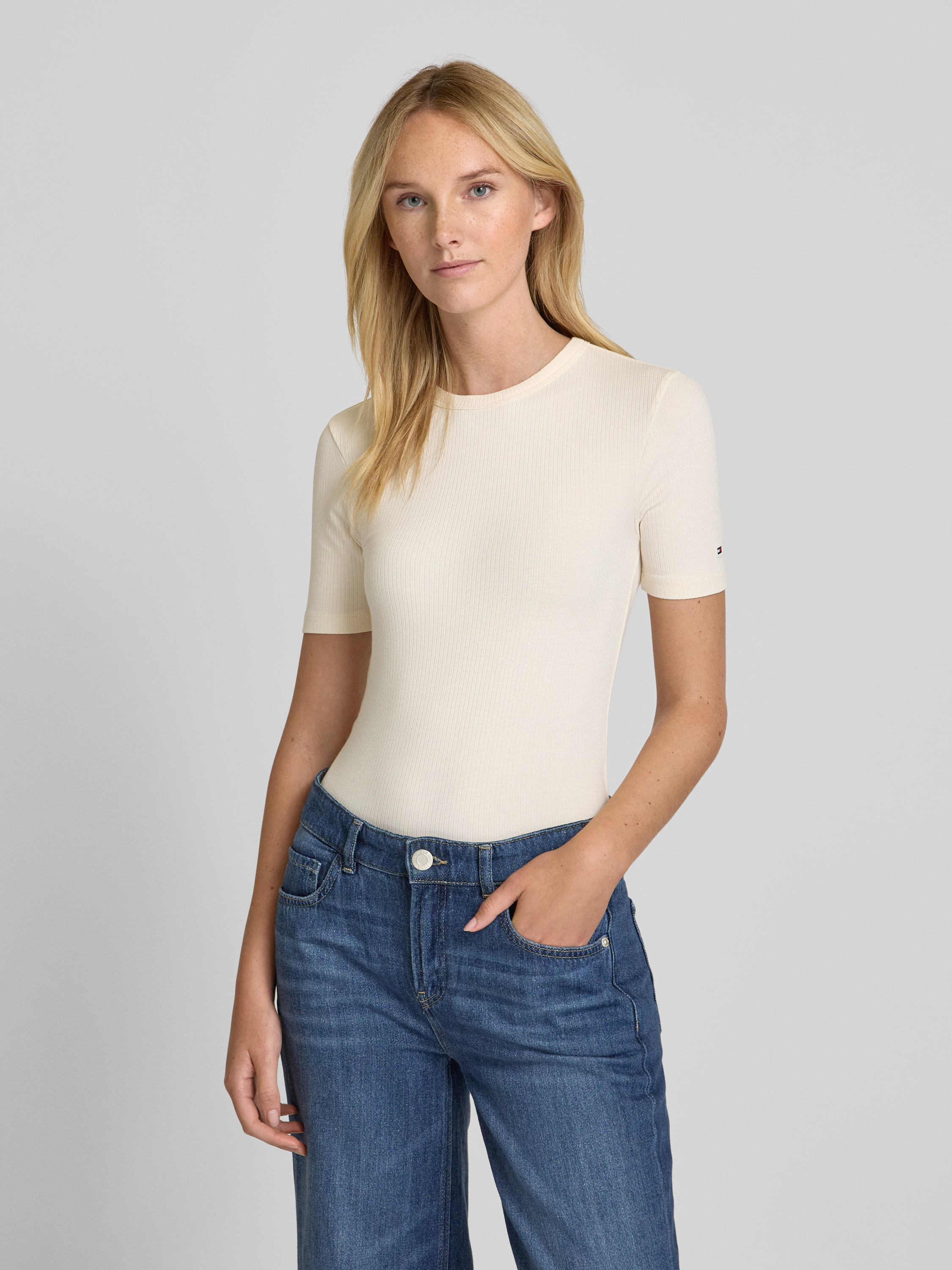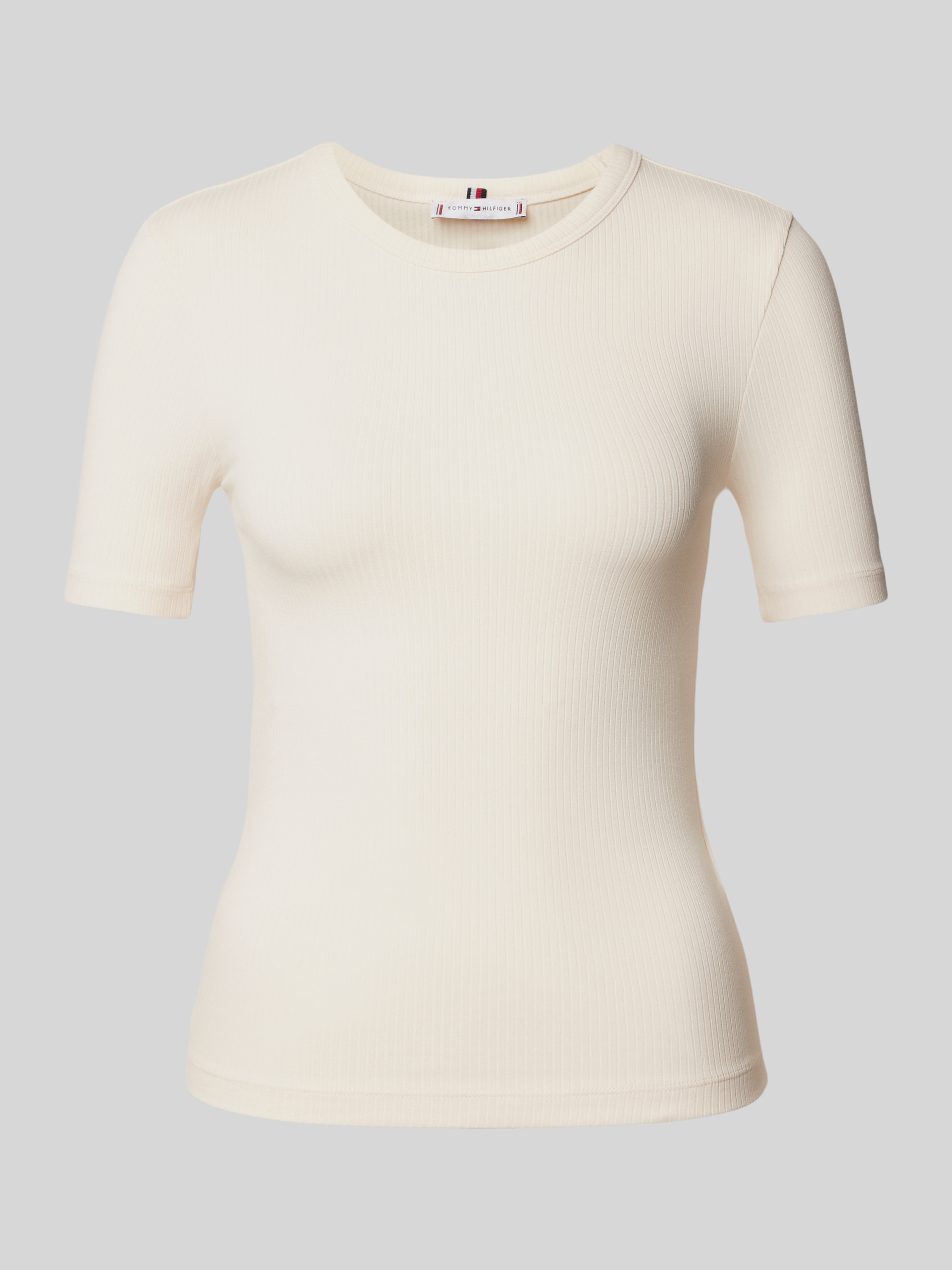 Tommy HilfigerT-Shirt in Ripp-Optik in ecru