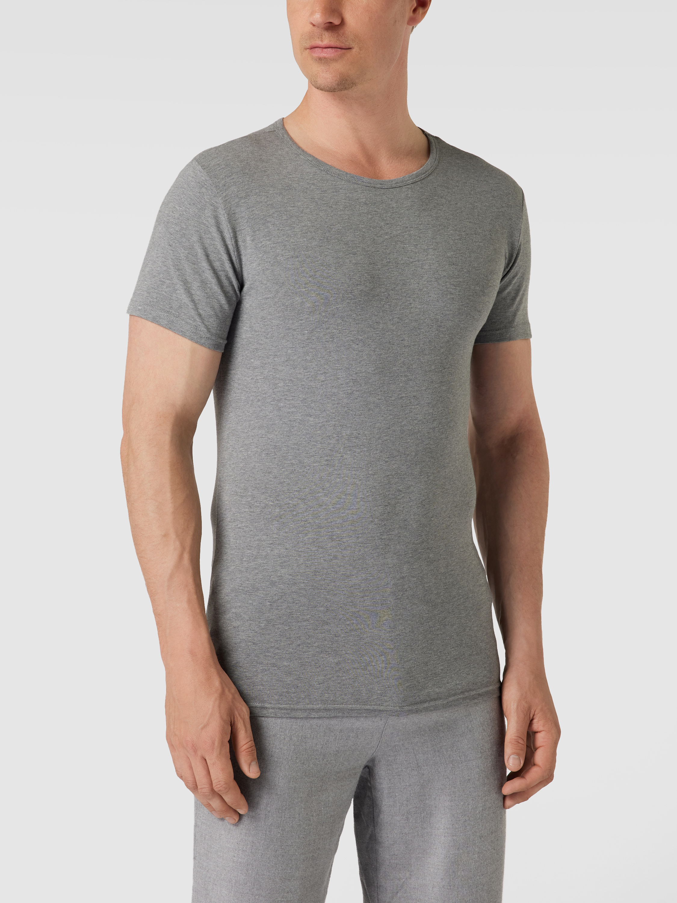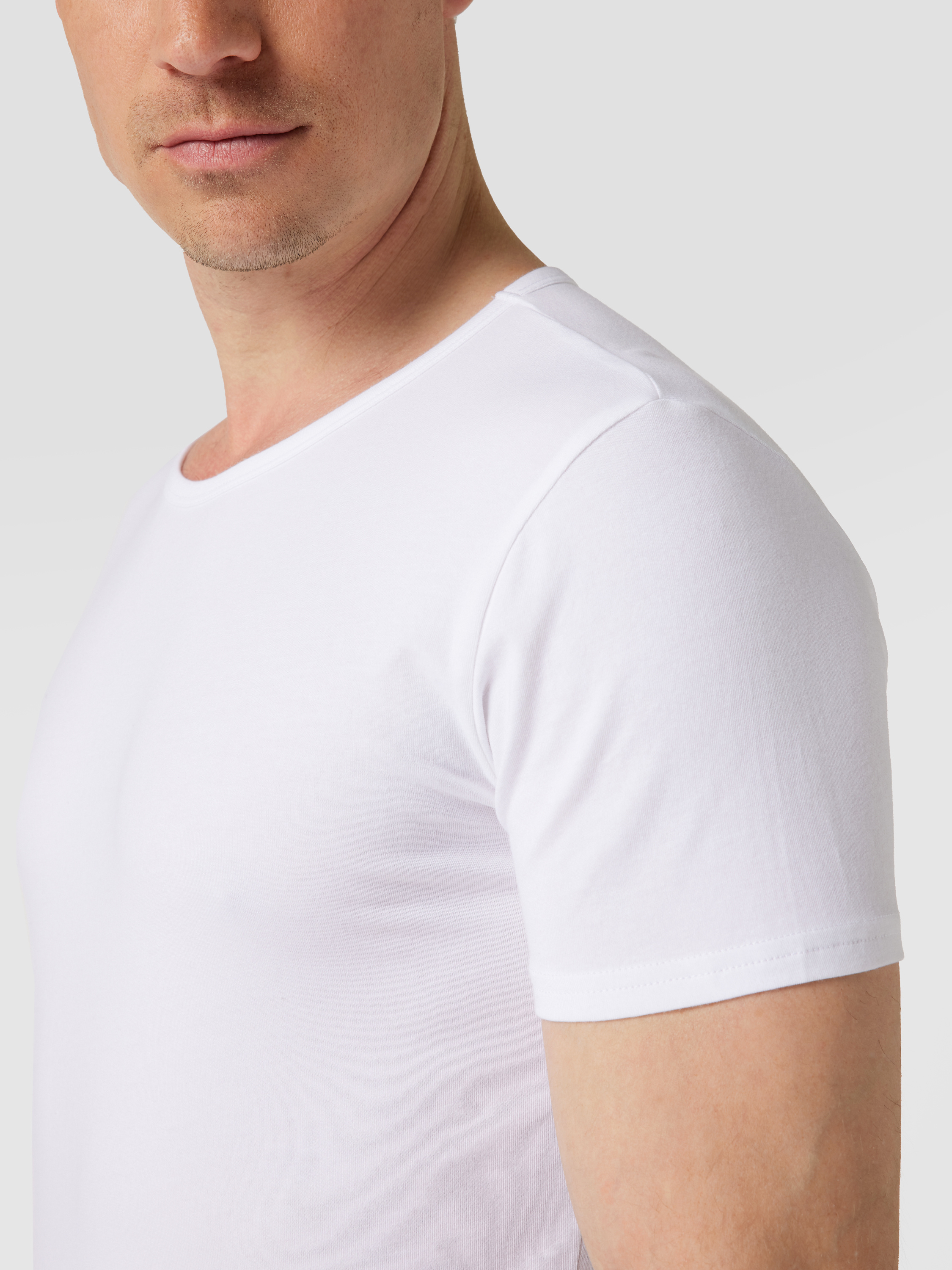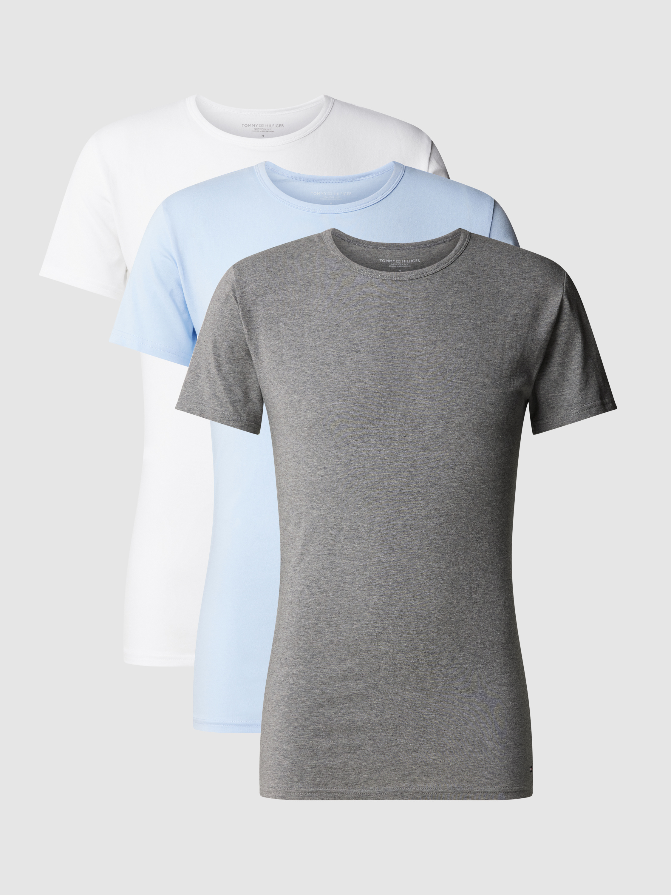 Das T-Shirt von Tommy Hilfiger ist aus einem Baumwoll-Elasthan-Mix gefertigt und gerade geschnitten. Es kommt im 3er-Pack und unifarbenen Design mit Rundhalsausschnitt.