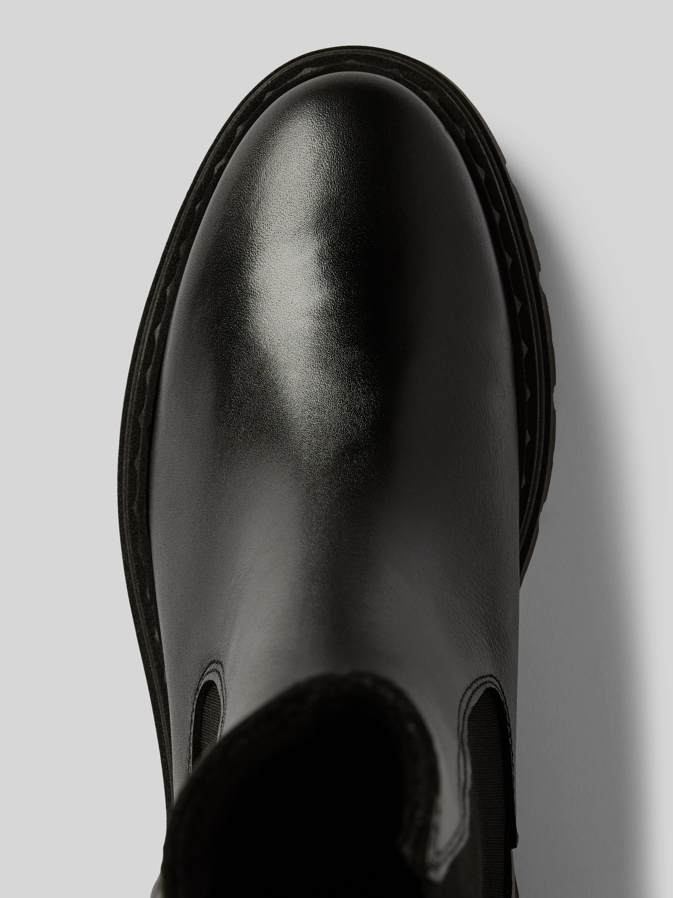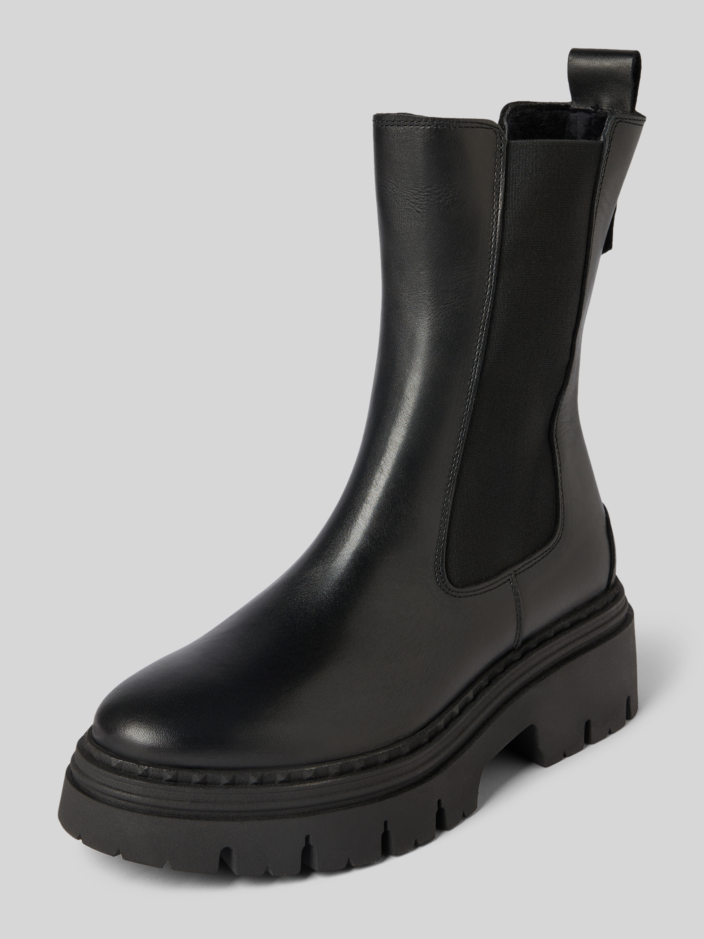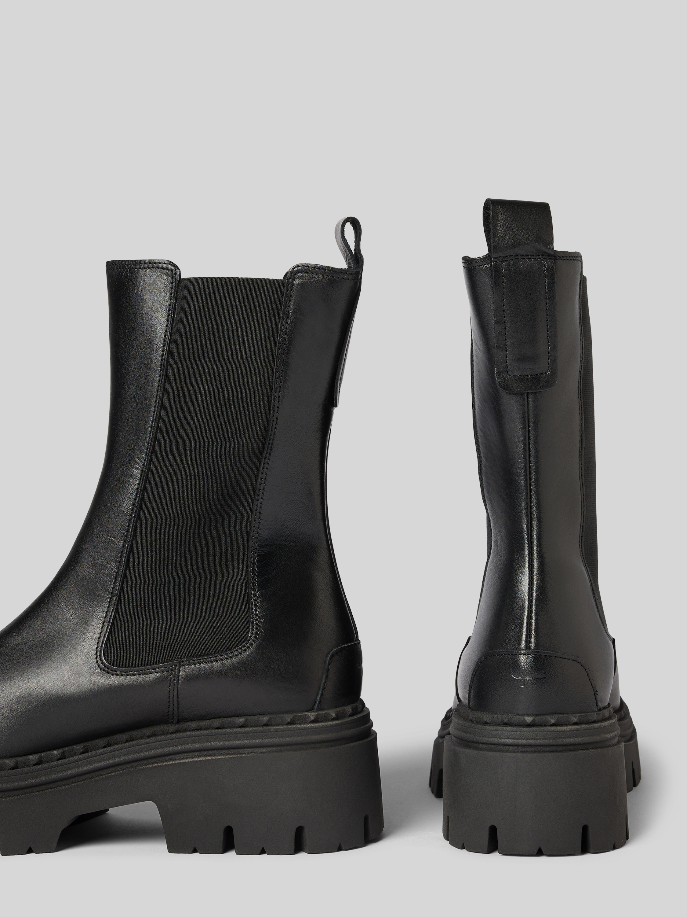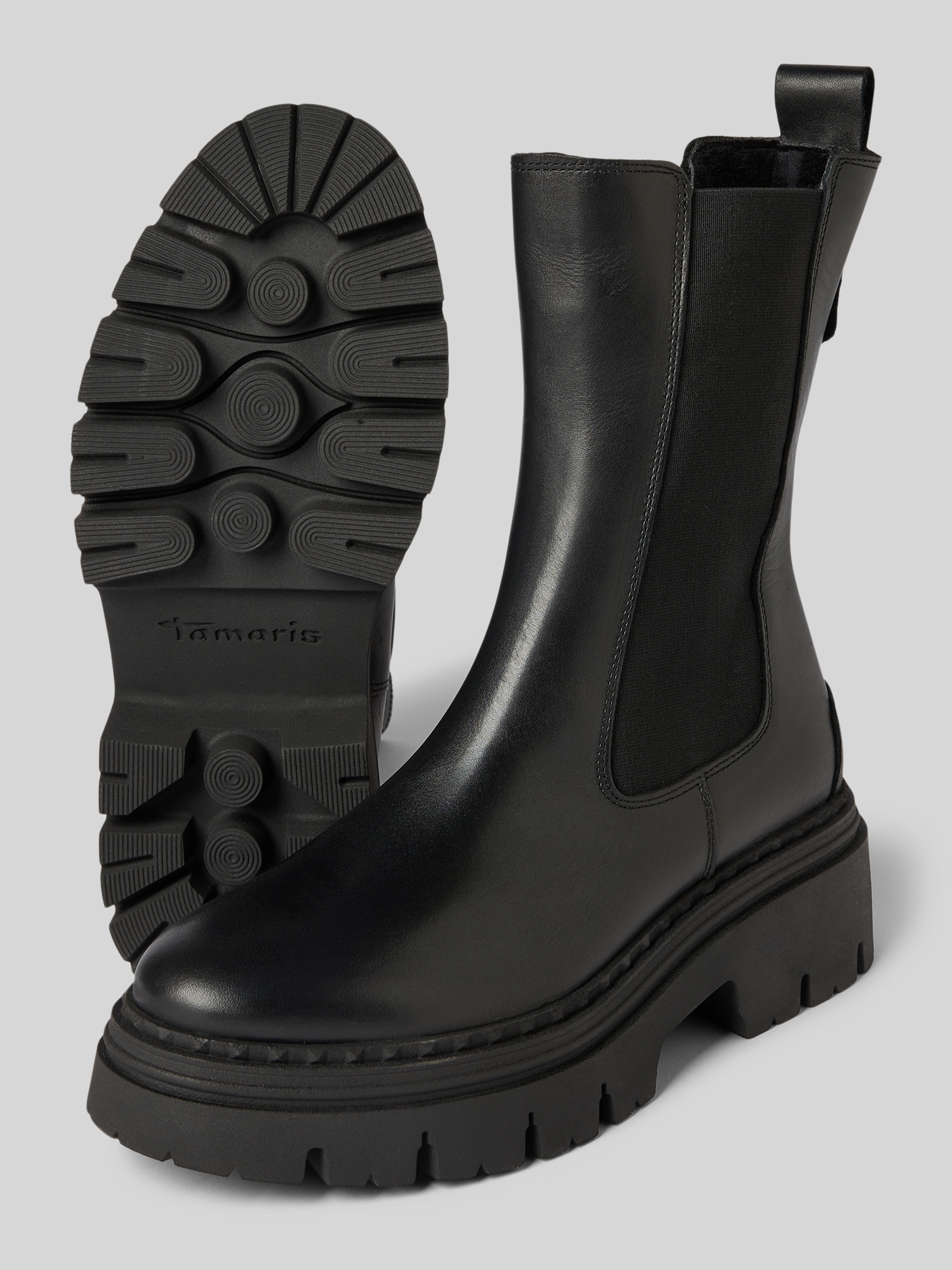 Die Damen Chelsea-Boots von Tamaris zeigen sich in unifarbener Optik und wirken durch das echte Leder angenehm hochwertig. Durch den abgerundeten Schnitt und den Blockabsatz entsteht ein ausgewogenes Tragegefühl, das sich für verschiedenste Anlässe eignet. Eine dezent geprägte Logo-Applikation und die praktische Zugschlaufe runden das Modell alltagstauglich ab.