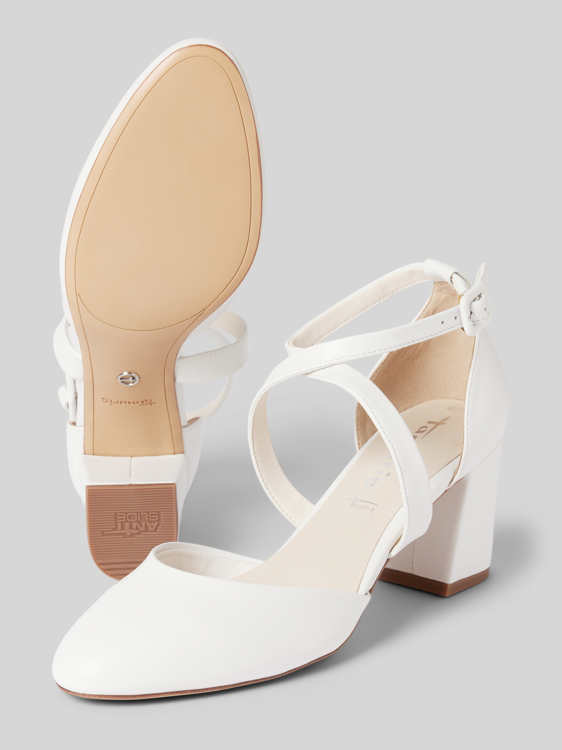 Die High Heels von Tamaris verbinden Eleganz mit Funktionalität. Die strukturierte Sohle bietet sicheren Halt, während die abgerundete, spitz zulaufende Form den Füßen schmeichelt. Mit einer Dornschließe versehen, eignen sie sich ideal für besondere Anlässe und stilvolle Auftritte.