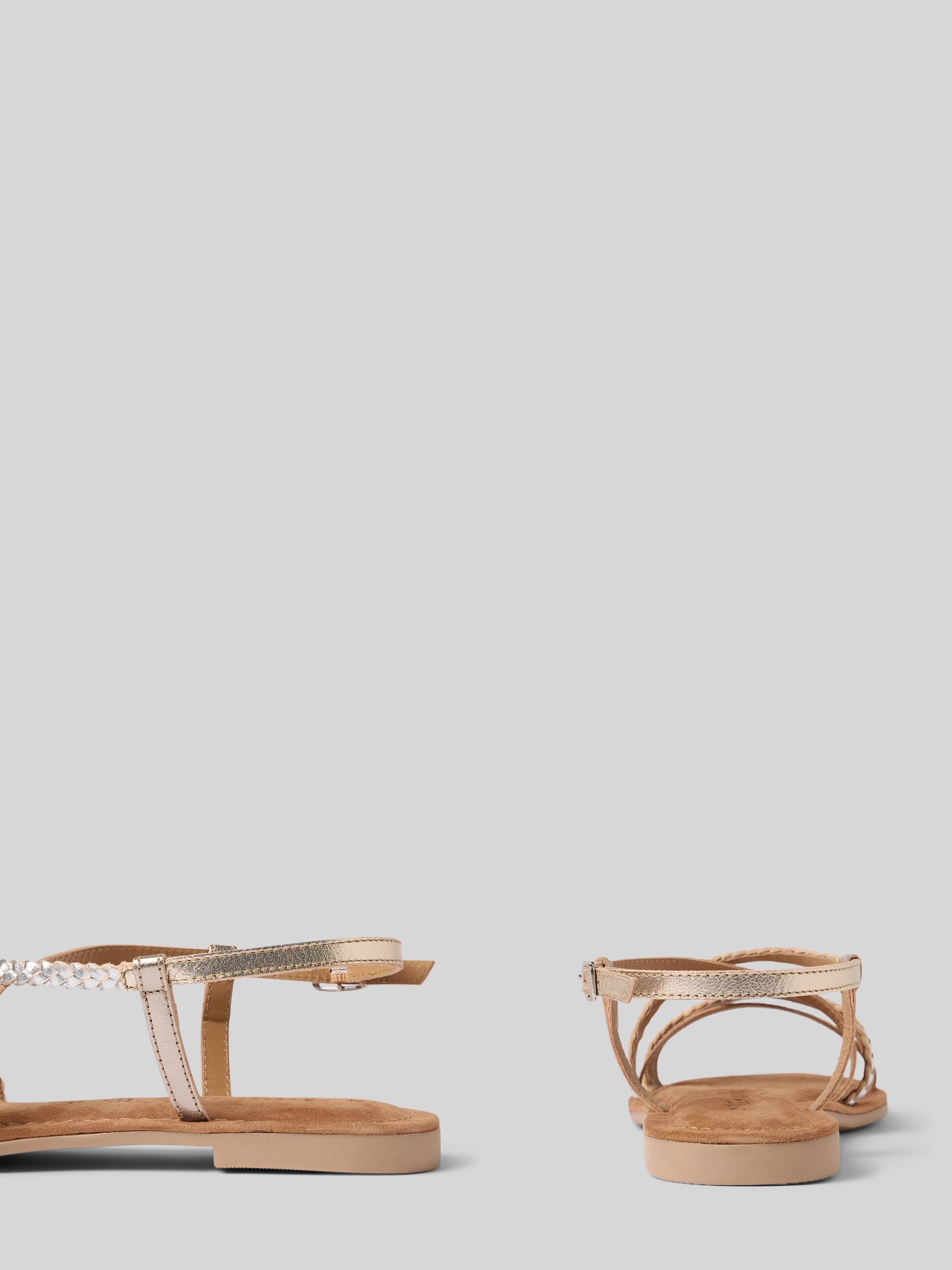 Die Ledersandalette von Tamaris besticht durch ihre schmalen Riemen aus echtem Leder, die eine elegante und abgerundete Form schaffen. Die strukturierte Sohle bietet Halt, während die dezente Absatzhöhe von 2 cm für angenehmen Komfort sorgt, ideal für viele Gelegenheiten.