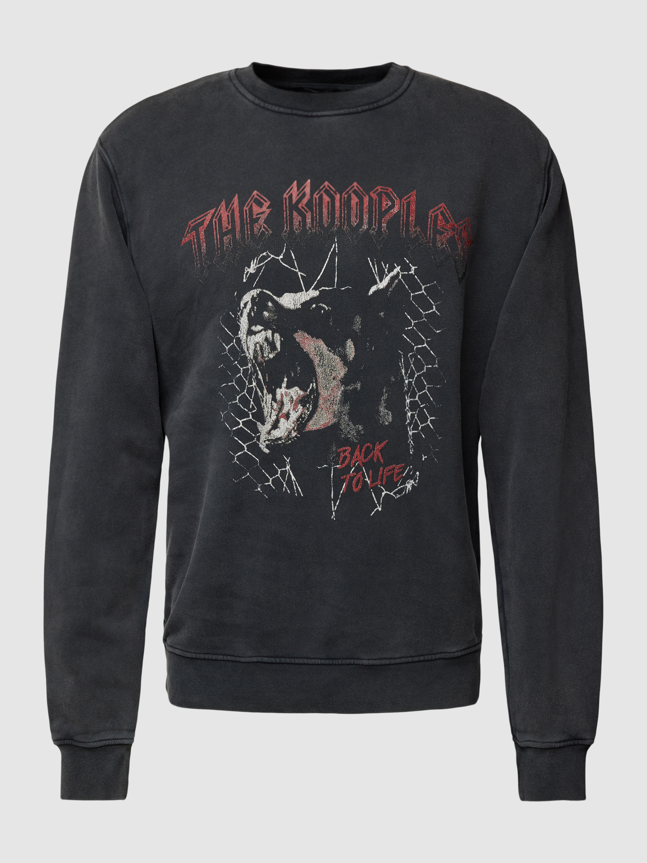 Das Herren Sweatshirt von The Kooples vereint einen körpernahen Schnitt mit einem schlichten Design, das durch einen markanten Label-Motiv-Print akzentuiert wird. Der weiche Acetat-Elasthan-Mix sorgt für angenehmen Tragekomfort. Ein Rundhalsausschnitt und gerippte Abschlüsse runden das Gesamtbild harmonisch ab.