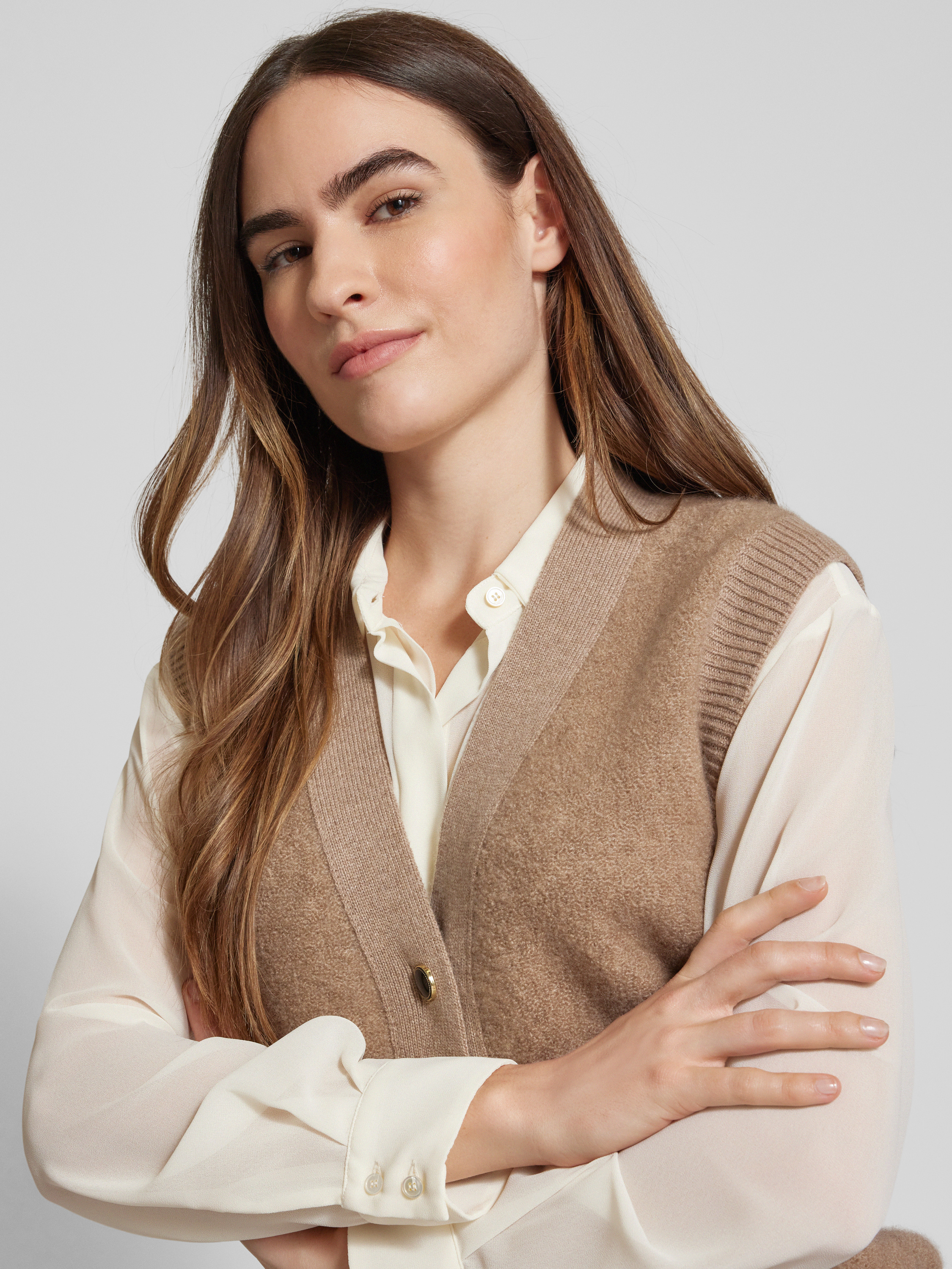 Die Damen Strickweste von (The Mercer) N.Y. überzeugt mit ihrem weichen Kaschmir-Mix, der für ein angenehmes Tragegefühl sorgt. Der gerade Schnitt mit V-Ausschnitt ermöglicht vielseitige Kombinationsmöglichkeiten. Praktische seitliche Taschen bieten zusätzlichen Komfort im Alltag.