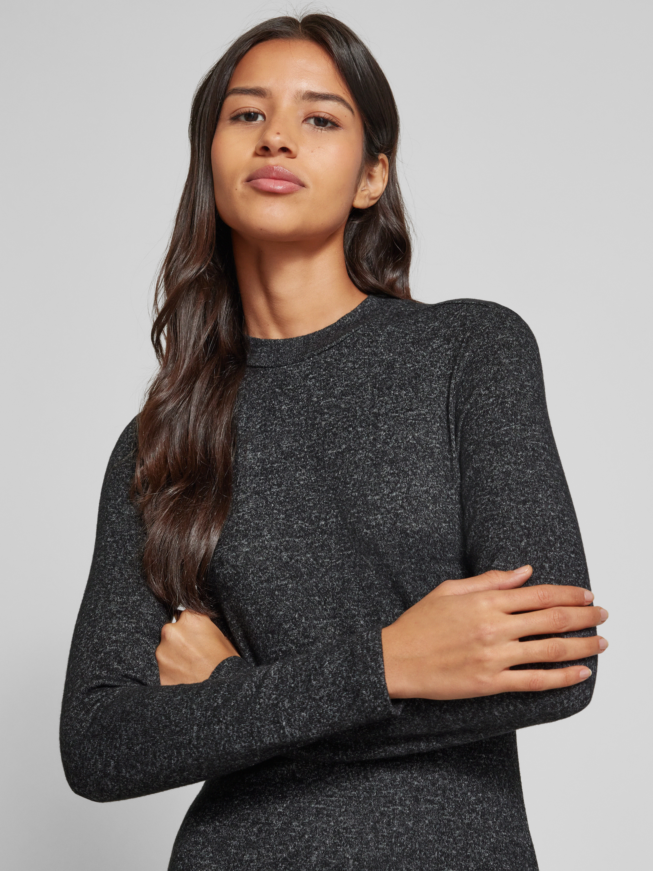 Das Damen Minikleid von Tom Tailor Denim fällt durch seinen lockeren Schnitt angenehm über die Silhouette und sorgt so für ein entspanntes Tragegefühl. Der hochgeschlossene Mock-Neck verleiht dem melierten Jersey eine moderne Note, während die weiche Viskose-Mischung leicht auf der Haut liegt. Dank der langen Ärmel eignet sich das Fließende Minikleid aus Viskose-Mix mit Mock-Neck besonders für kühlere Tage.
