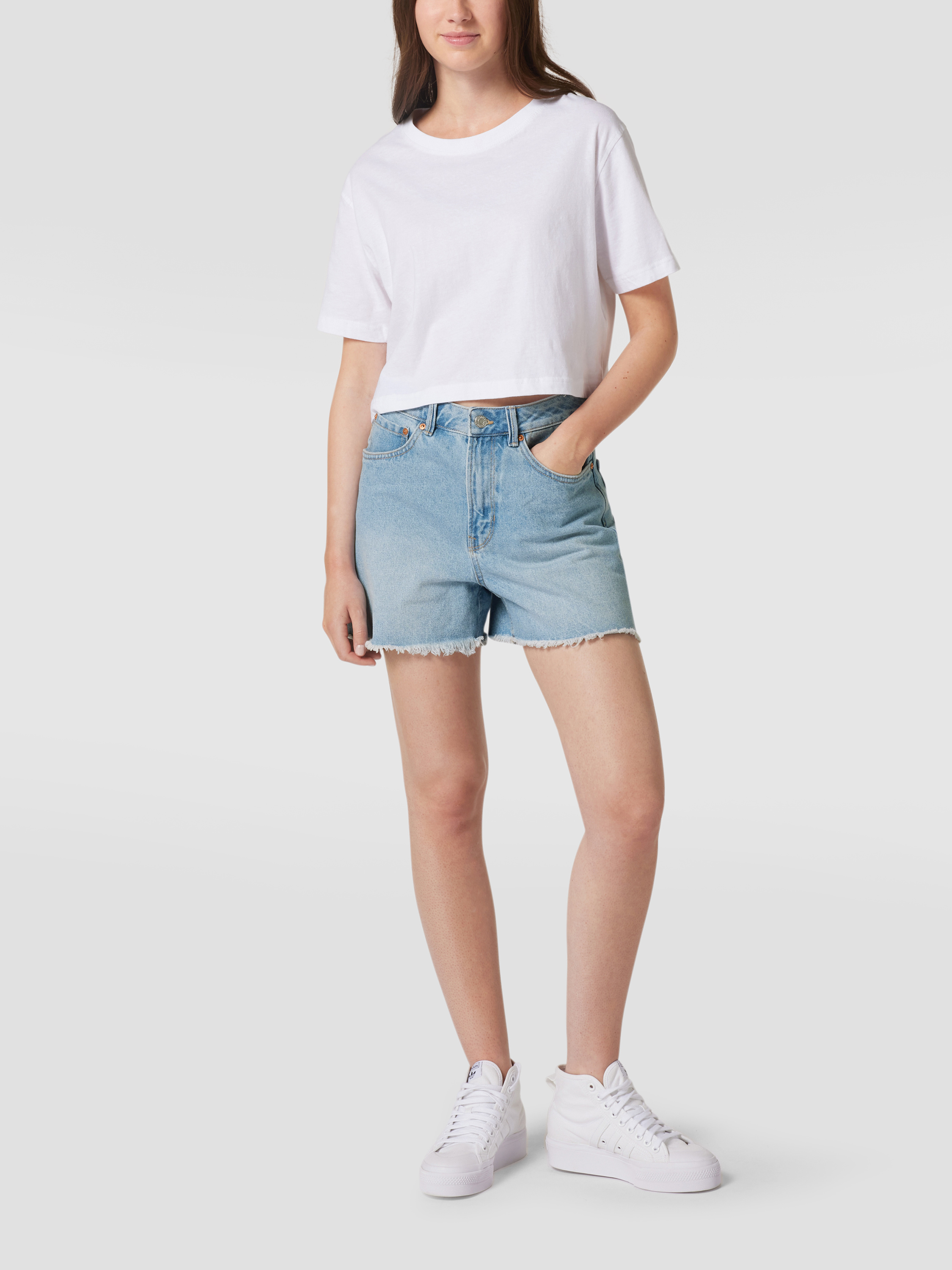 Die Jeansshorts von TOM TAILOR DENIM aus reiner Baumwolle vereinen lässigen Stil mit komfortabler Passform. Ihr lockerer Schnitt und das 5-Pocket-Design sorgen für Bewegungsfreiheit, während ausgefranste Abschlüsse dem Look eine trendige Note verleihen. Der Label-Patch rundet das Gesamtbild ab.