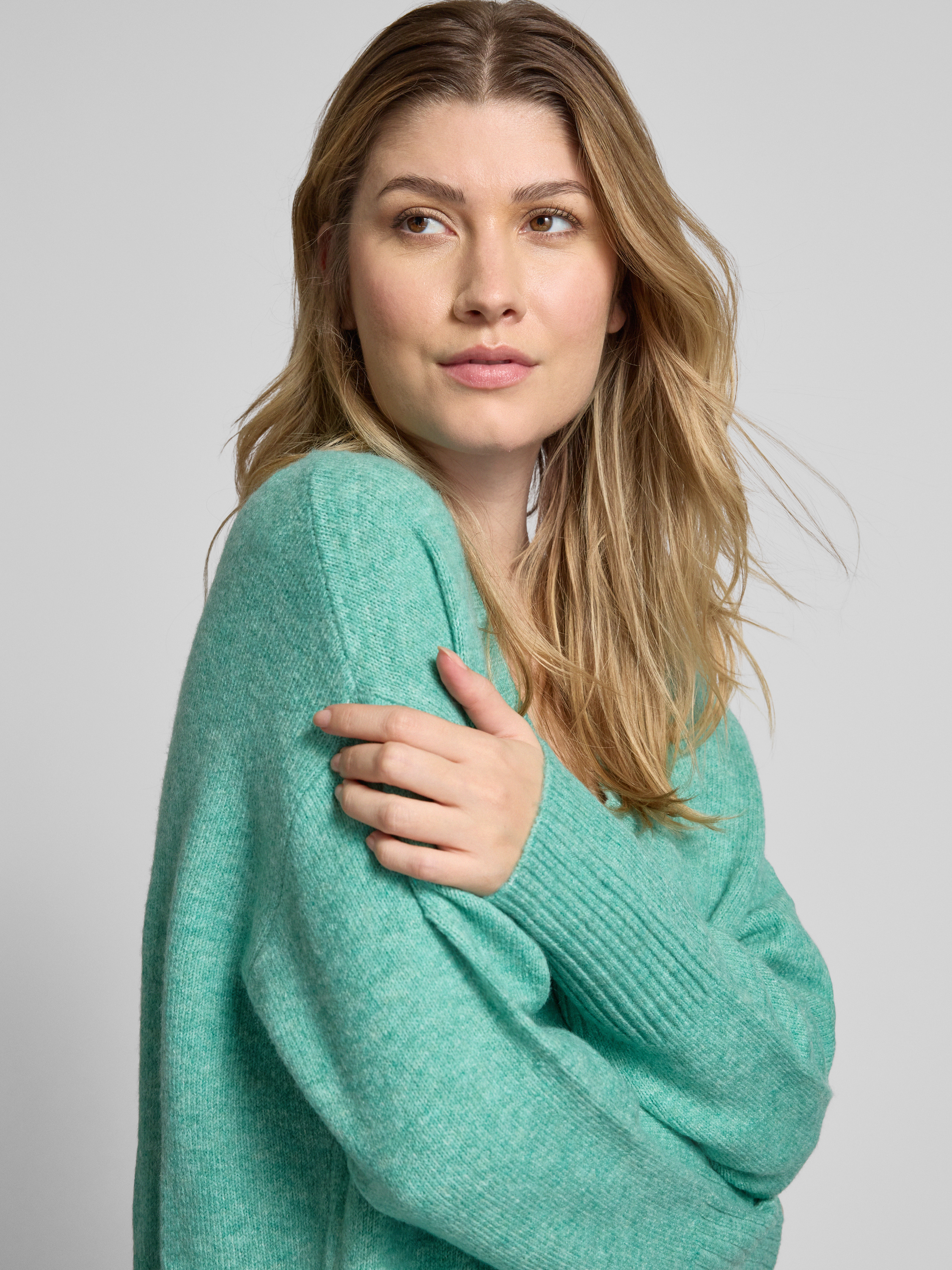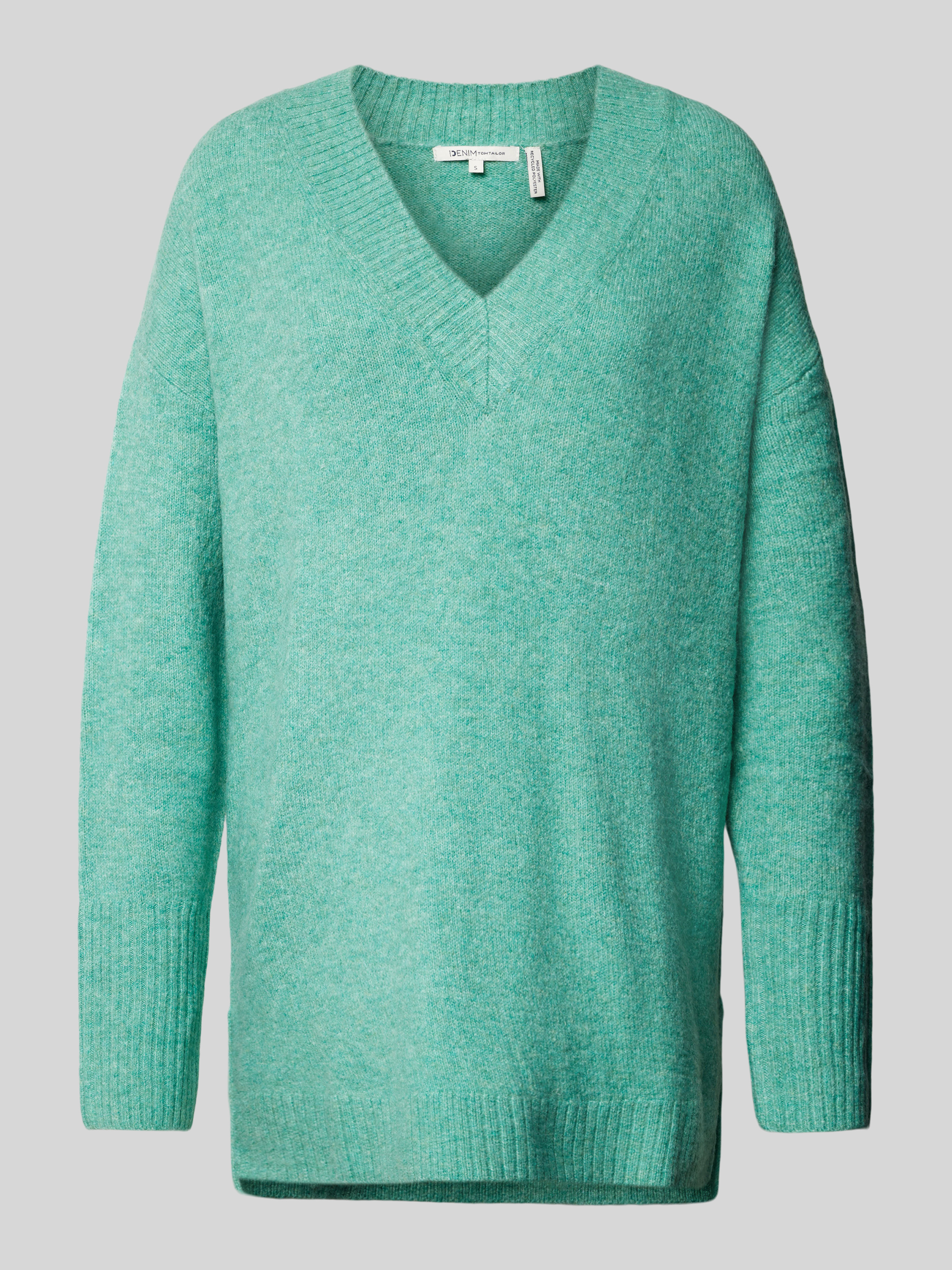 Tom Tailor DenimLoose Fit Strickpullover mit Baumwolle und V-Ausschnitt in schilf