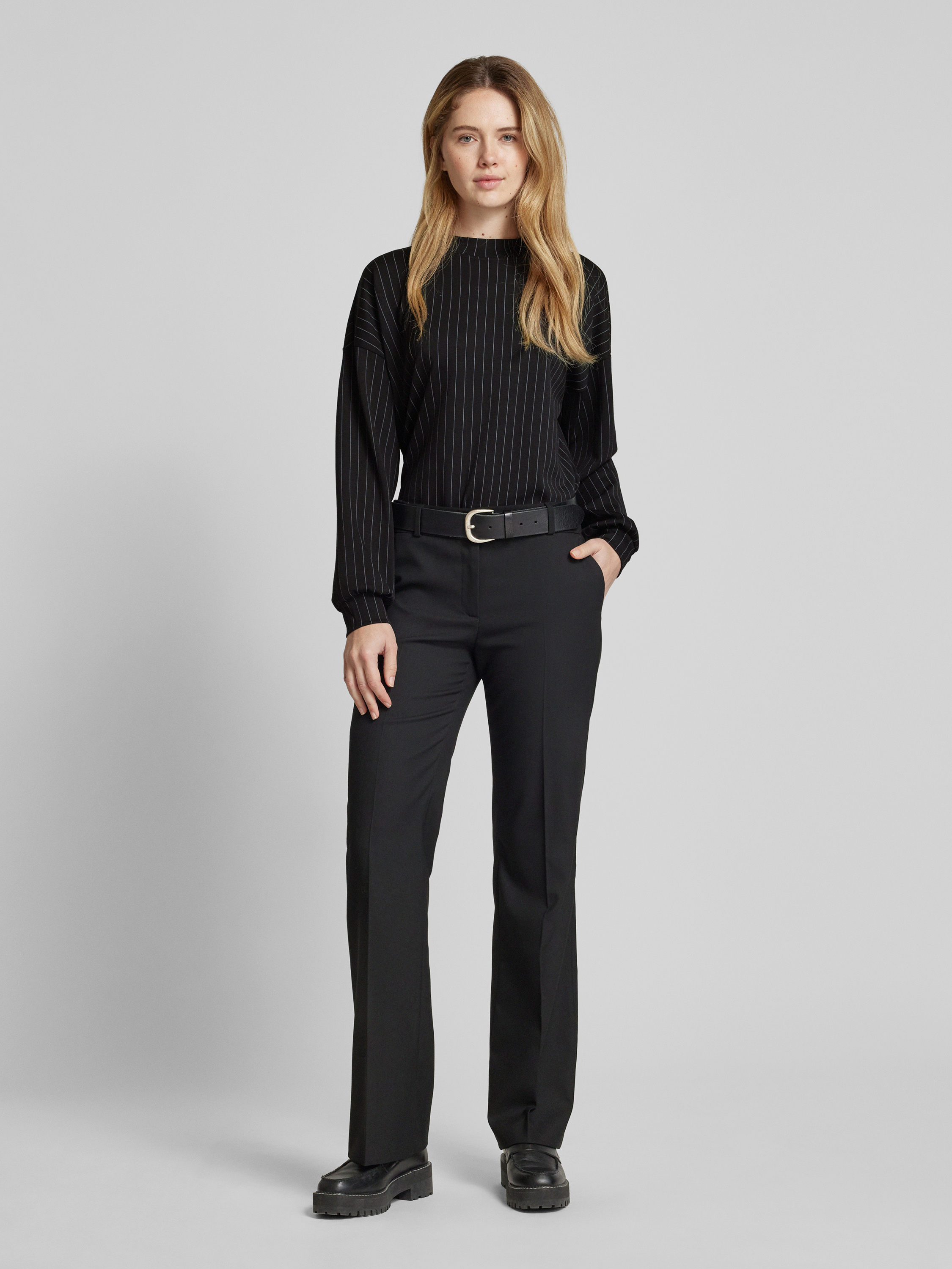Das Loose Fit Sweatshirt von Tom Tailor Denim aus einem weichen Modal-Mix zeigt sich in einem modernen Nadelstreifen-Design. Mit überschnittenen Schultern und lässigen Ballonärmeln bietet es einen entspannten Tragekomfort. Der Mock-Neck-Kragen rundet den Look stilvoll ab.