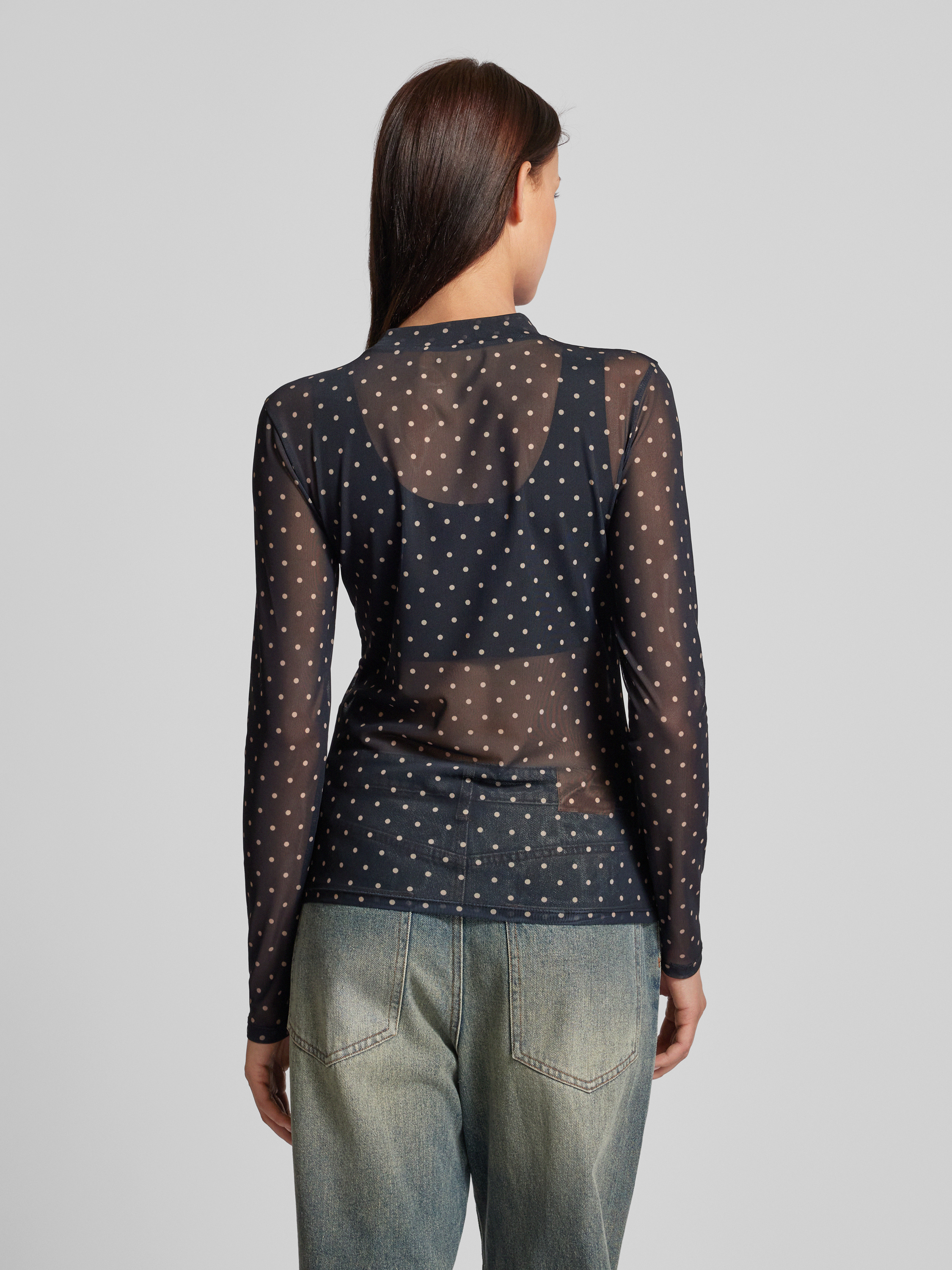 Das Mesh Longsleeve von Tom Tailor präsentiert sich in einem eleganten, gepunkteten Allover-Muster. Der taillierte Schnitt schmeichelt der Figur und betont gekonnt die Silhouette. Dank seines transparenten Materials eignet es sich hervorragend für kreative Layering-Looks und stilvolle Kombinationen.
