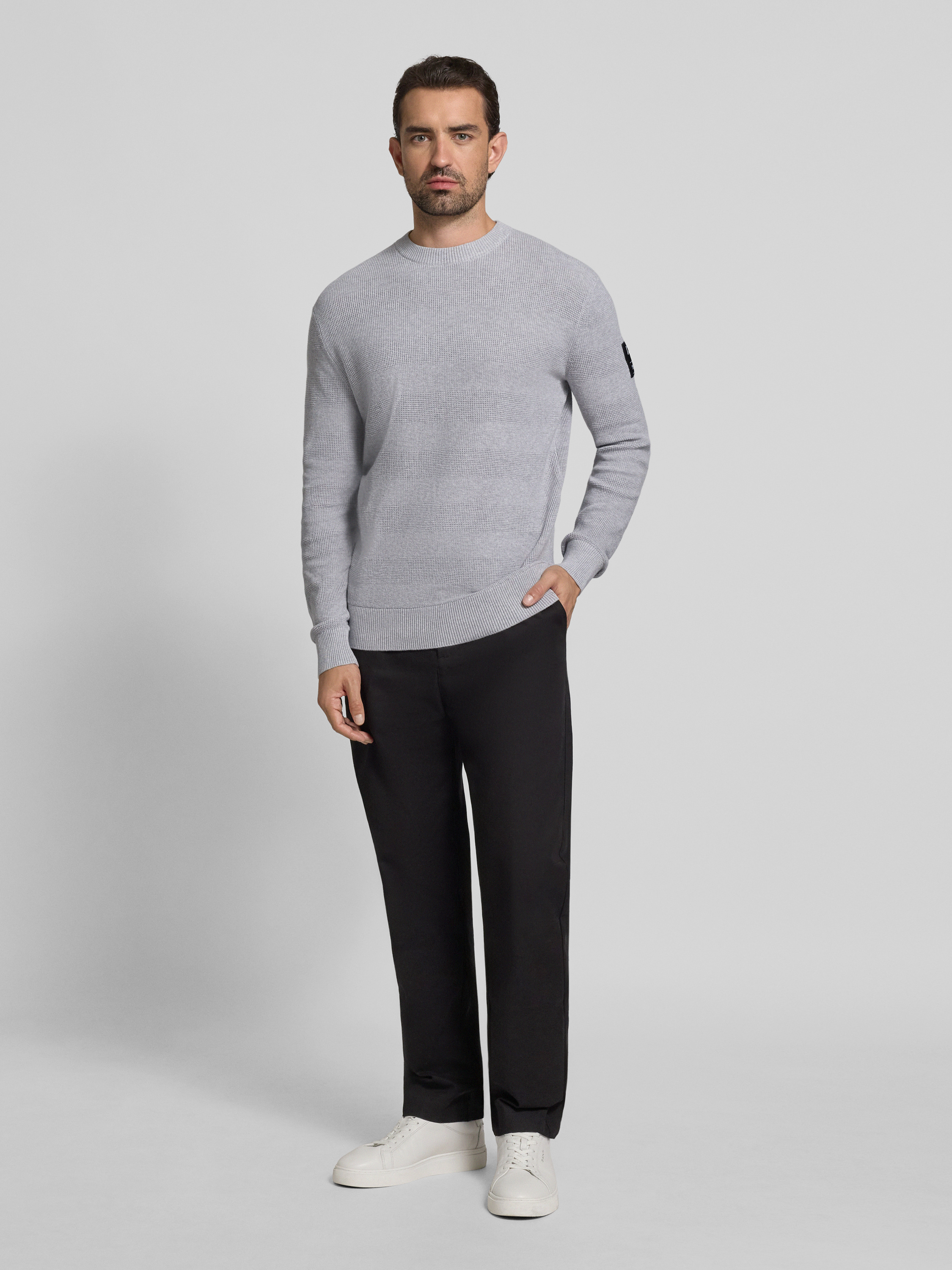 Der Herrenpullover von Tom Tailor Denim zeigt sich in schlichter Melange-Optik und bringt durch den klassischen Rundhalsausschnitt vielseitige Kombinationsmöglichkeiten mit sich. Die reguläre Passform sorgt für angenehmen Tragekomfort, während reine Baumwolle ein natürliches Hautgefühl vermittelt. Ein dezenter Label Patch rundet das Design ab.