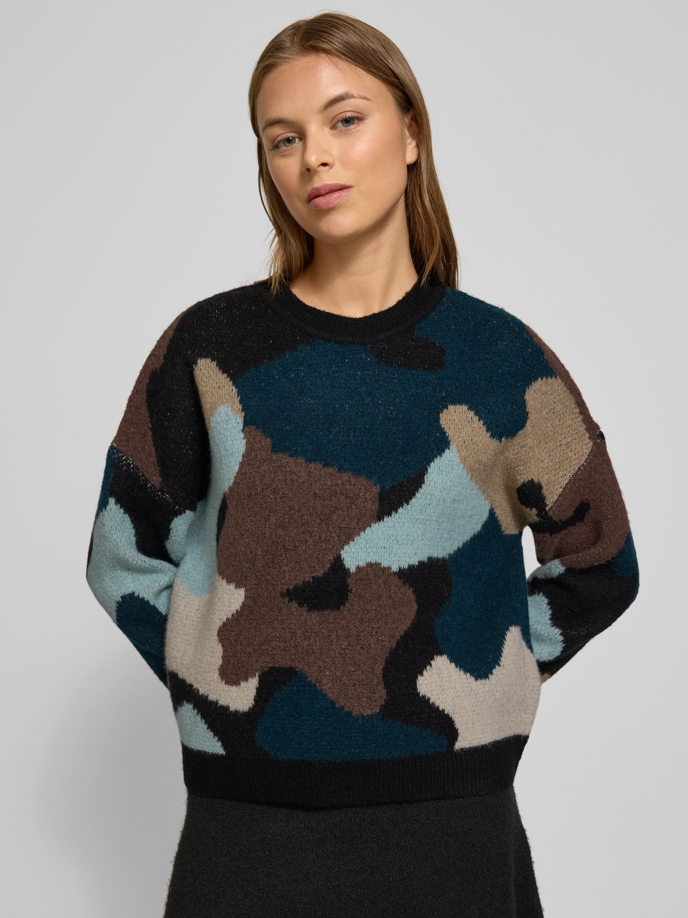 Der Damen Strickpullover von Tom Tailor Denim zeigt sich im Regular-Fit und hebt sich durch sein abstraktes Allover-Muster hervor. Die Jacquard-Verarbeitung sorgt für eine angenehme Haptik, während der Crew Neck und die langen Ärmel einen bequemen Sitz unterstützen. So lässt sich der Pullover vielseitig im Alltag kombinieren.