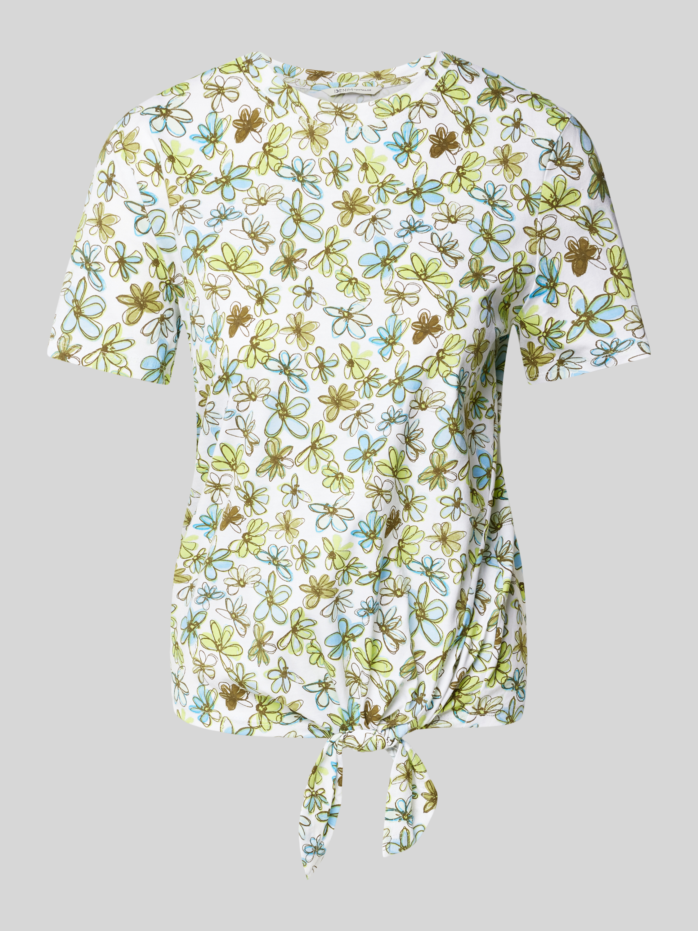Das T-Shirt von Tom Tailor Denim kombiniert ein modernes Allover-Muster mit einem lässigen Regular Fit. Der Rundhalsausschnitt und die kurzen Ärmel verleihen dem Design eine entspannte Note. Die reine Baumwolle sorgt für ein angenehmes Tragegefühl, während das Knoten-Detail am Saum stilvolle Akzente setzt.