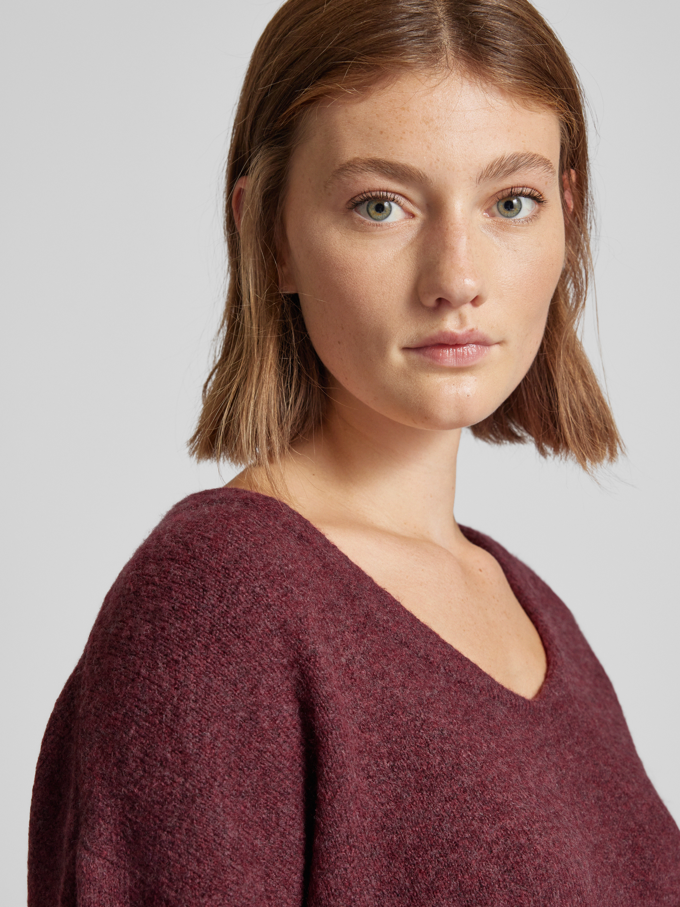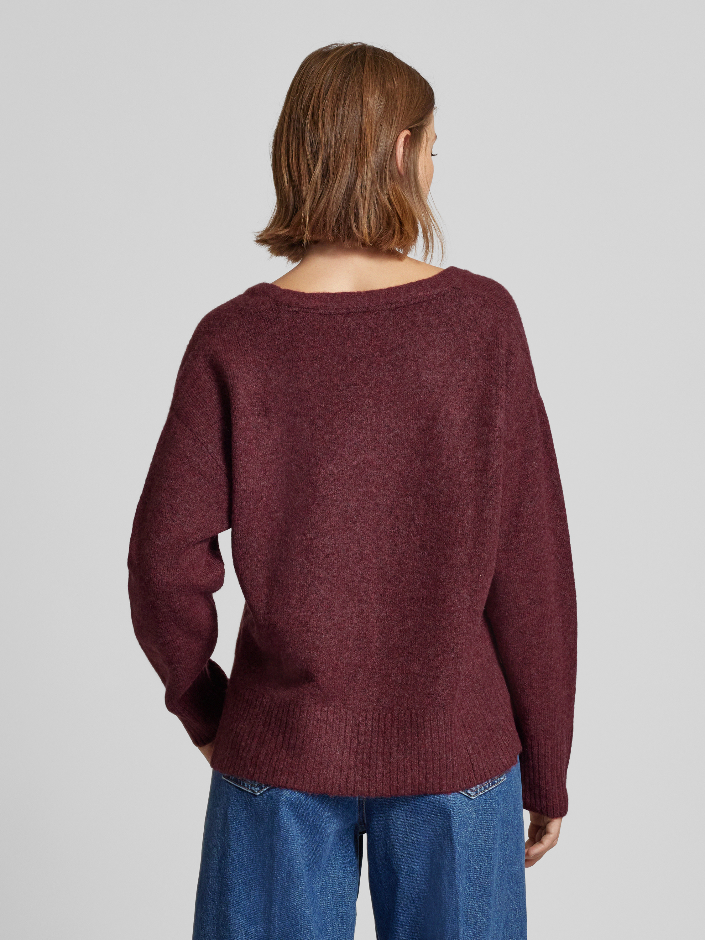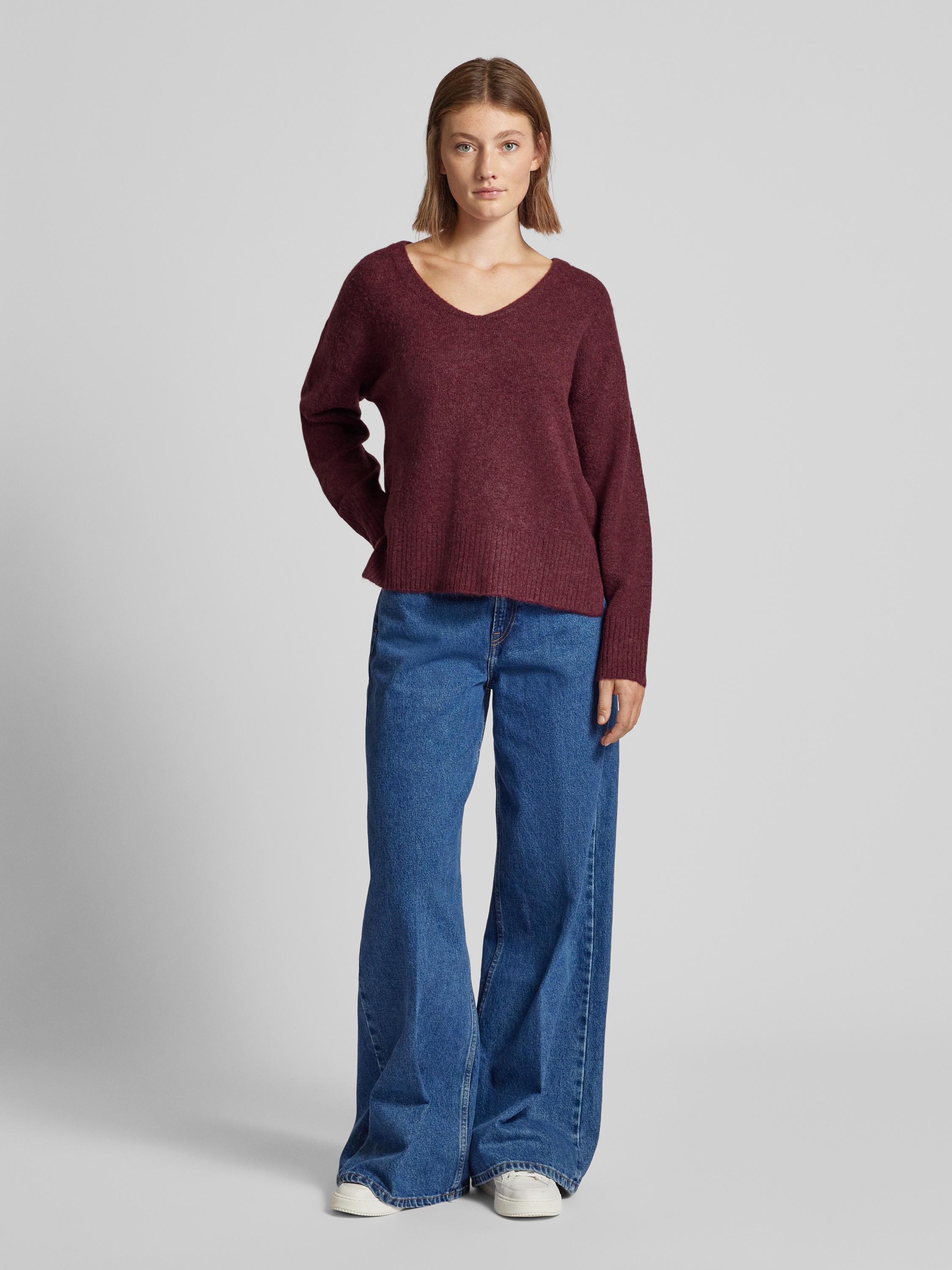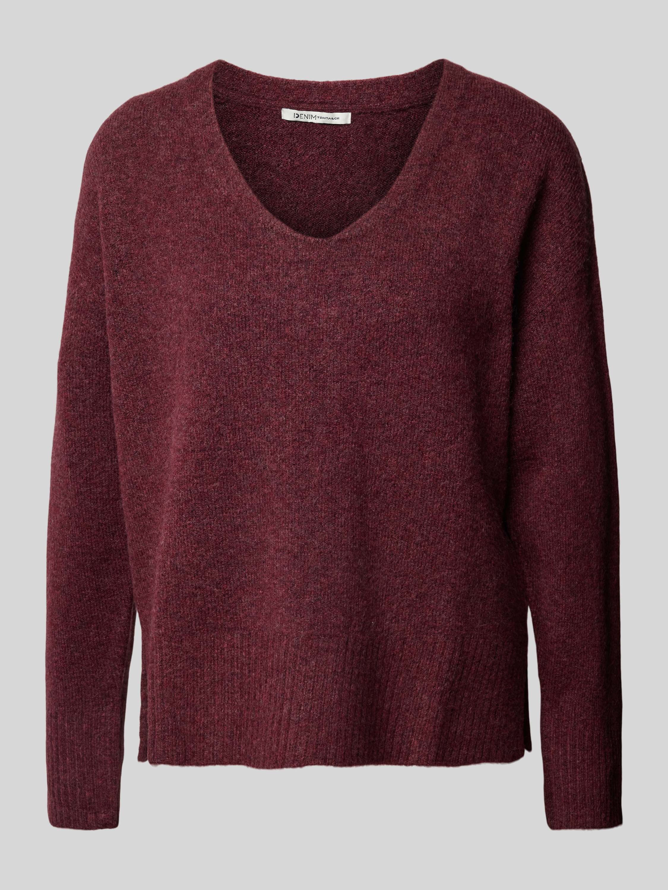 Tom Tailor DenimRelaxed Fit Strickpullover mit V-Ausschnitt in dunkelrot