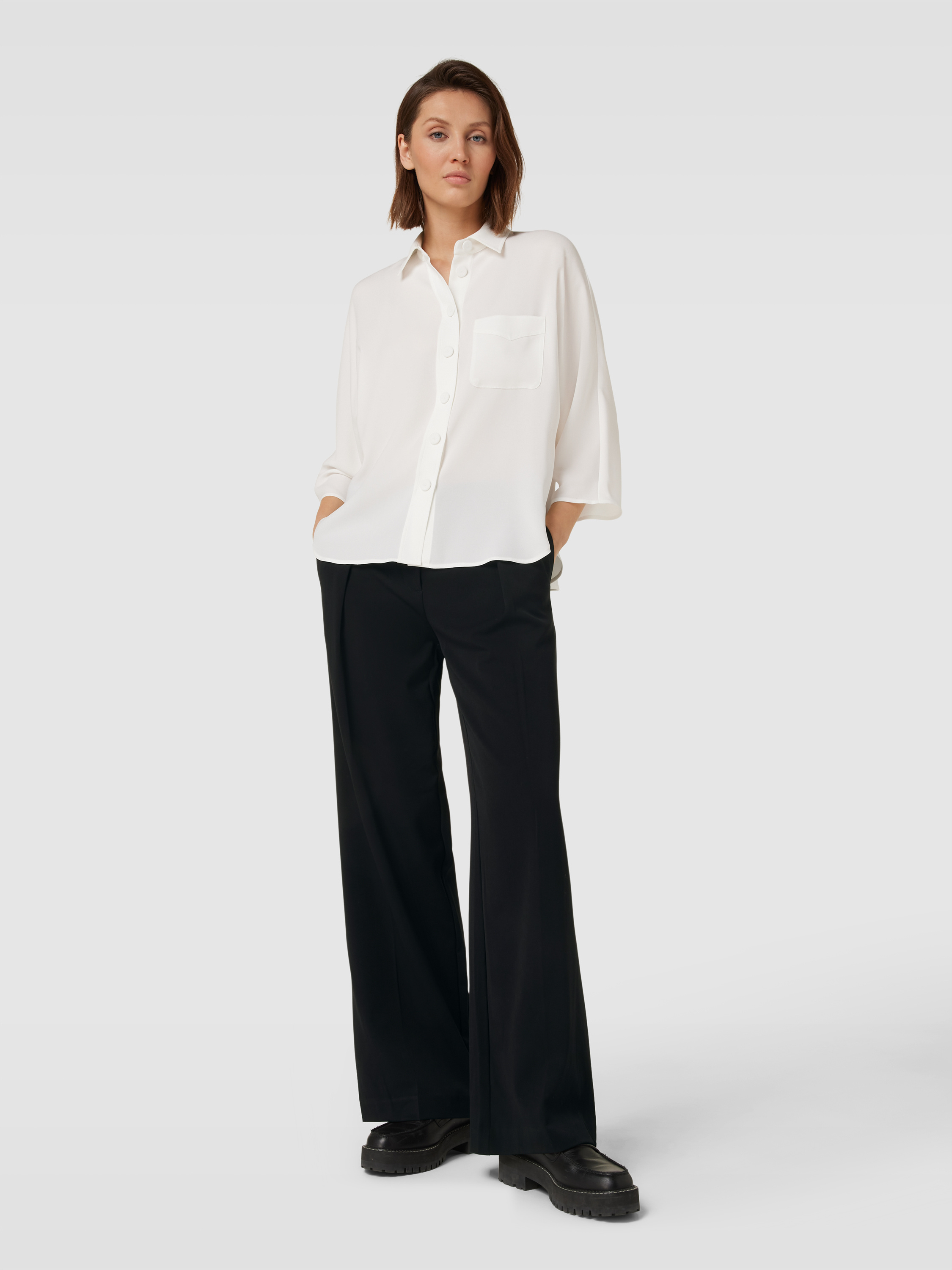 Die Flared Cut Stoffhose von TOM TAILOR kombiniert einen Material-Mix mit Viskose-Anteil und einem unifarbenen Design. Der elegante Schnitt mit Bundfalten sorgt für eine schmeichelhafte Silhouette, während Paspeltaschen am Gesäß eine praktische Note hinzufügen. Ideal für einen stilvollen und bequemen Auftritt.