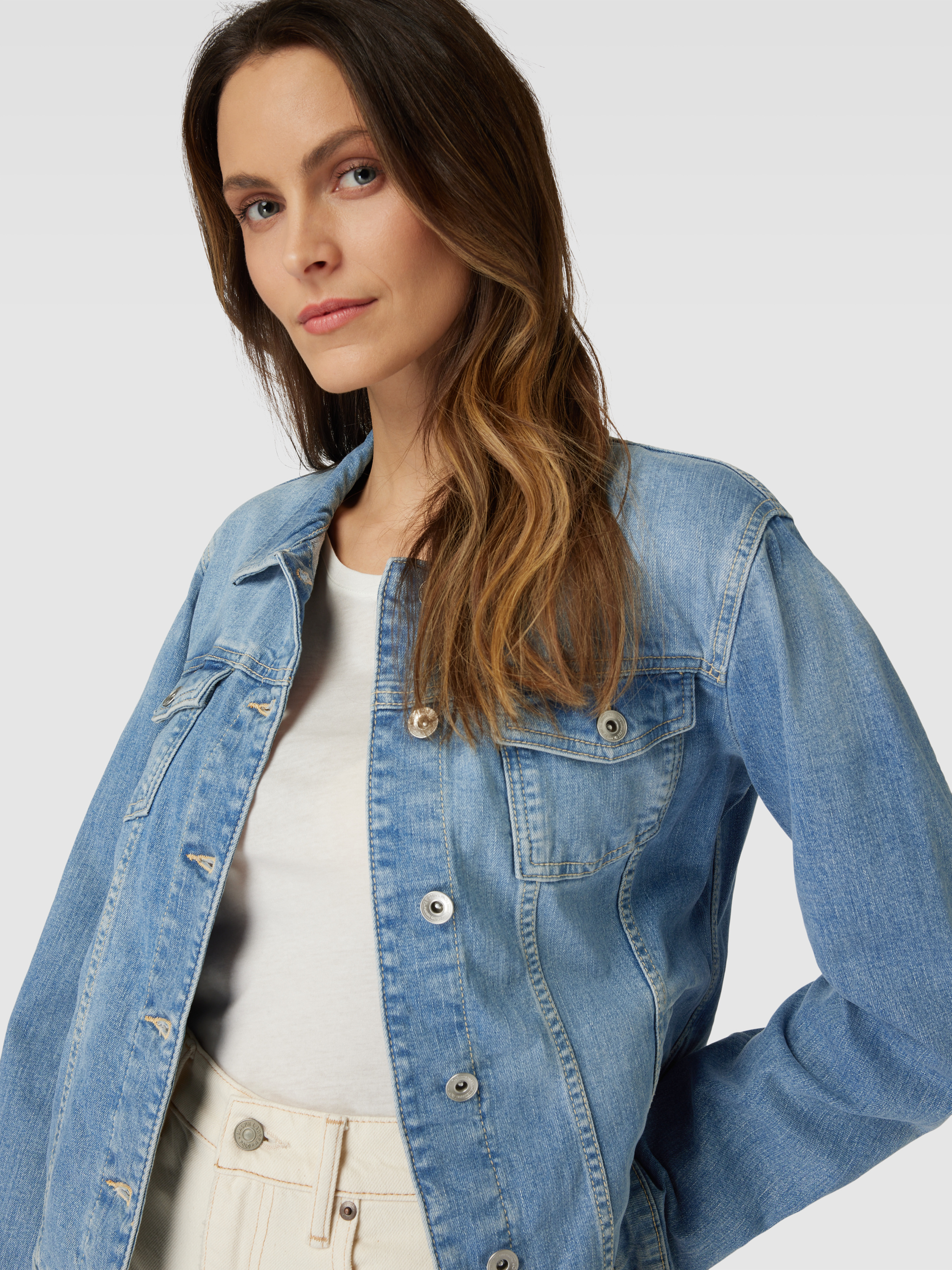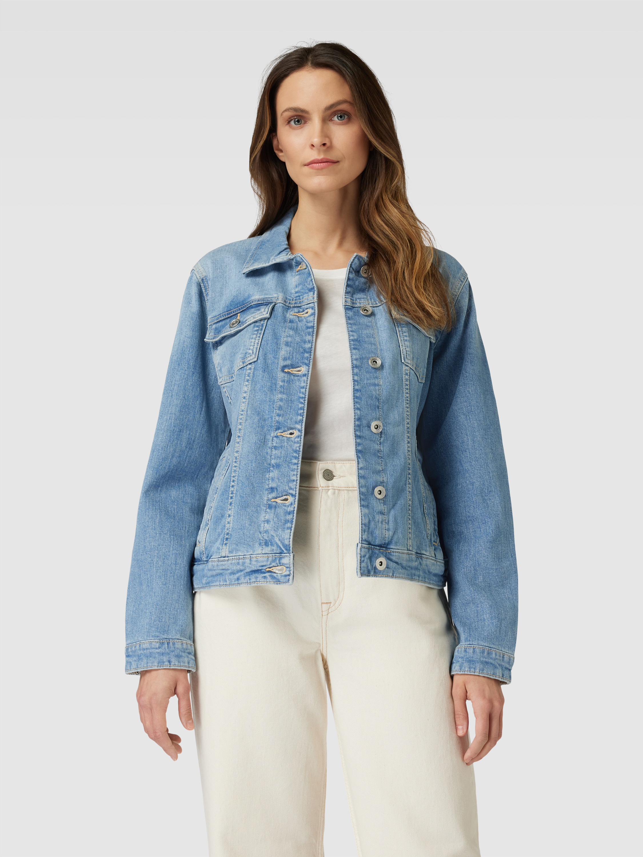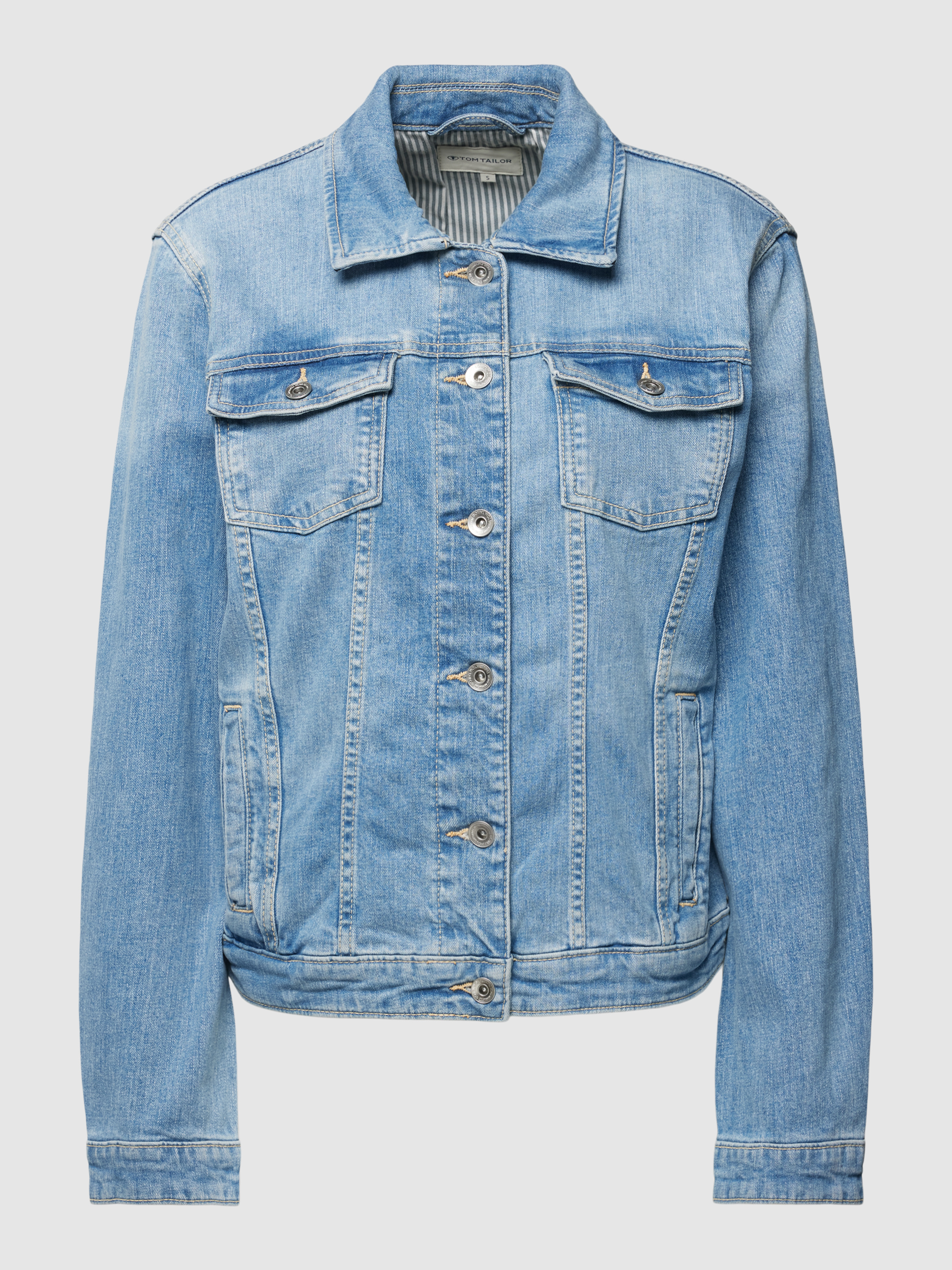 Die Jeansjacke von TOM TAILOR, gefertigt aus einem Baumwoll-Mix mit Stretch-Anteil, bietet dank ihres geraden Schnitts und des Umlegekragens vielseitige Kombinationsmöglichkeiten. Praktische Brust- und Eingrifftaschen sorgen für zusätzlichen Stauraum, während die durchgehende Knopfleiste ein klassisches Design ergänzt. Ideal für legere Alltagslooks.