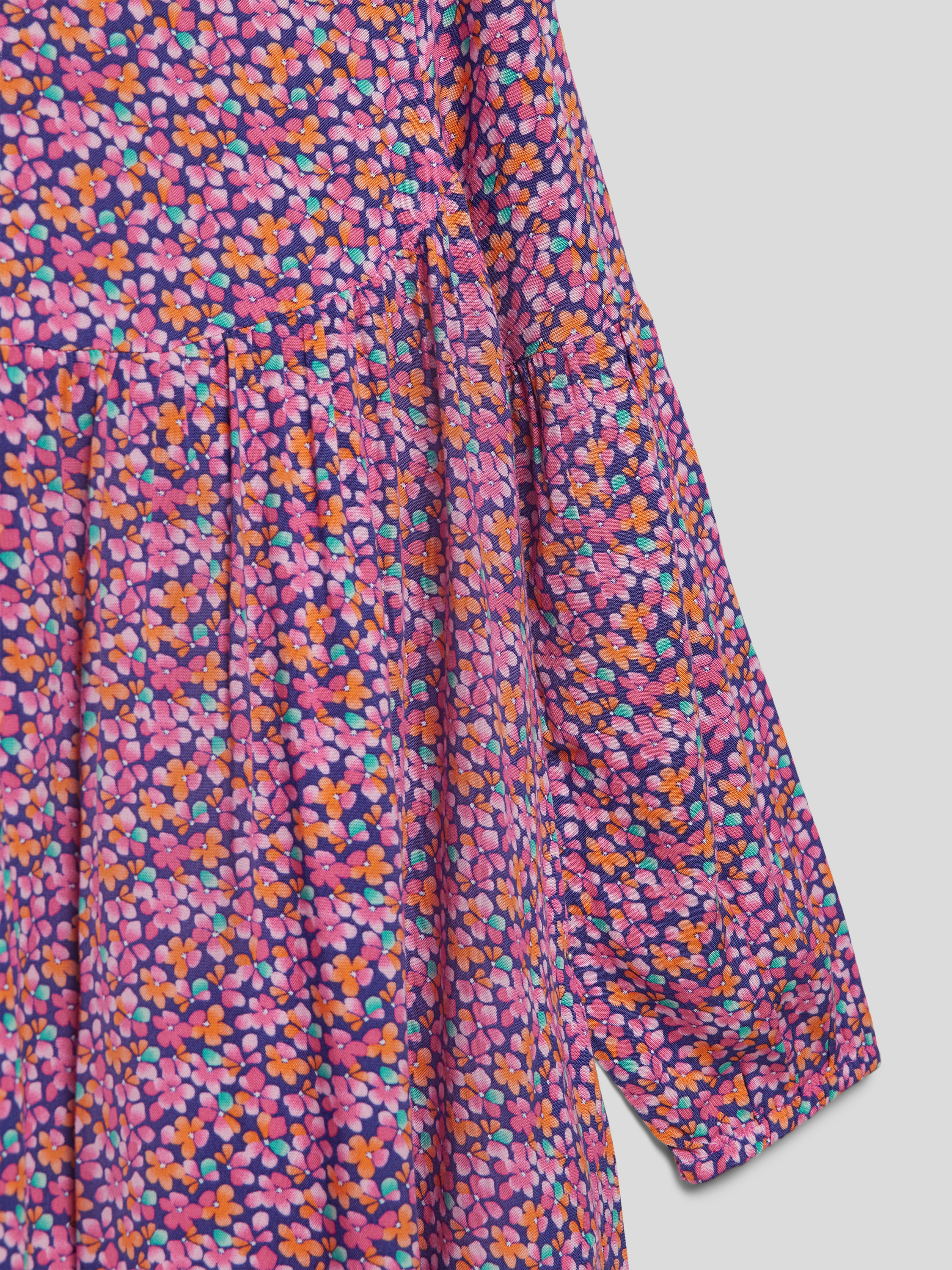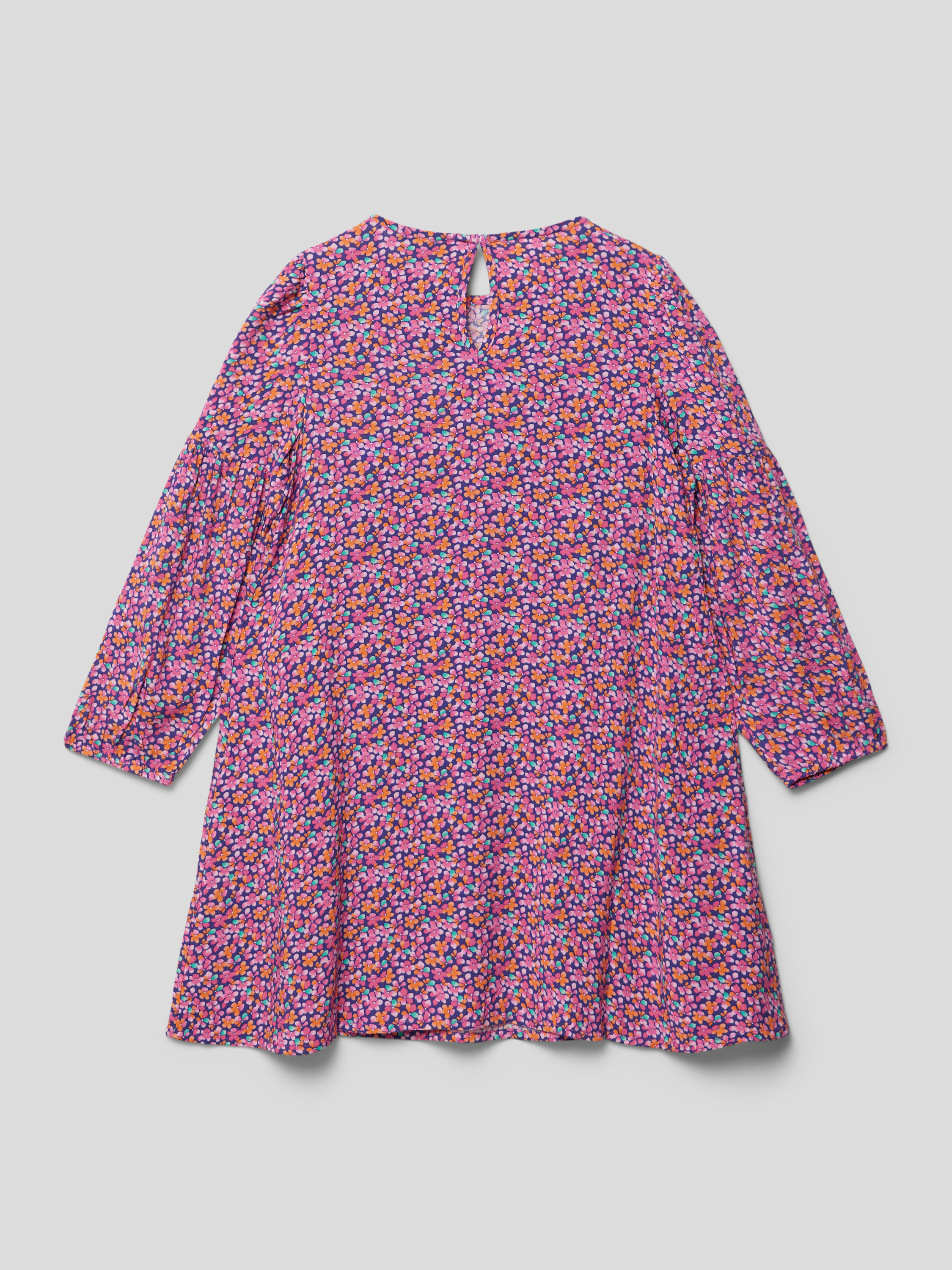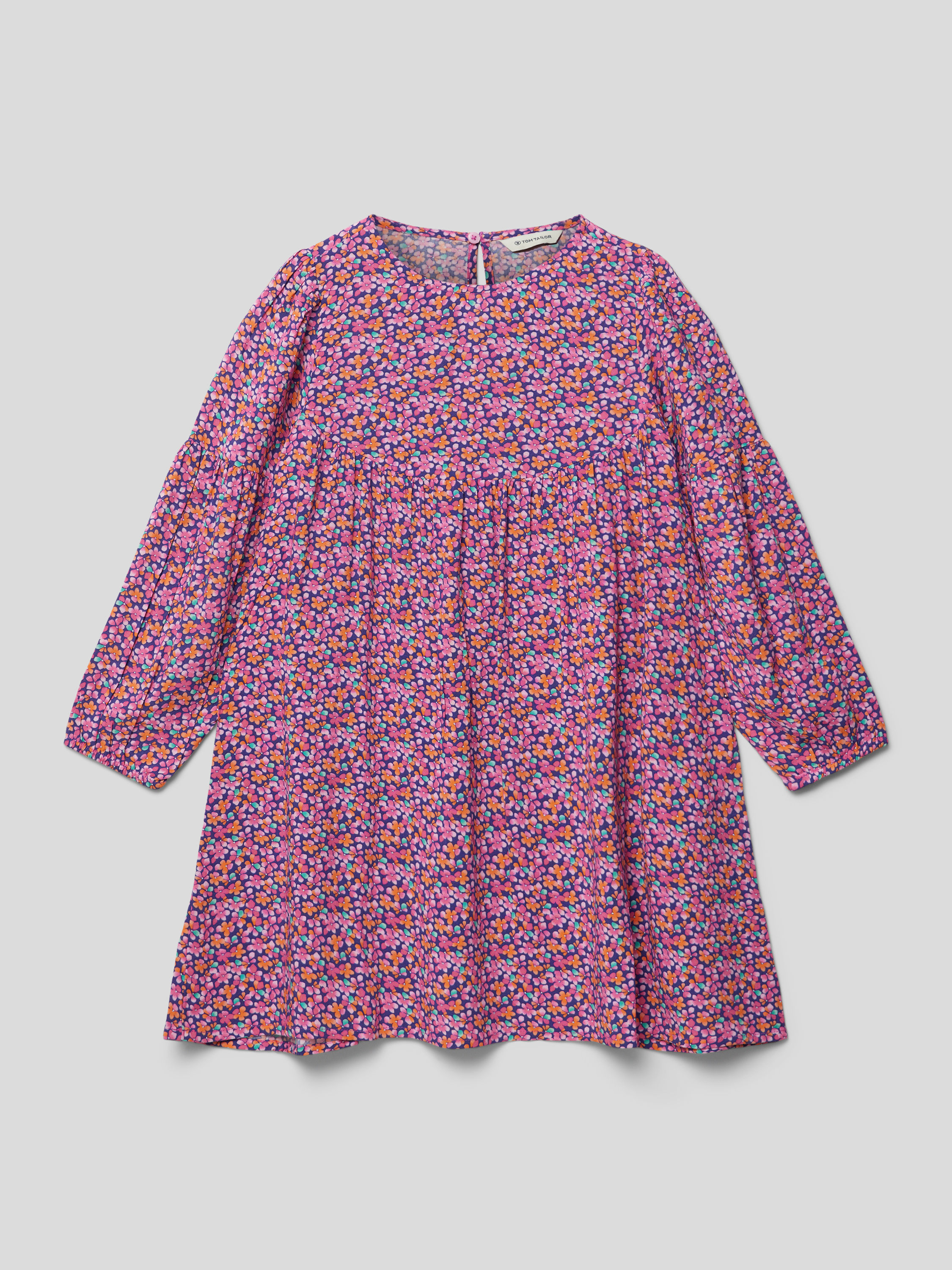 Das TOM TAILOR Kinderkleid aus reiner Viskose schmiegt sich sanft an die Haut und bietet durch seinen ausgestellten Schnitt Bewegungsfreiheit. Das florale Muster verleiht dem Kleid eine fröhliche Note, während der Rundhalsausschnitt klassisch und zeitlos wirkt. Der rückseitige Schlüsselloch-Ausschnitt rundet das Design harmonisch ab.