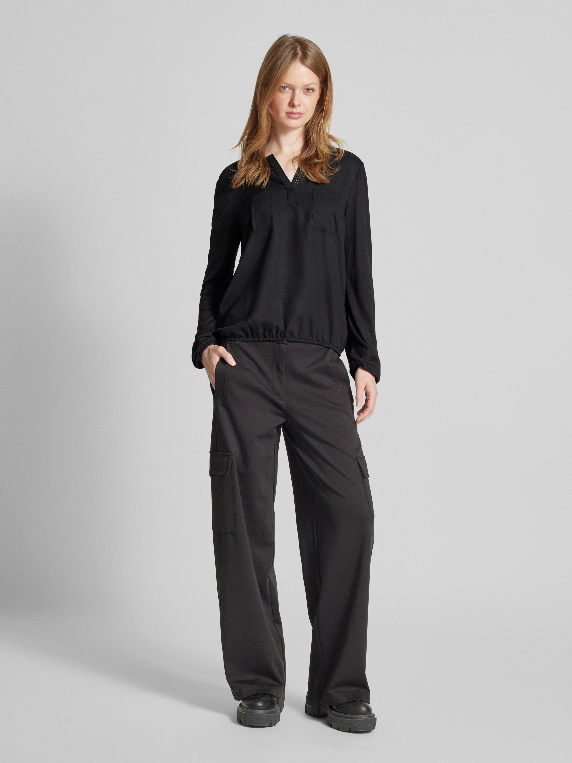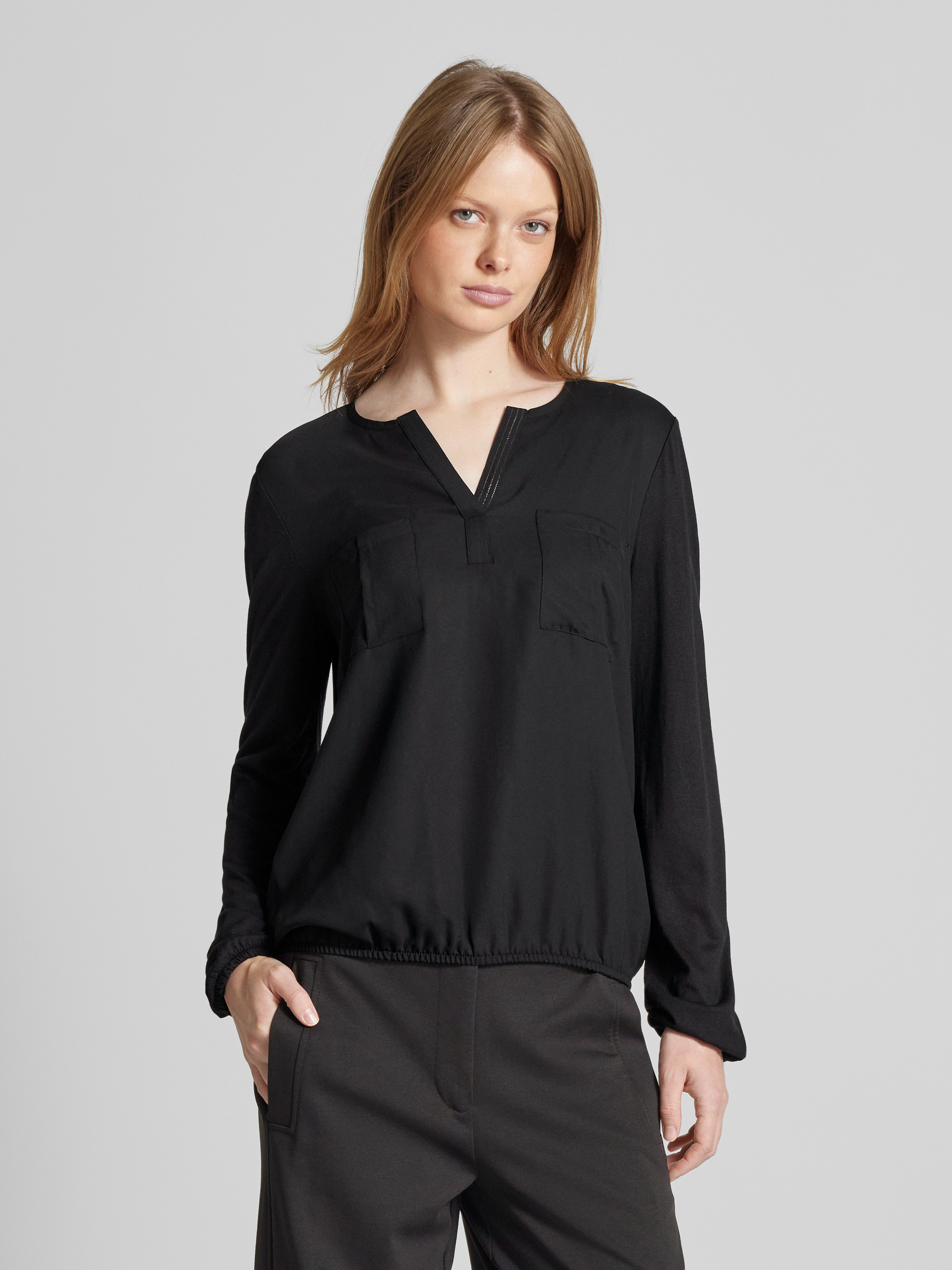 Tom TailorLoose Fit Blusenshirt mit aufgesetzten Brusttaschen und Tunika-Kragen in black