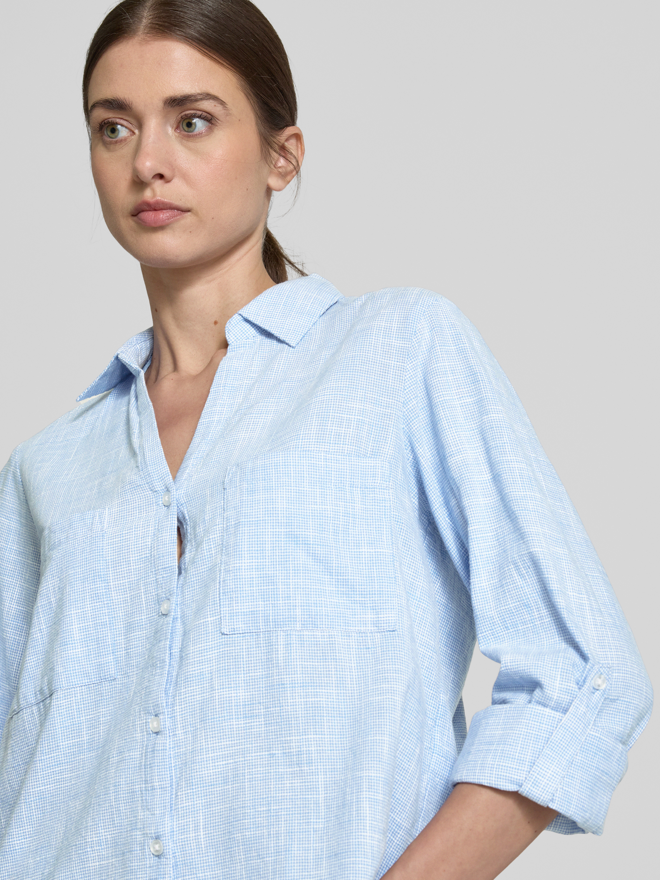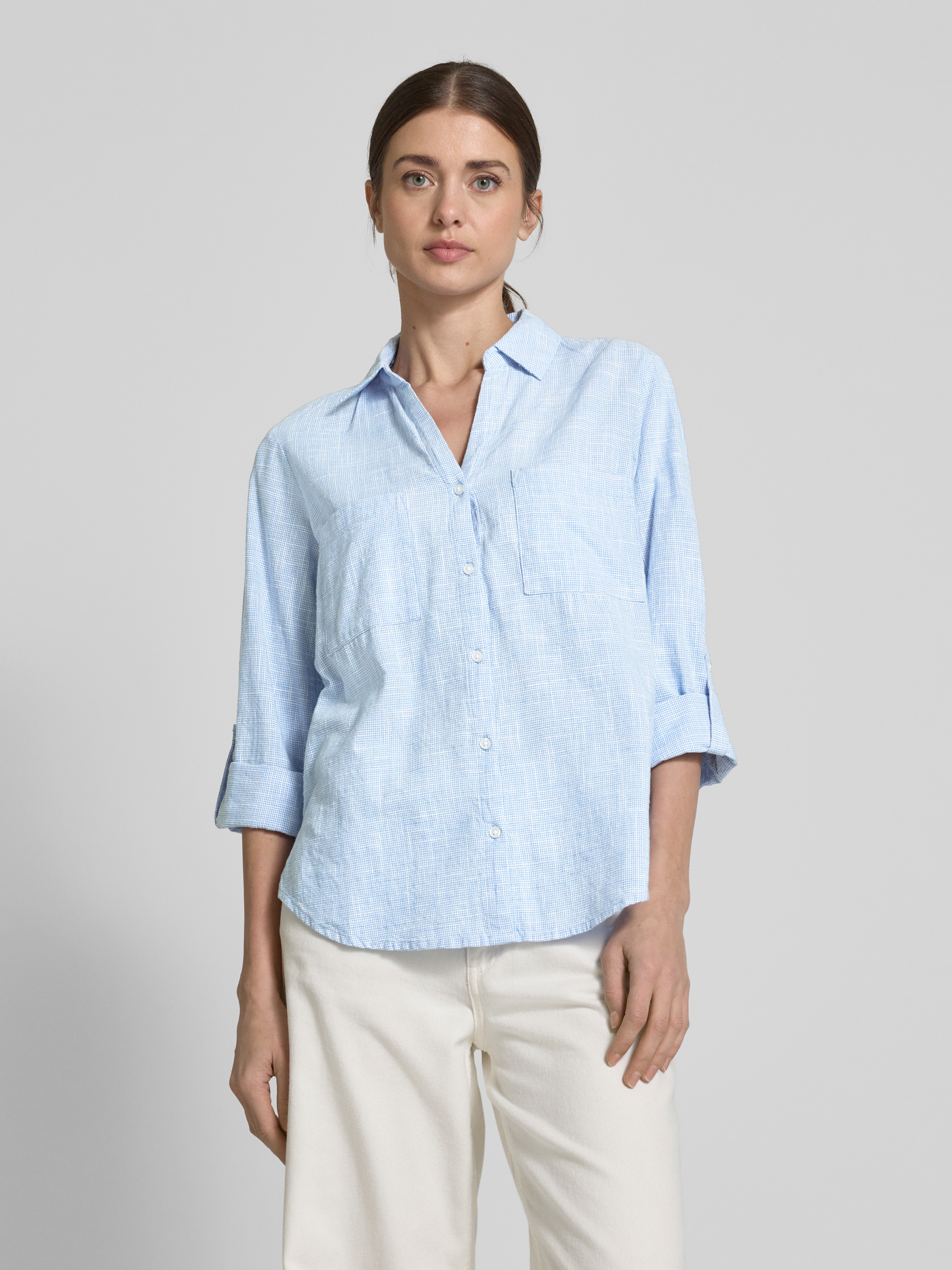 Tom TailorLoose Fit Hemdbluse aus reiner Baumwolle mit Knopfleiste in hellblau