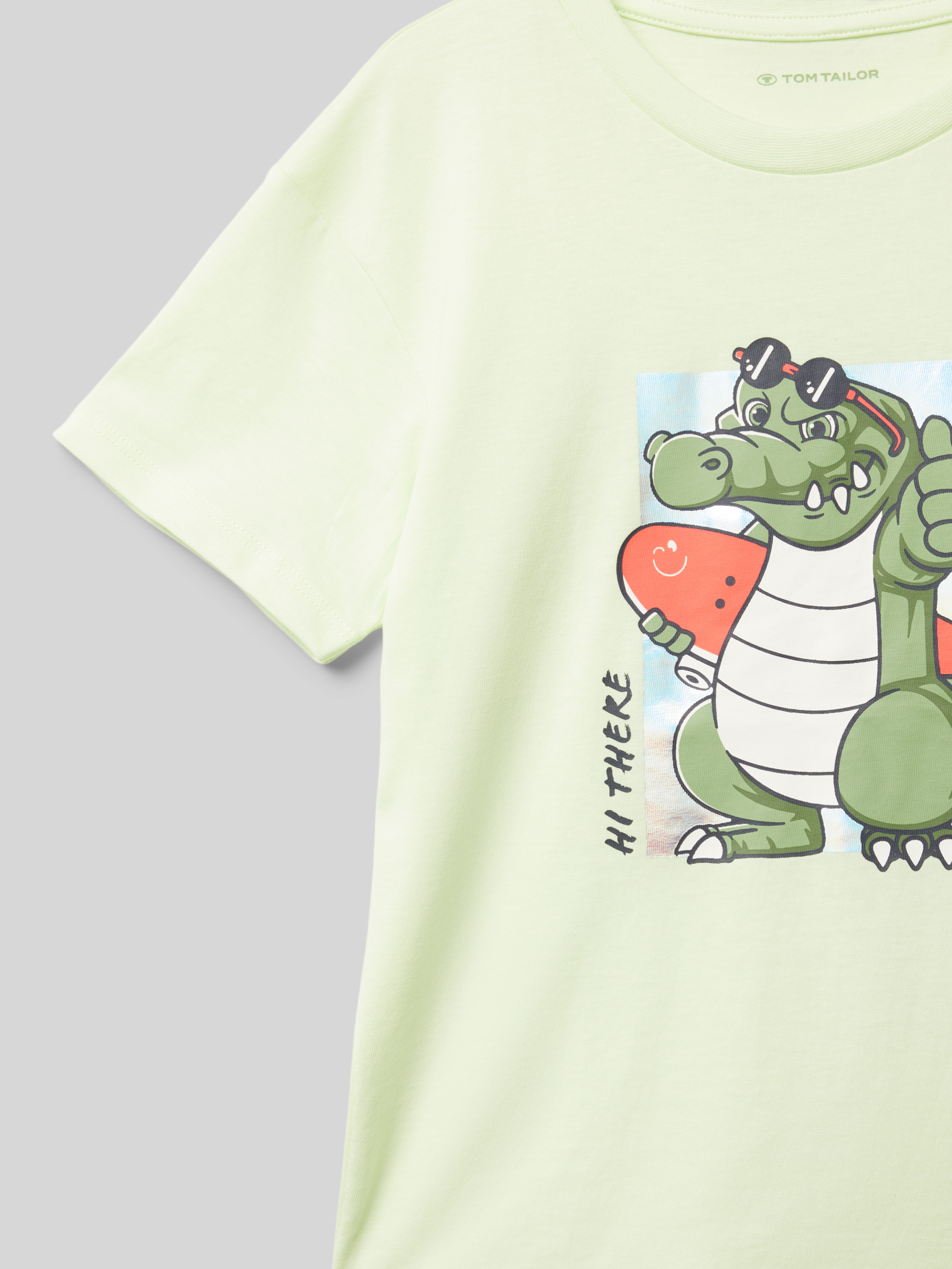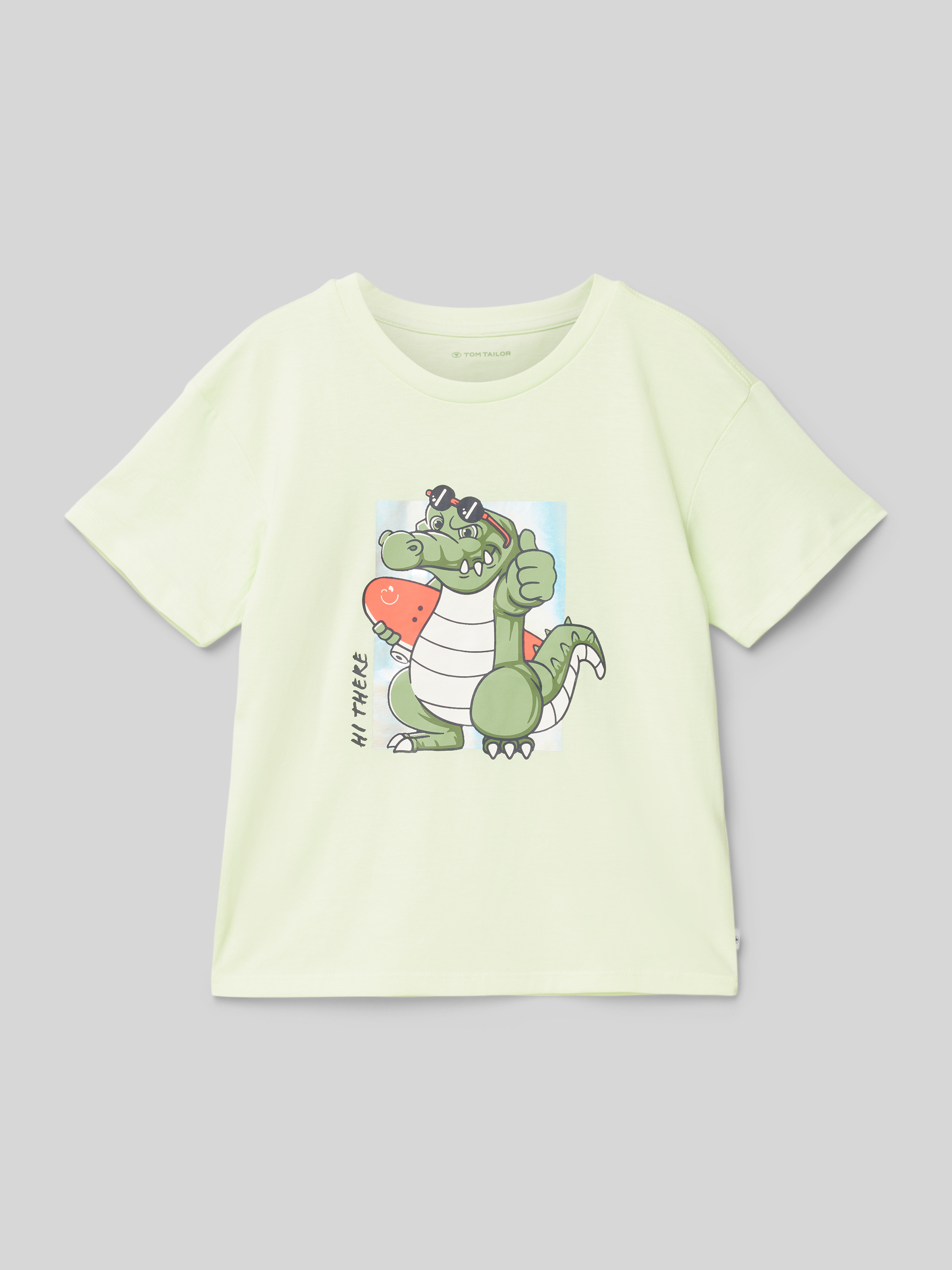 Tom TailorOversized T-Shirt aus reiner Baumwolle mit Motiv-Print in hellgruen