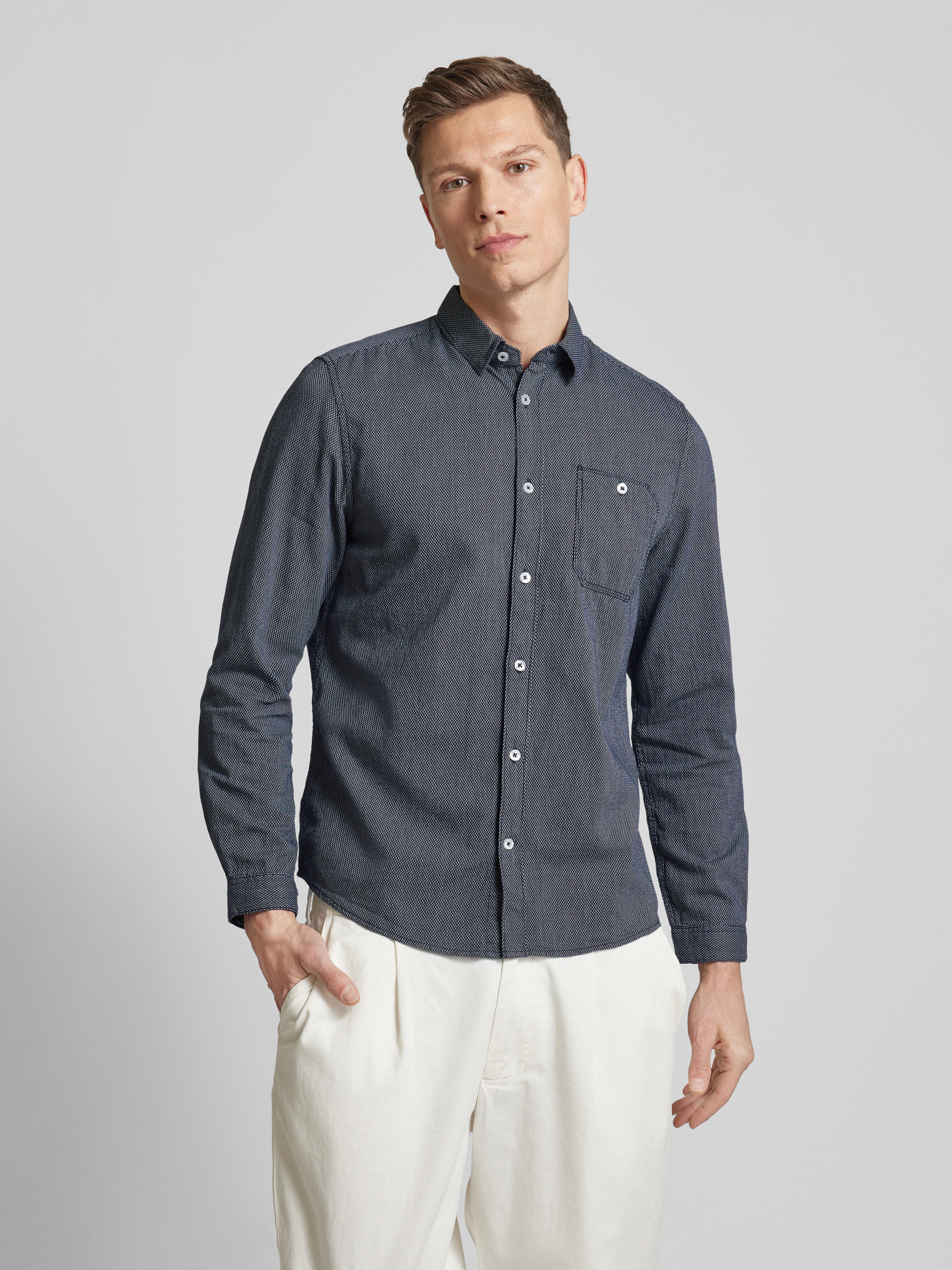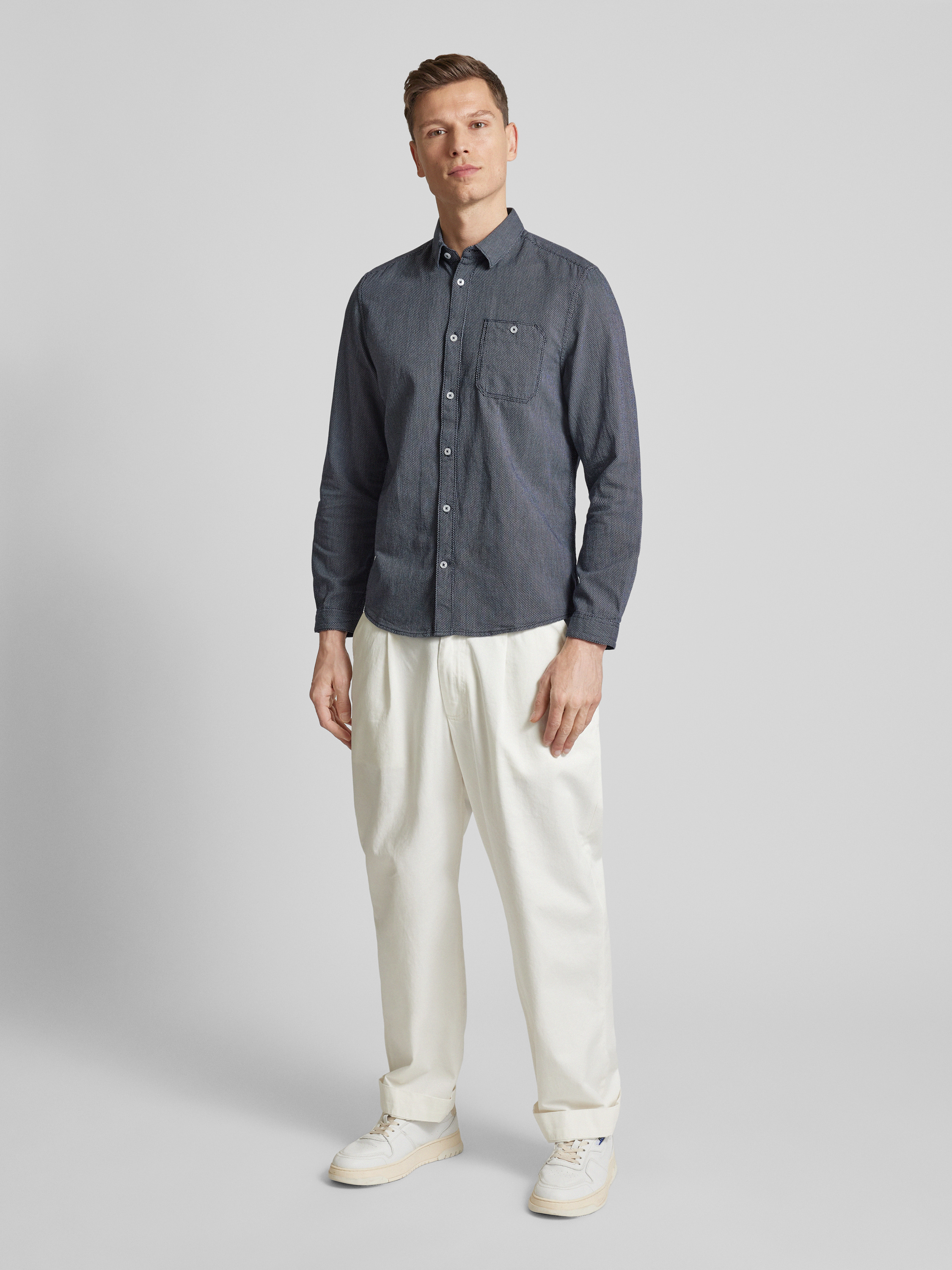 Tom TailorRegular Fit Freizeithemd mit Strukturmuster in dunkelblau